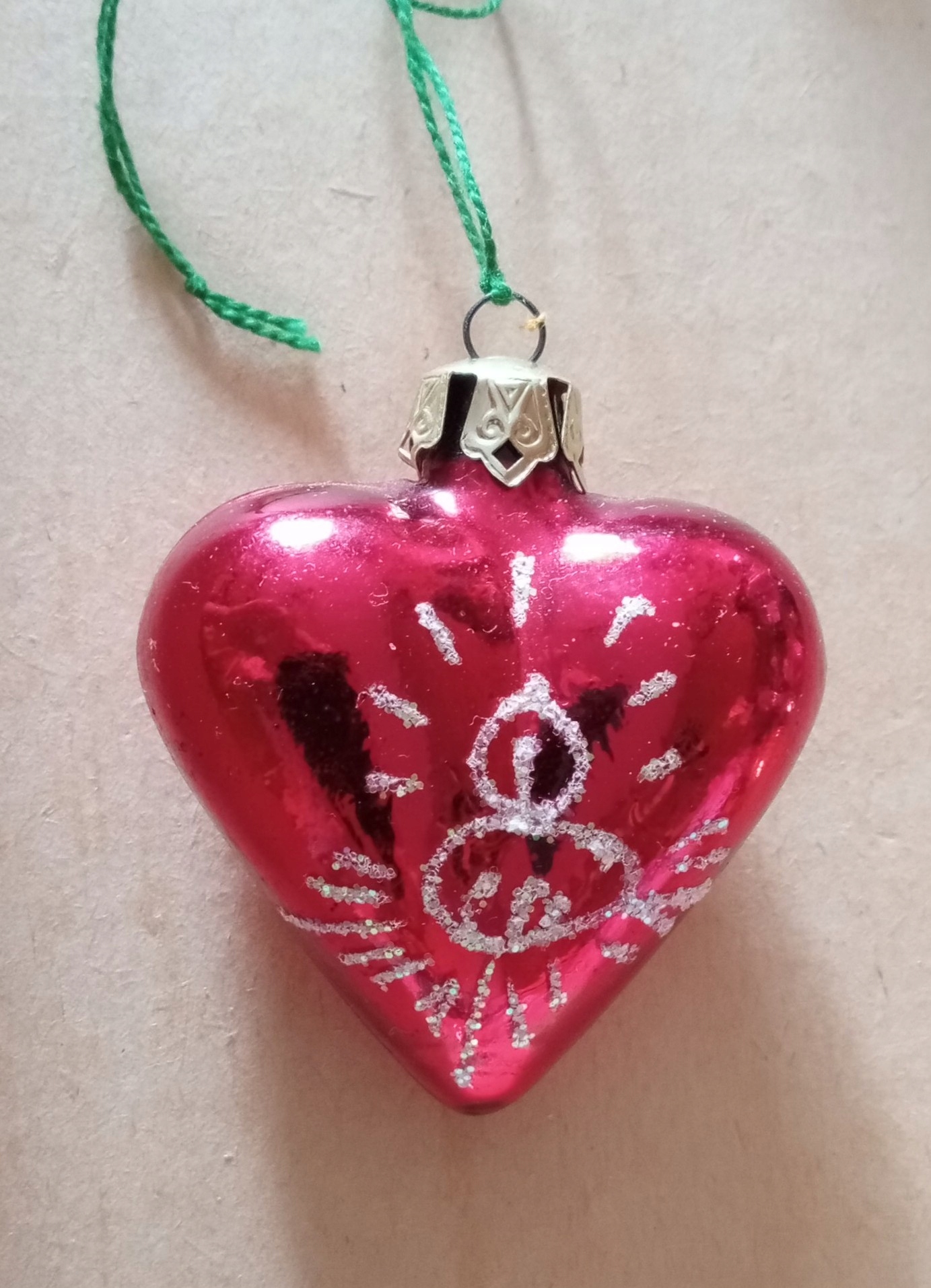 STARA ozdobna BOMBKA na choinkę SERCE PRL-u czerwone