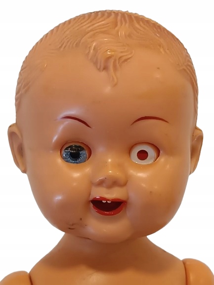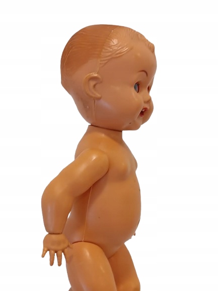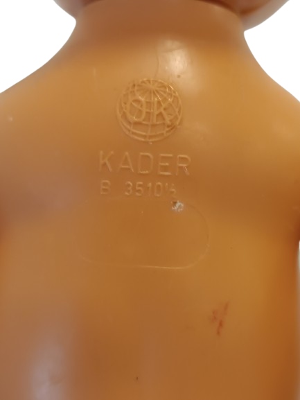 Старая подписанная кукла ОК Кейдер. Пластик, с подвижными конечностями, сохранился в исходном состоянии. Видимые признаки течения времени - истирание, незначительная грязь, без глаз. Ссылка производителя на спине. Кукла идеально подходит для коллекции или в качестве декоративного элемента в стиле ретро.