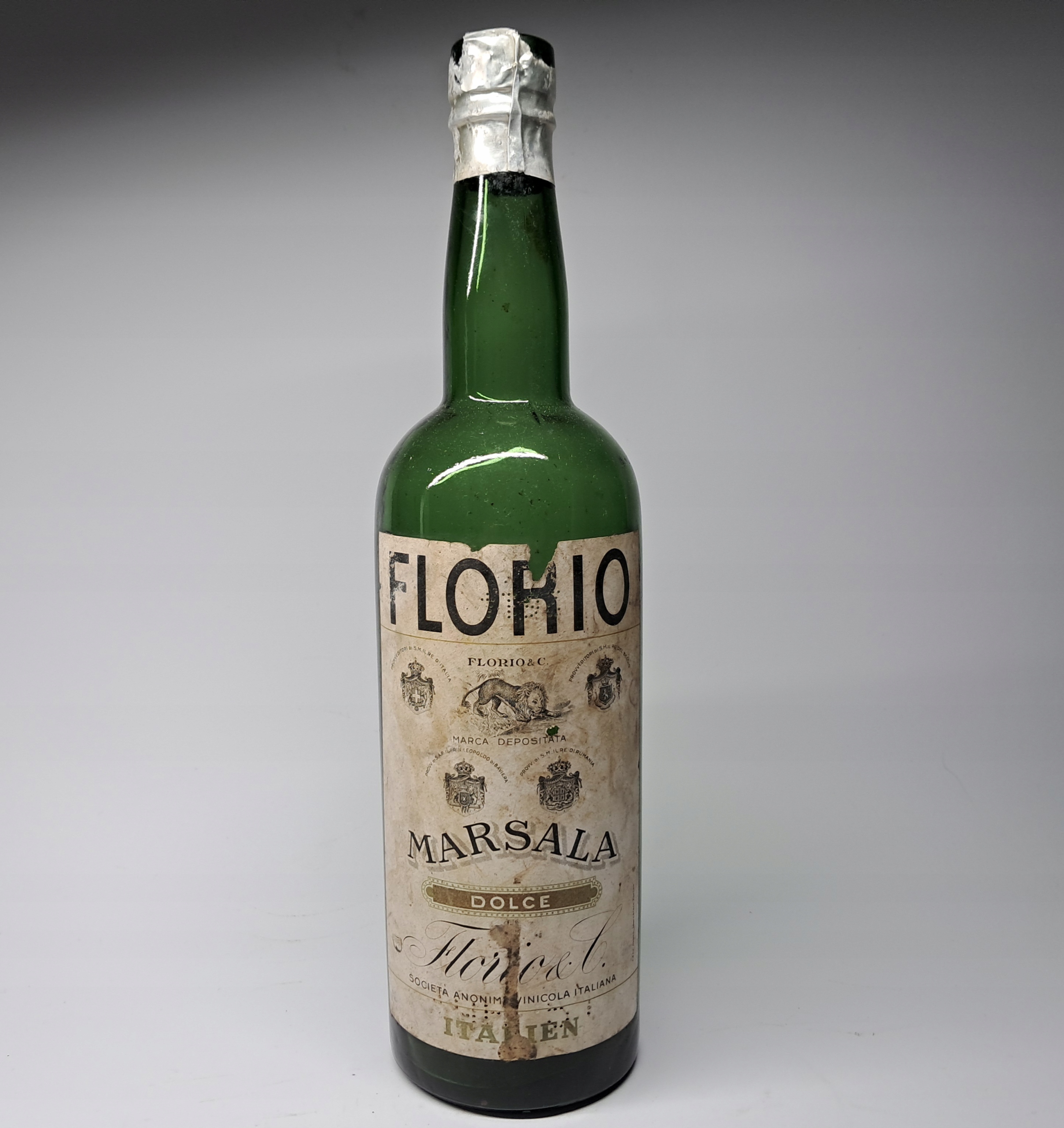 СТАРАЯ БУТЫЛКА БОЛЬШОГО ДОВОЕННОГО ИТАЛЬЯНСКОГО ВИНА ФЛОРИО МАРСАЛА