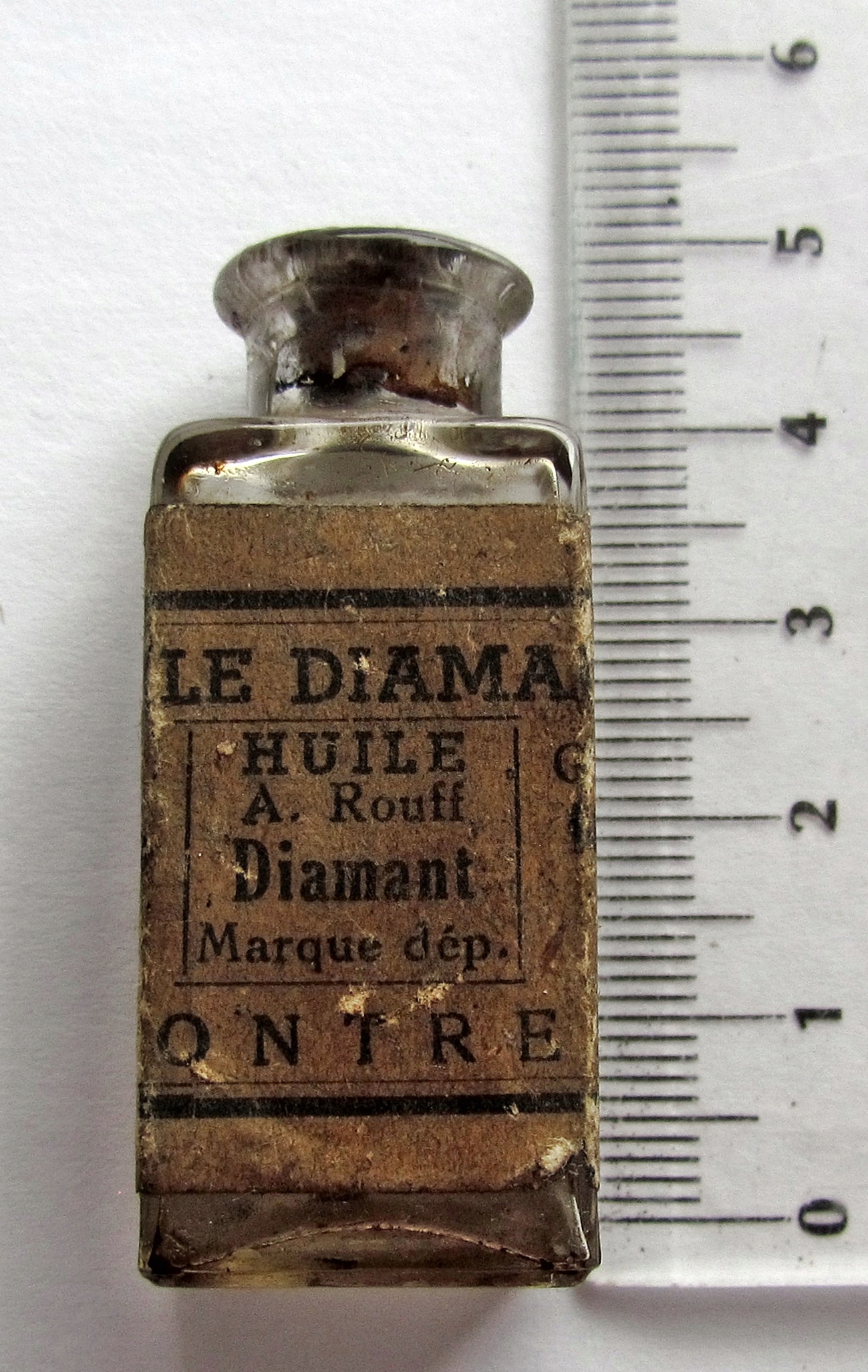 Я предлагаю старую бутылку после того, как А. Руфф с бриллиантовым маслом с наклейкой и видимой пробкой. Бутылка в хорошем состоянии, видимая на прикрепленных фотографиях. Очень редкий тип бутылки для утилиты в прямоугольнике. Чистая метка на бутылке. Высота бутылки 47 мм, ширина 15 х 20 мм. Бутылка без механического повреждения, такая как трещины, скольжение и т. Д. В прекрасном поведении. Я рекомендую.