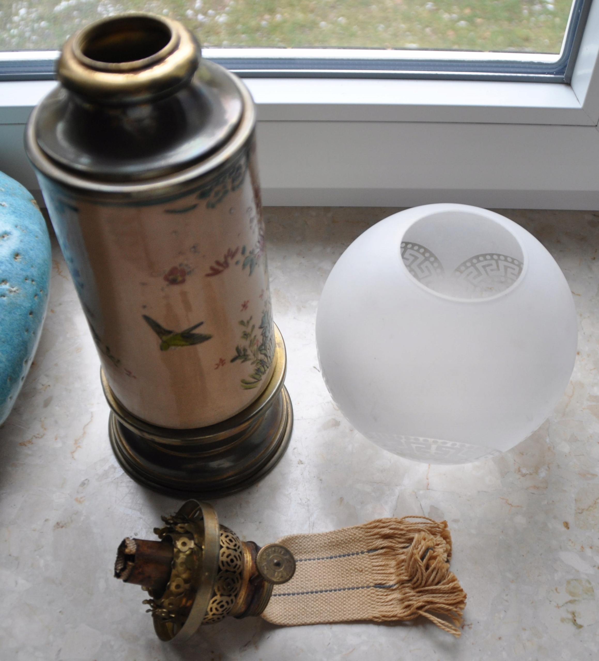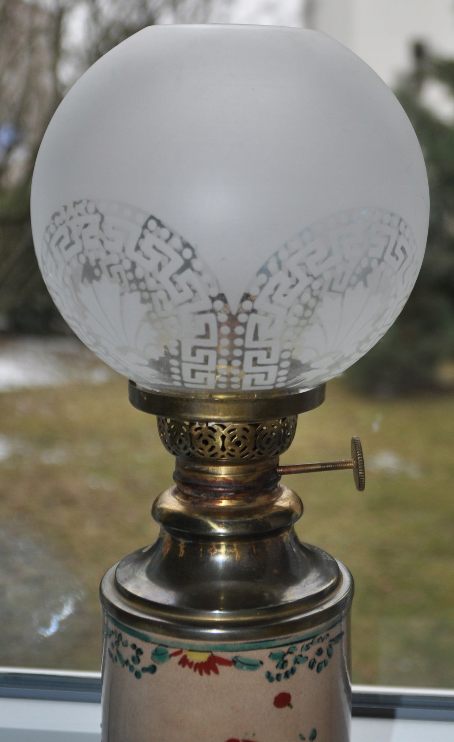 Старая окрашенная масляная лампа MB Brevetes Высота 43 см.