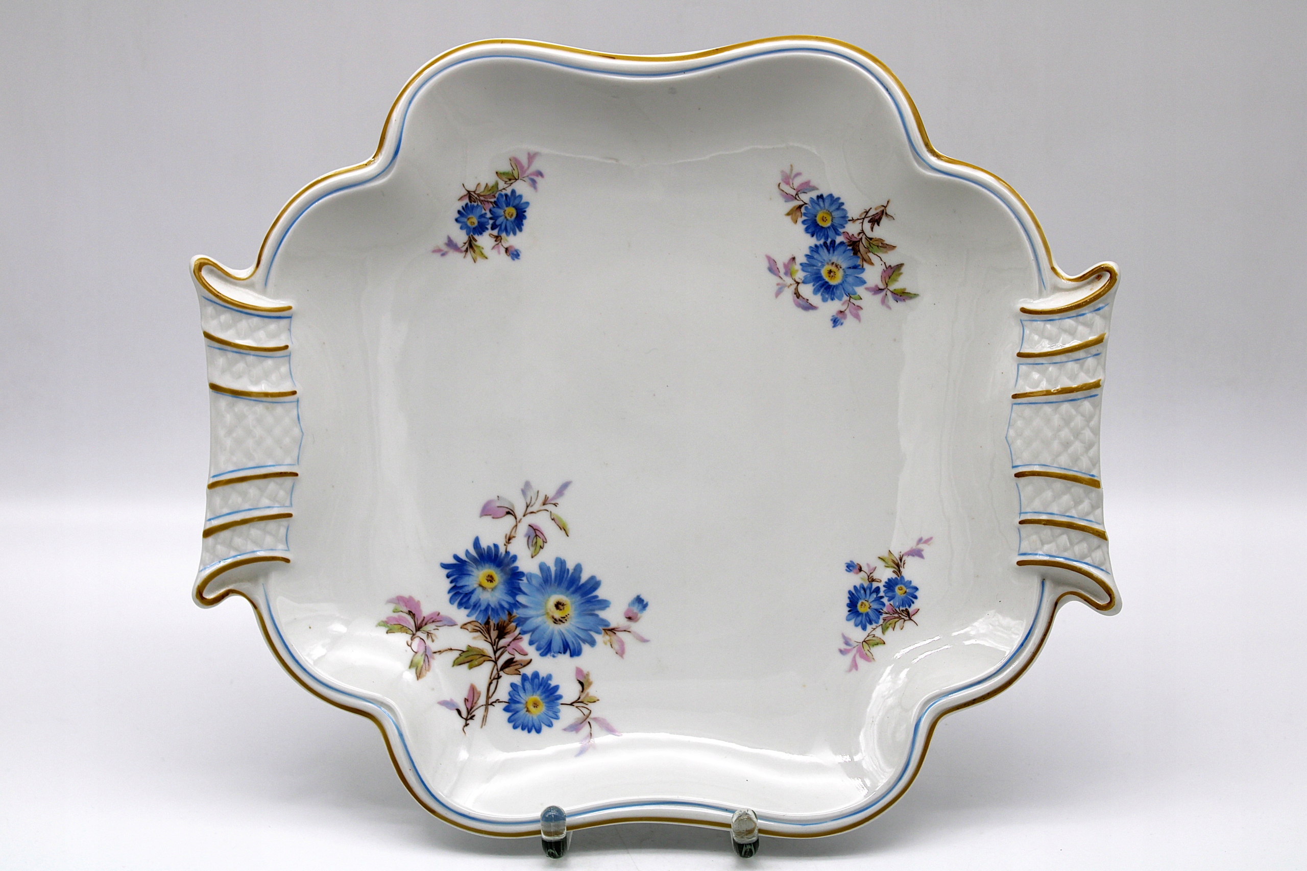 РЕКОМЕНДУЮ СТАРУЮ АНТИКВАРНУЮ ПОДНОСКУ ДЛЯ ТОРТА ИЗ ВЕЙМАРСКОГО ФАРФОРОВОГО ЗАВОДА В БЛАНКЕНХАЙНЕ, ТЮРИНГИЯ, ВСЕ ОТДЕЛЕНЫ ВРУЧНУЮ ИЗДЕЛИЕ, ИЗГОТОВЛЕНО МЕЖДУ 1924 - 1945 ГОДАМИ. СОСТОЯНИЕ ТАКОЕ КАК НА СКАНИРОВАНИИ, ОЧЕНЬ ХОРОШЕЕ, МИНИМАЛЬНЫЙ ИЗНОС