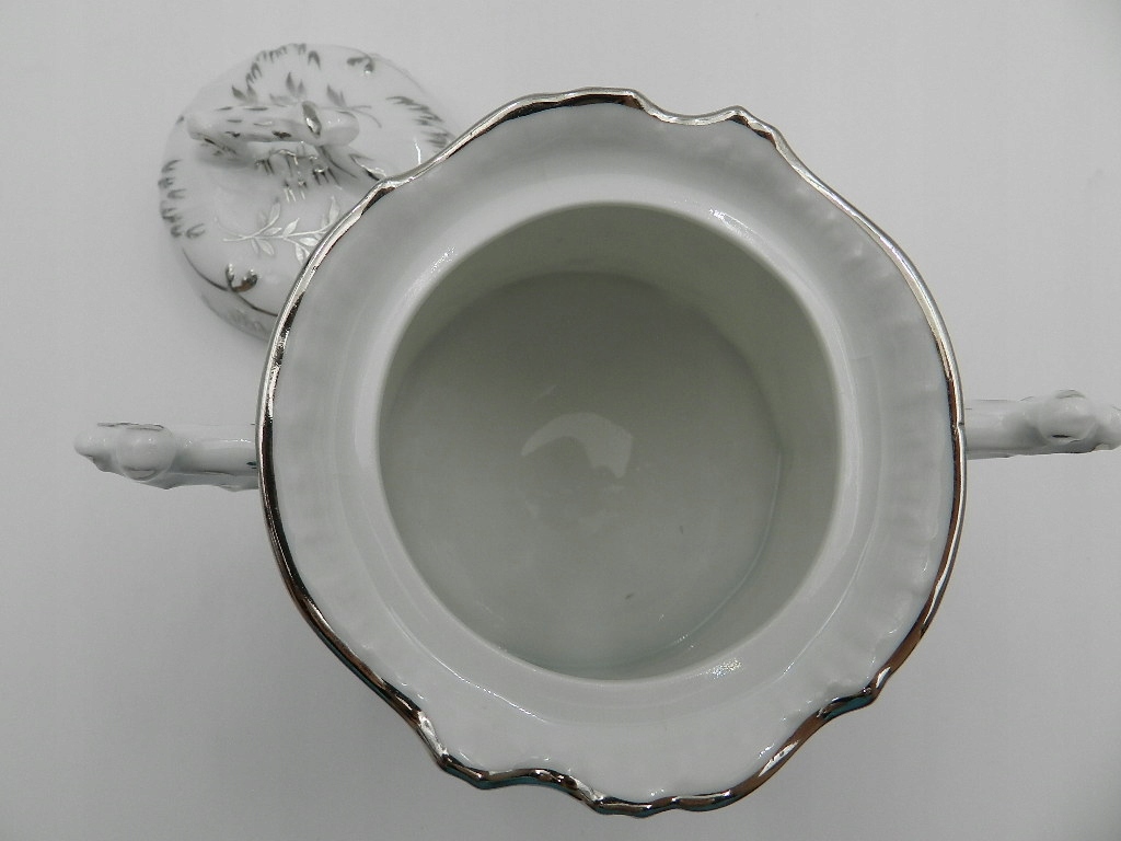 Белоснежный фарфор высочайшего качества, изящной формы, эксклюзивной формы и красивого посеребренного декора.