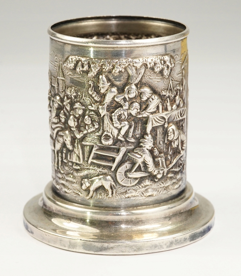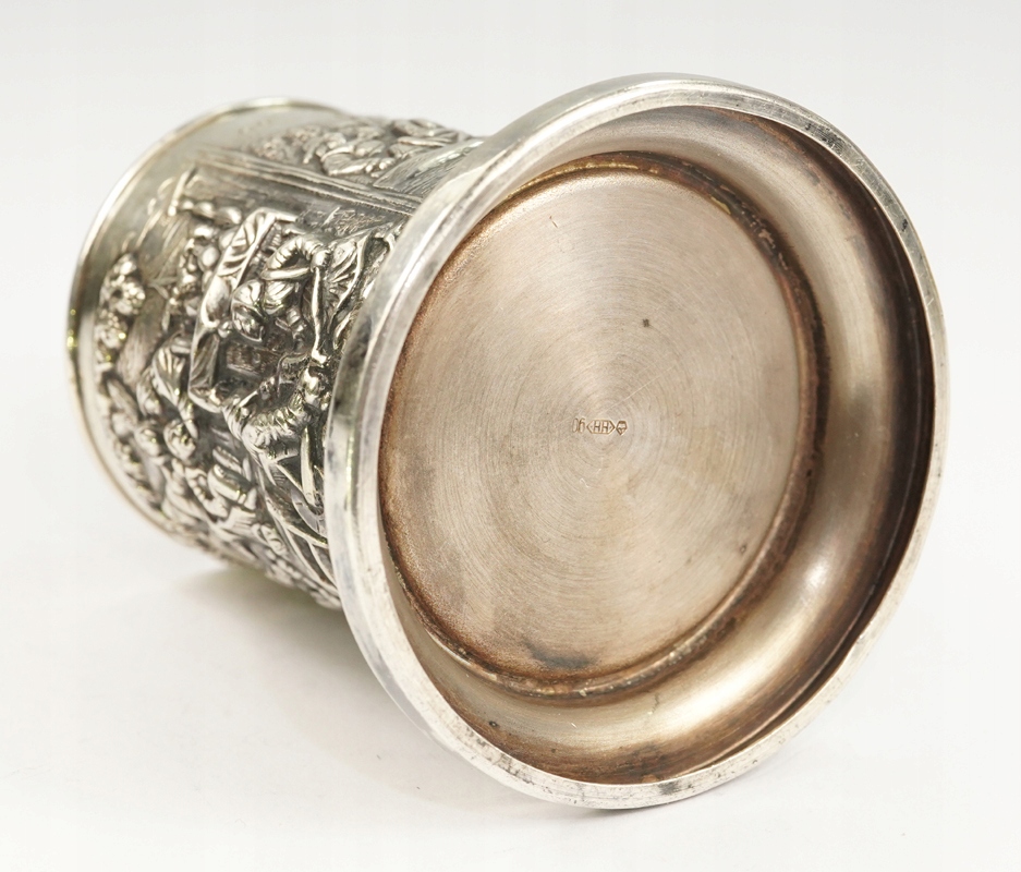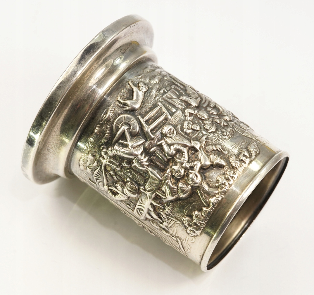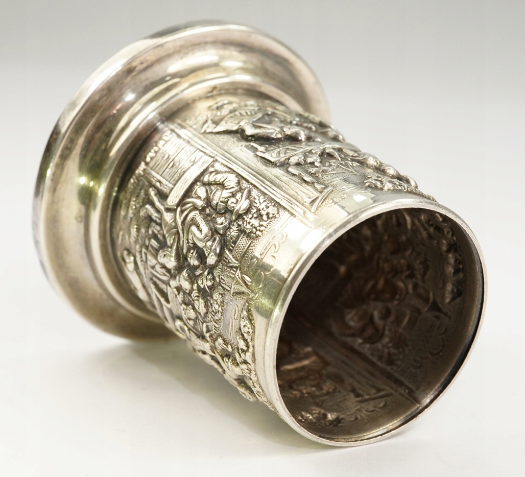 Оригинальный чрезвычайно красивый редкий старый украшенная коробка / контейнер со спинка с облегчением, подписанный на дне основания, серебряный металл; Размер: высота 7 см, диаметр основания 6,5 см, диаметр литья 4,5 см. Идеальное состояние, без повреждений. Я рекомендую, оригинальный очень редкий товар по доступной цене. Чрезвычайно интересный редкий оригинальный объект. Состояние идеально видно на изображениях в описании аукциона.