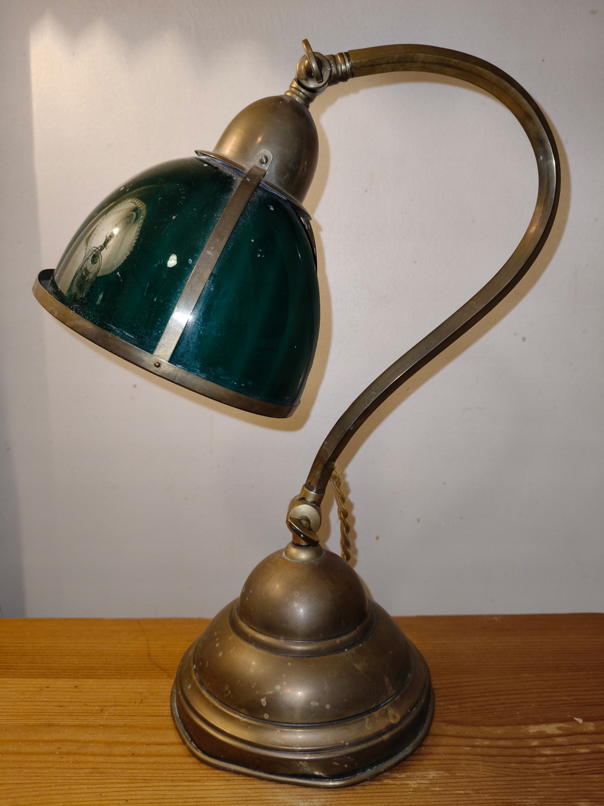 Stara przedwojenna lampa gabinetowa bankierska mosiądz sprawna do renowacji