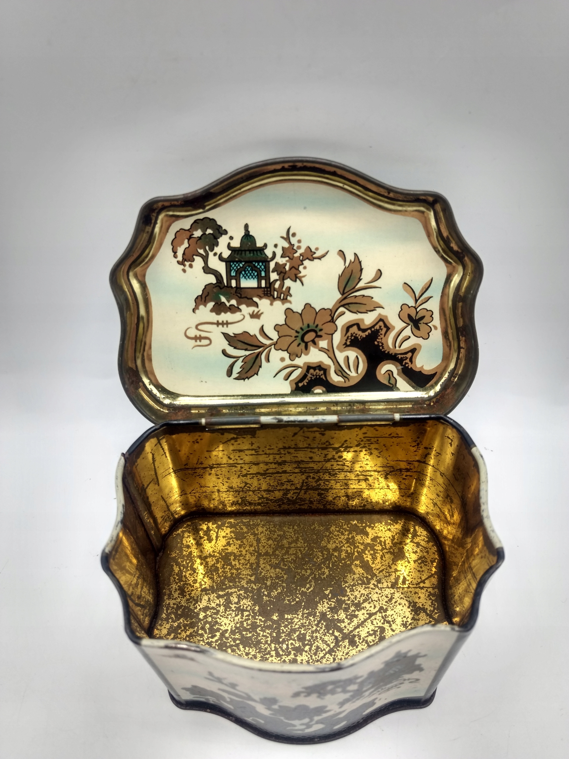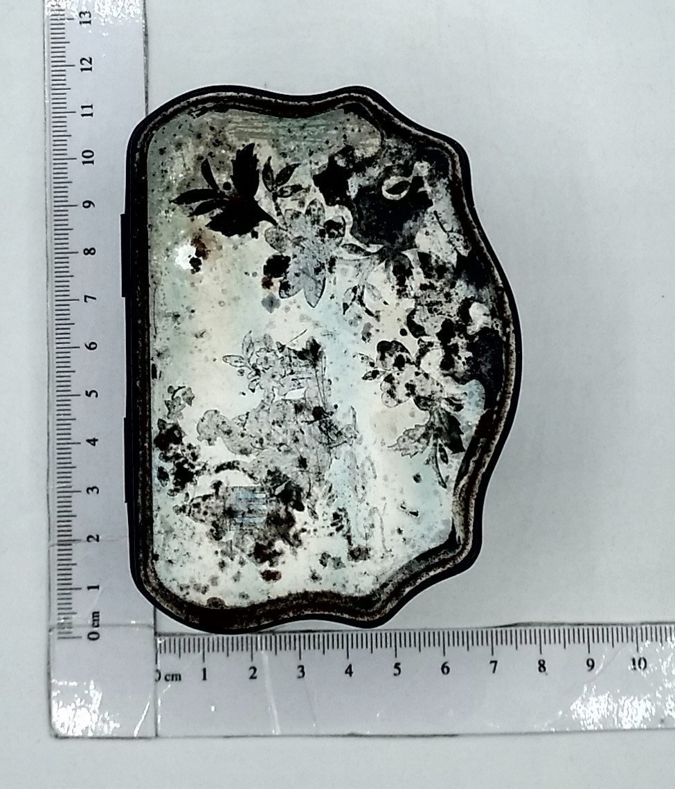 - это очень старый предмет, на нем видны потери краски, царапины, коррозия. , на мой взгляд это просто банка добавляет шарма, а все дополняется красивыми японскими мотивами,банка еще годная, дырок нет!