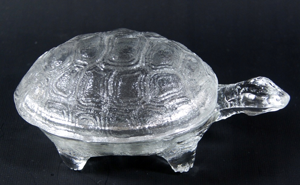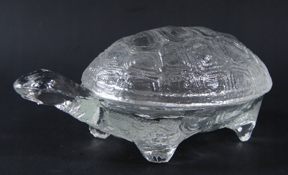 СТАРАЯ КОРОБКА, Шкатулка, СТЕКЛЯННАЯ ЧЕРЕПАХА, длина 12 см