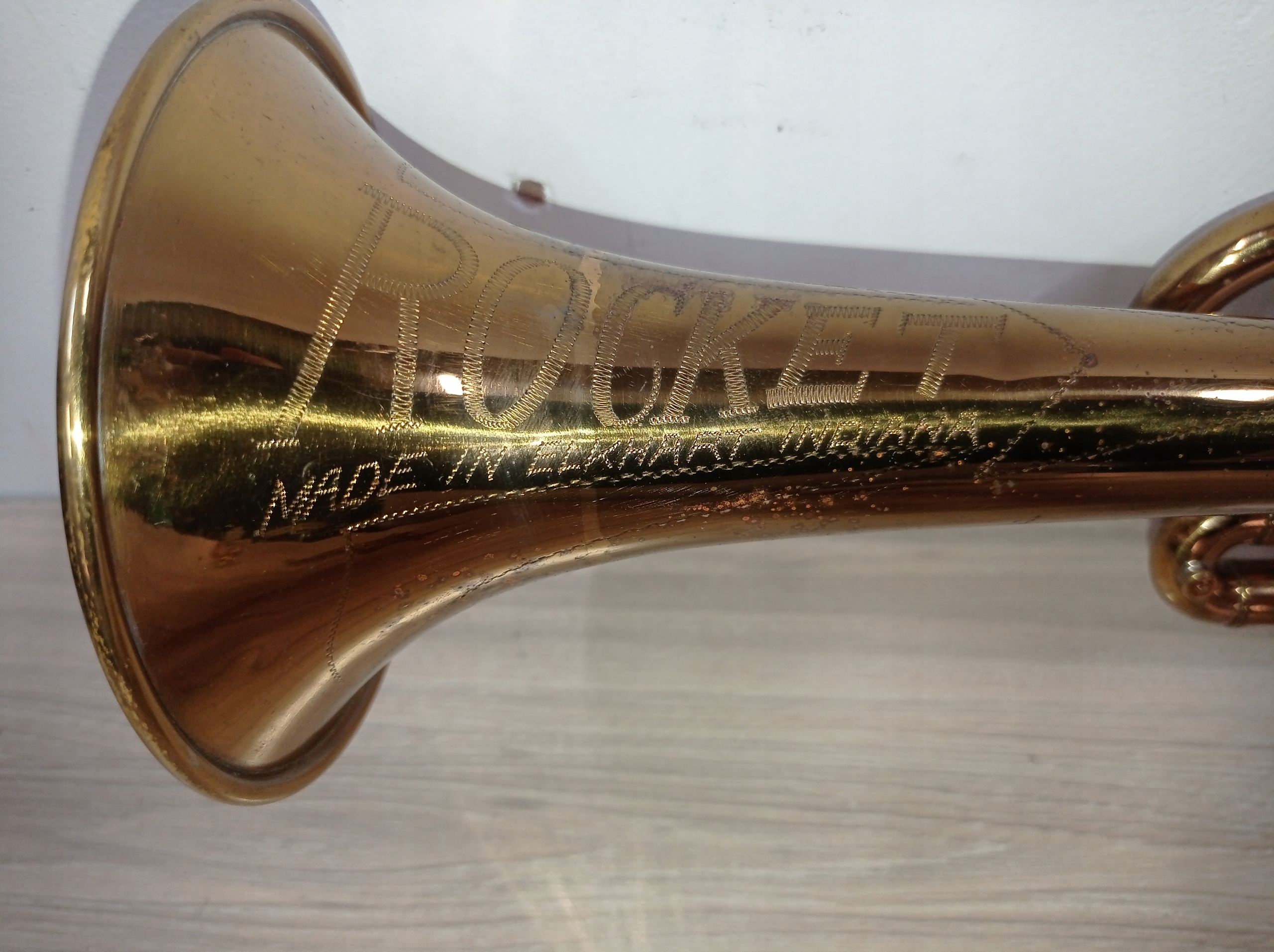 Предмет продажи — труба ROCKET MADE IN ELKHART INDIANA с аксессуарами, видимыми на фотографиях.