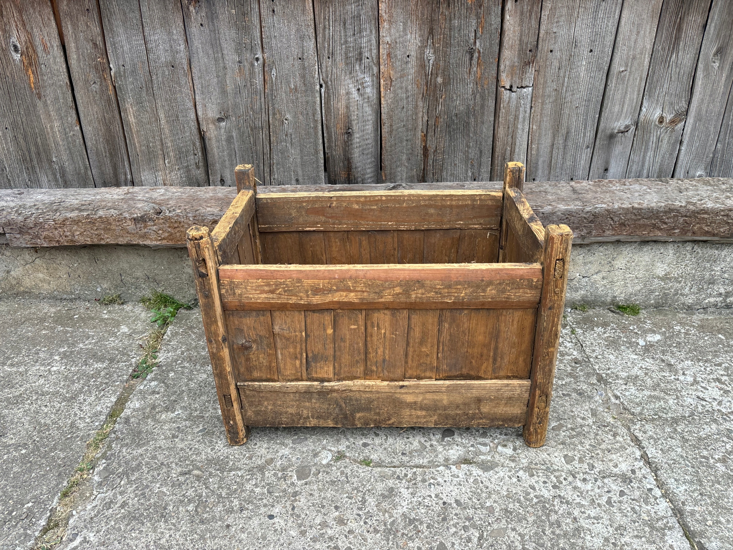 Старый деревянный ящик, состояние как на фото. Коробка не битая. Размеры указаны на фотографиях. Он будет надежно закреплен для транспортировки.