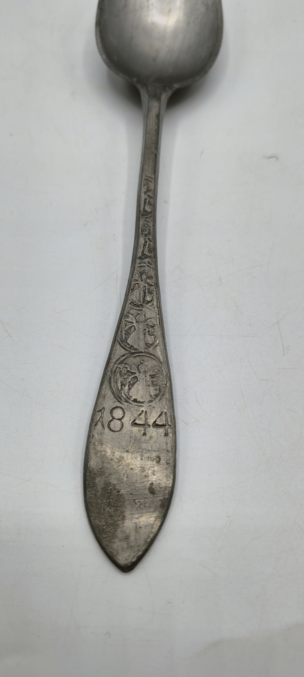 СТАРАЯ большая оловянная ложка с подписью символов Ангелов и числа 1844 (вероятно, год)