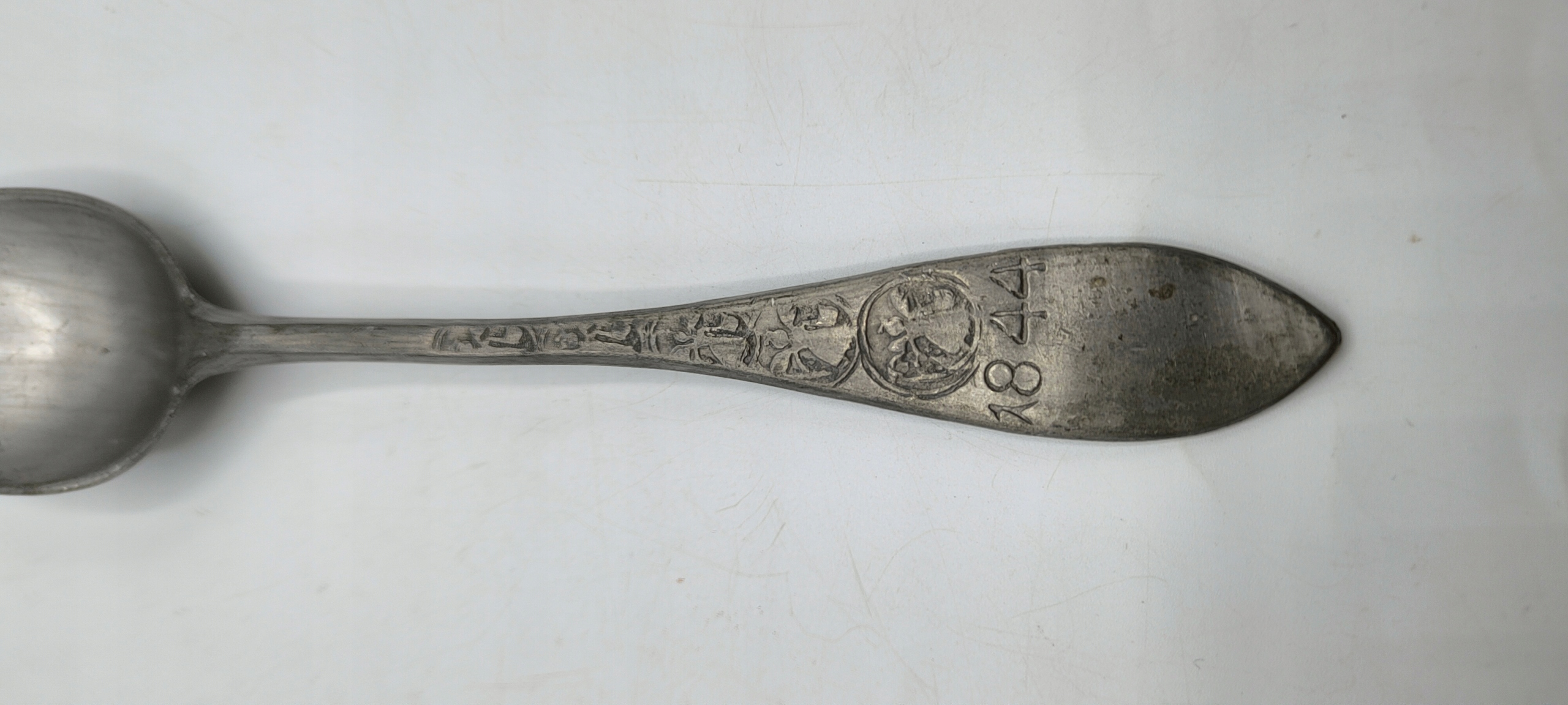 STARA Starodawna duża cynowa Łyżka sygnowana znakami Aniołków i cyfrą 1844