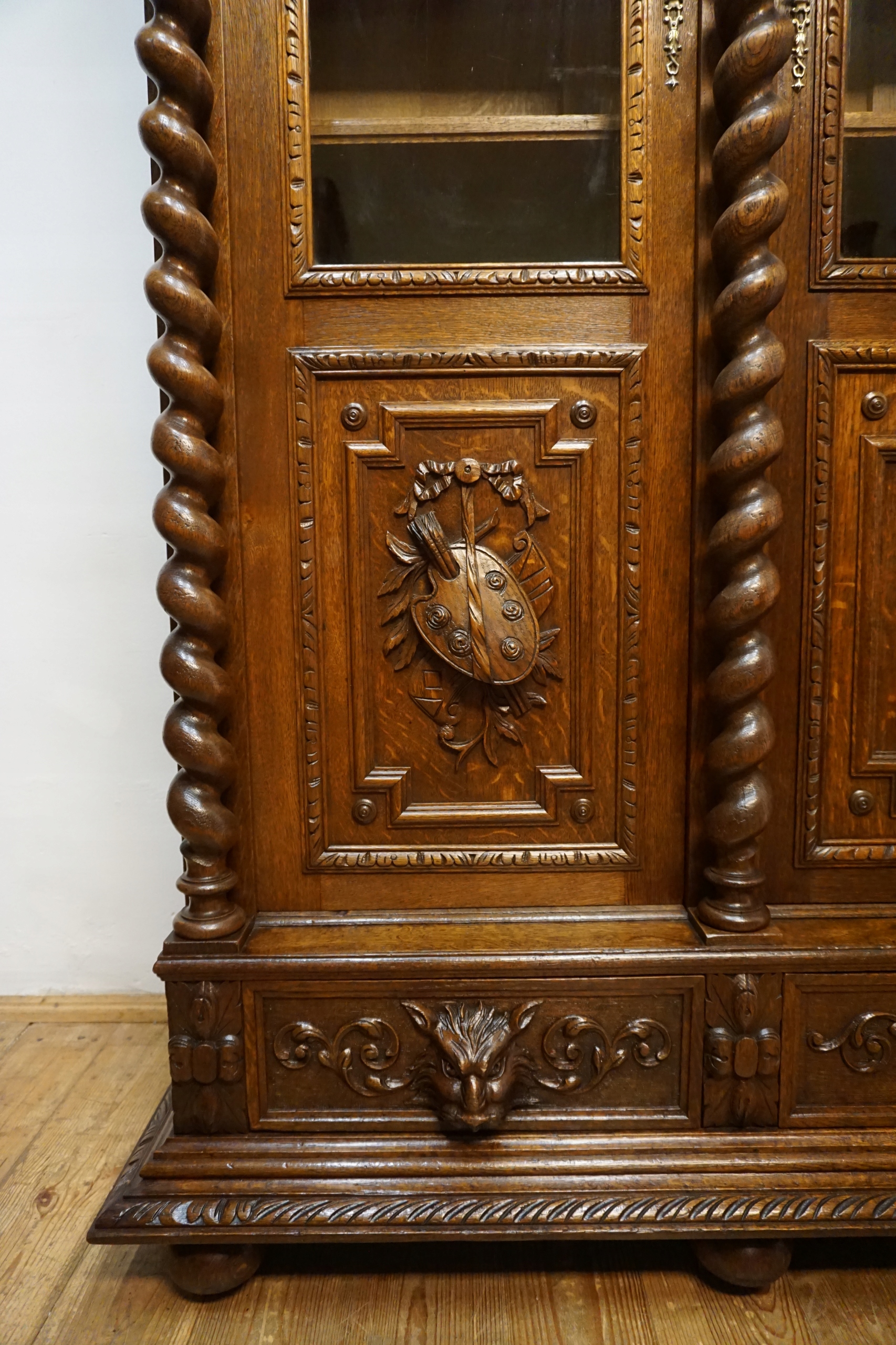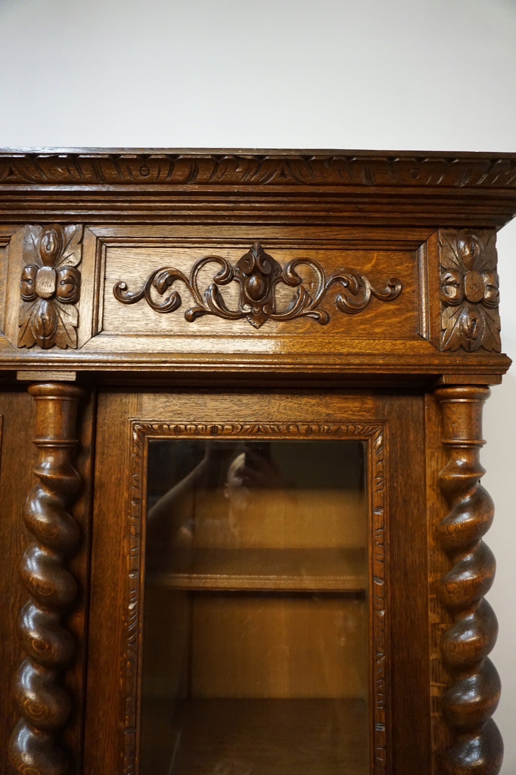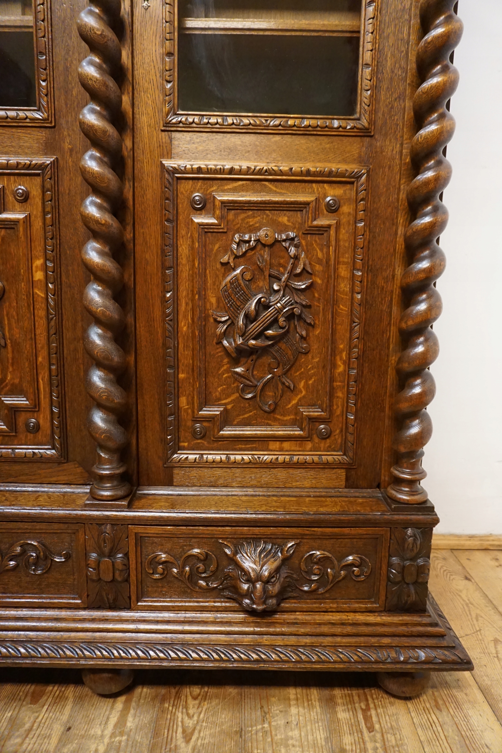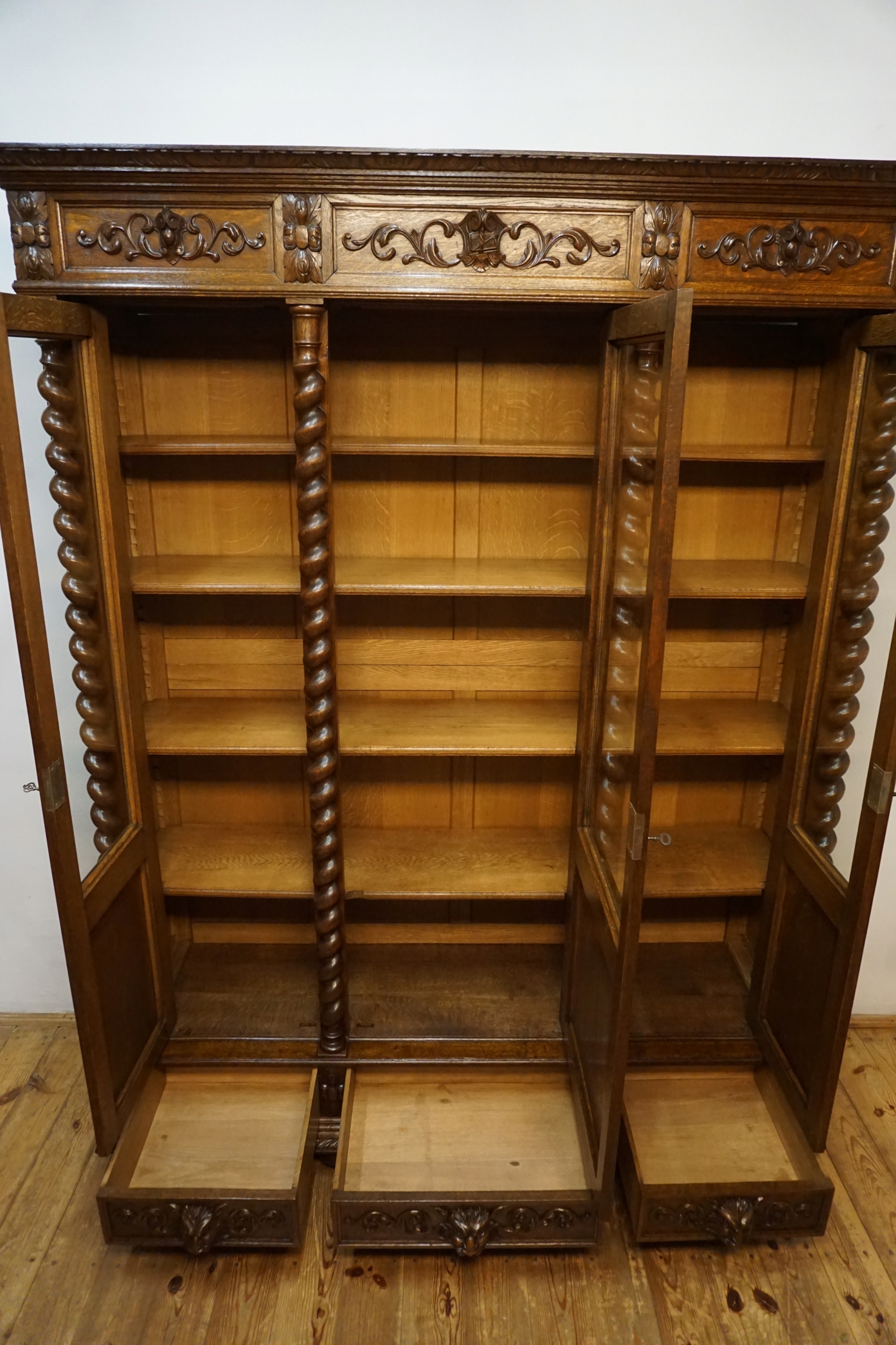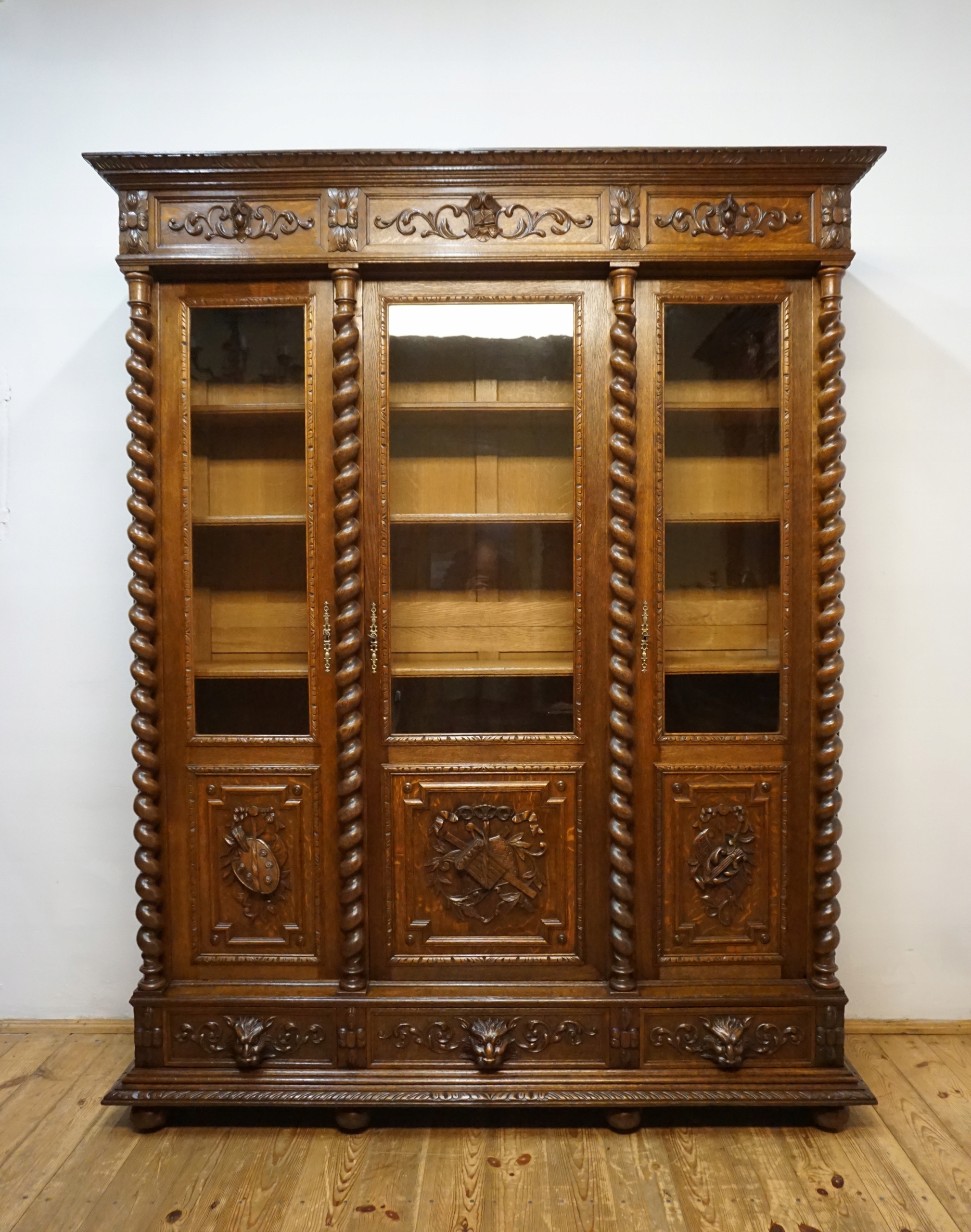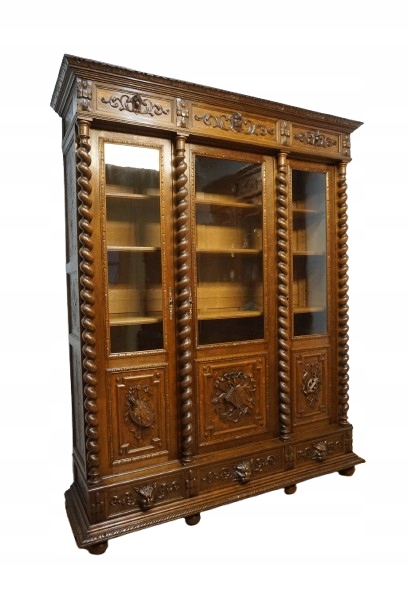 СТАРАЯ ТРЕХДВЕРНАЯ БИБЛИОТЕКА С БОГАТОЙ РЕЗЬБОЙ СПИРАЛЬНОЙ КОЛОННОЙ ФРАНЦИЯ