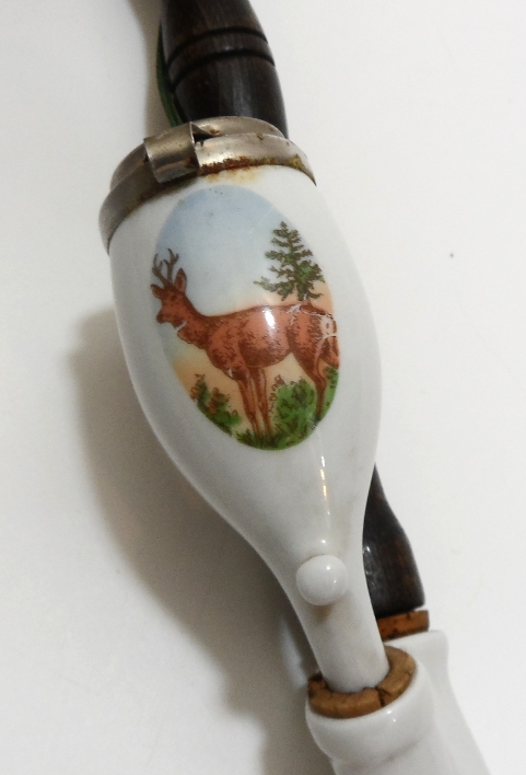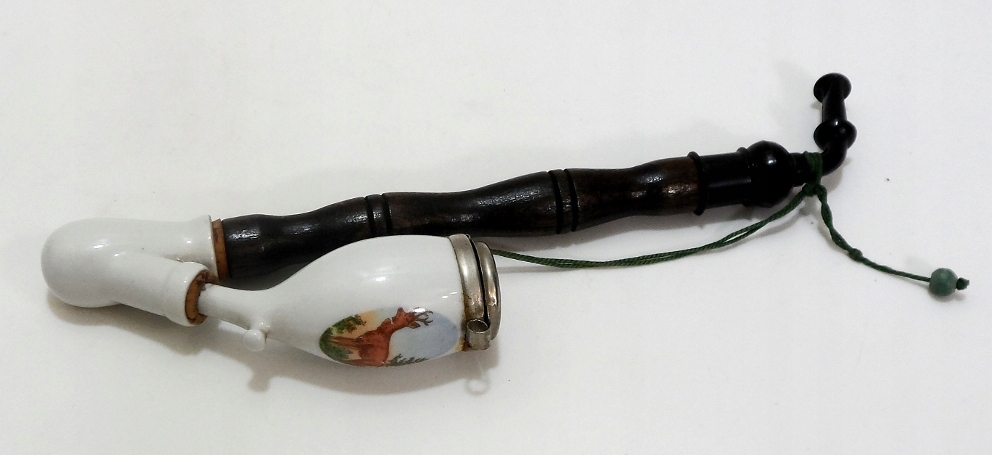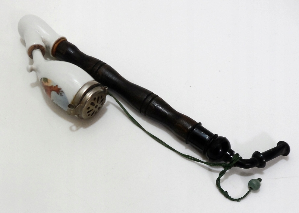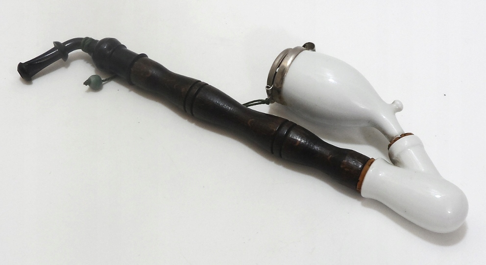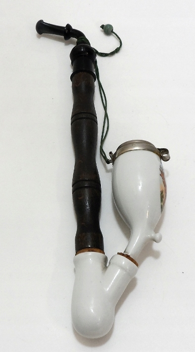 Предмет аукциона — старинная трубка, изготовленная из металла, фарфора, дерева, мундштук пластиковый.