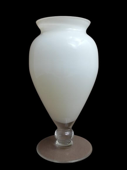 Старая ваза HS Ząbkowice, двойное художественное стекло на подноже польской народной республики