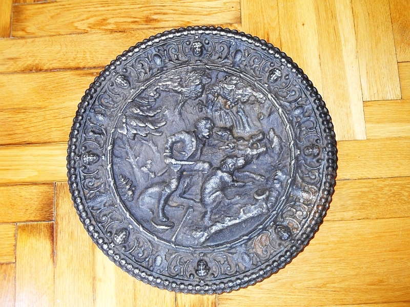 СТАРАЯ БОЛЬШАЯ ЧУГУННАЯ ТАРЕЛКА СЦЕНА ОХОТЫ ПОГОЙКА Погоня Чугун