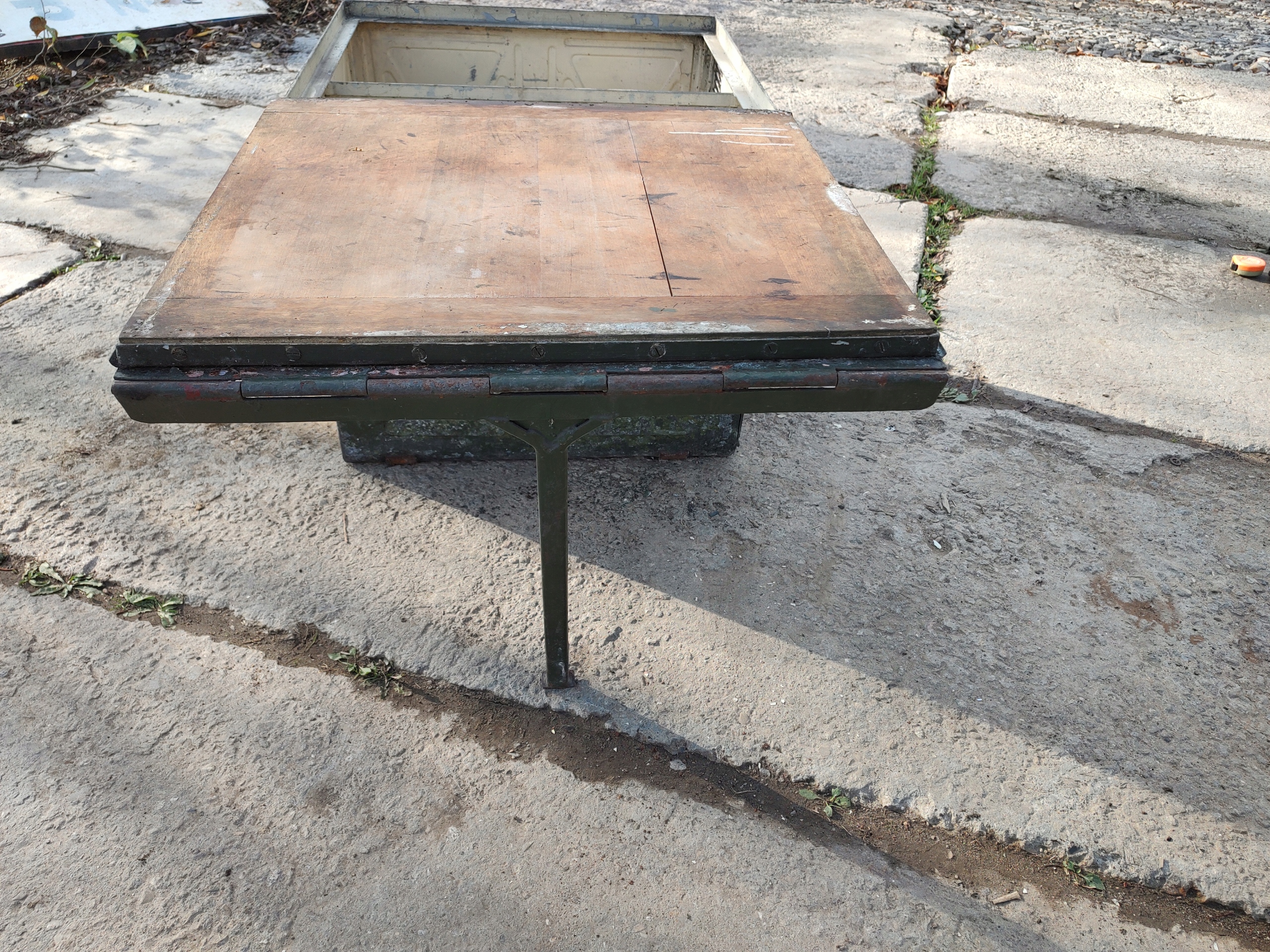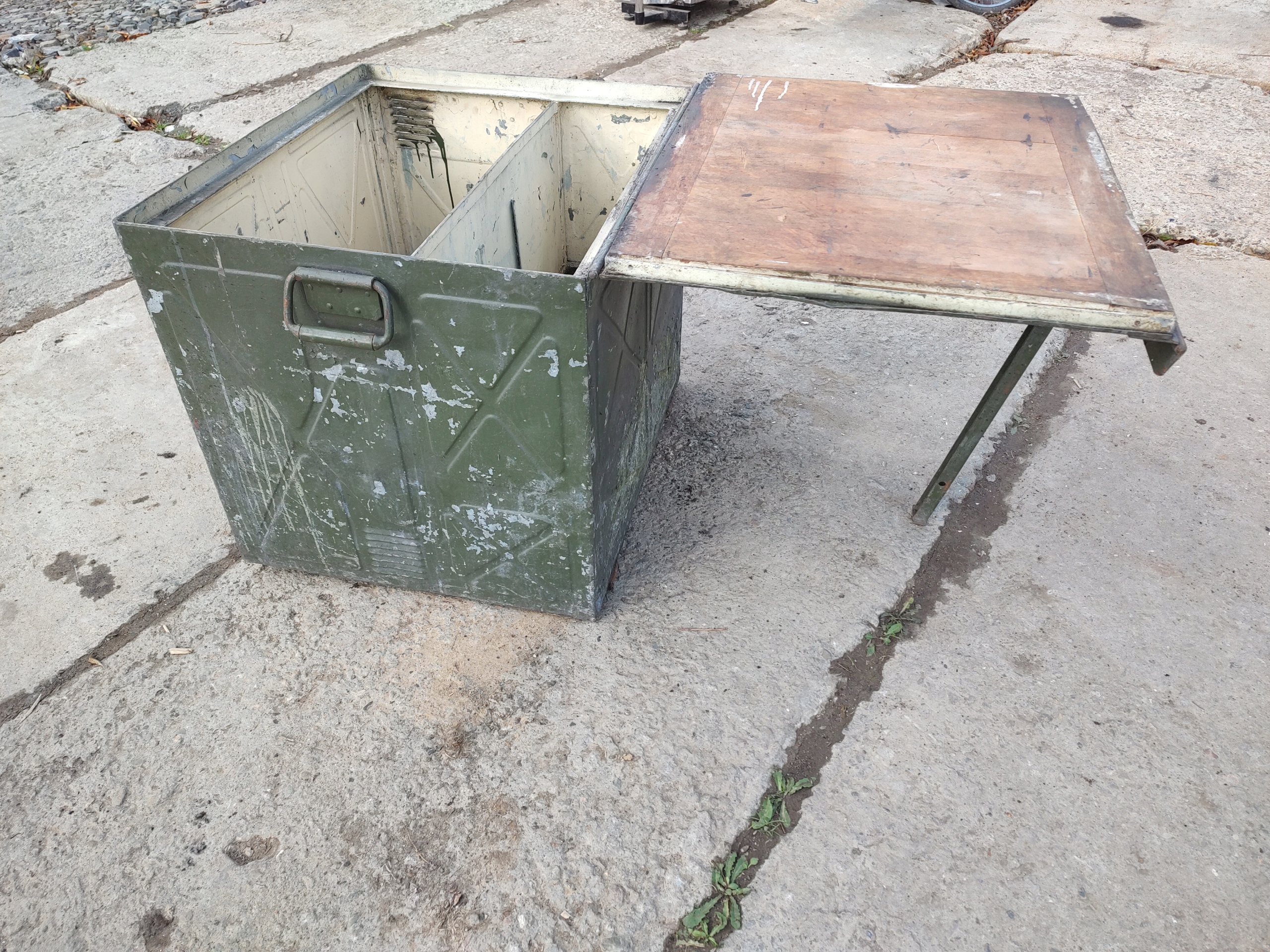 Старый военный сундук со столом, полевой холодильник, 70х62х62 см, милитария