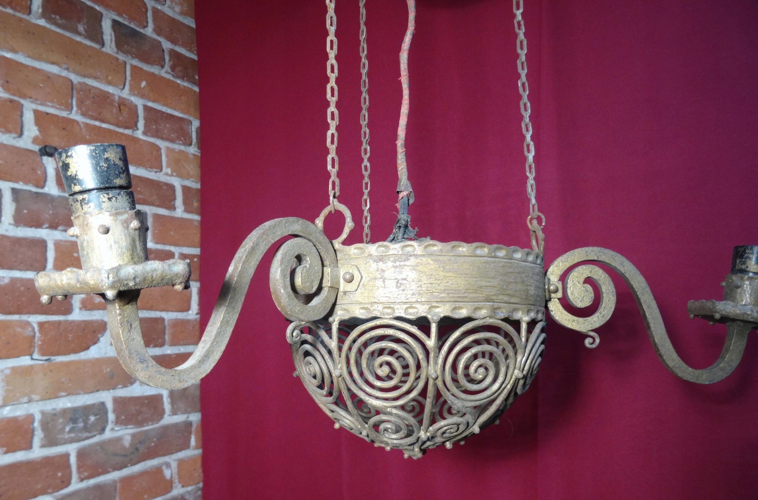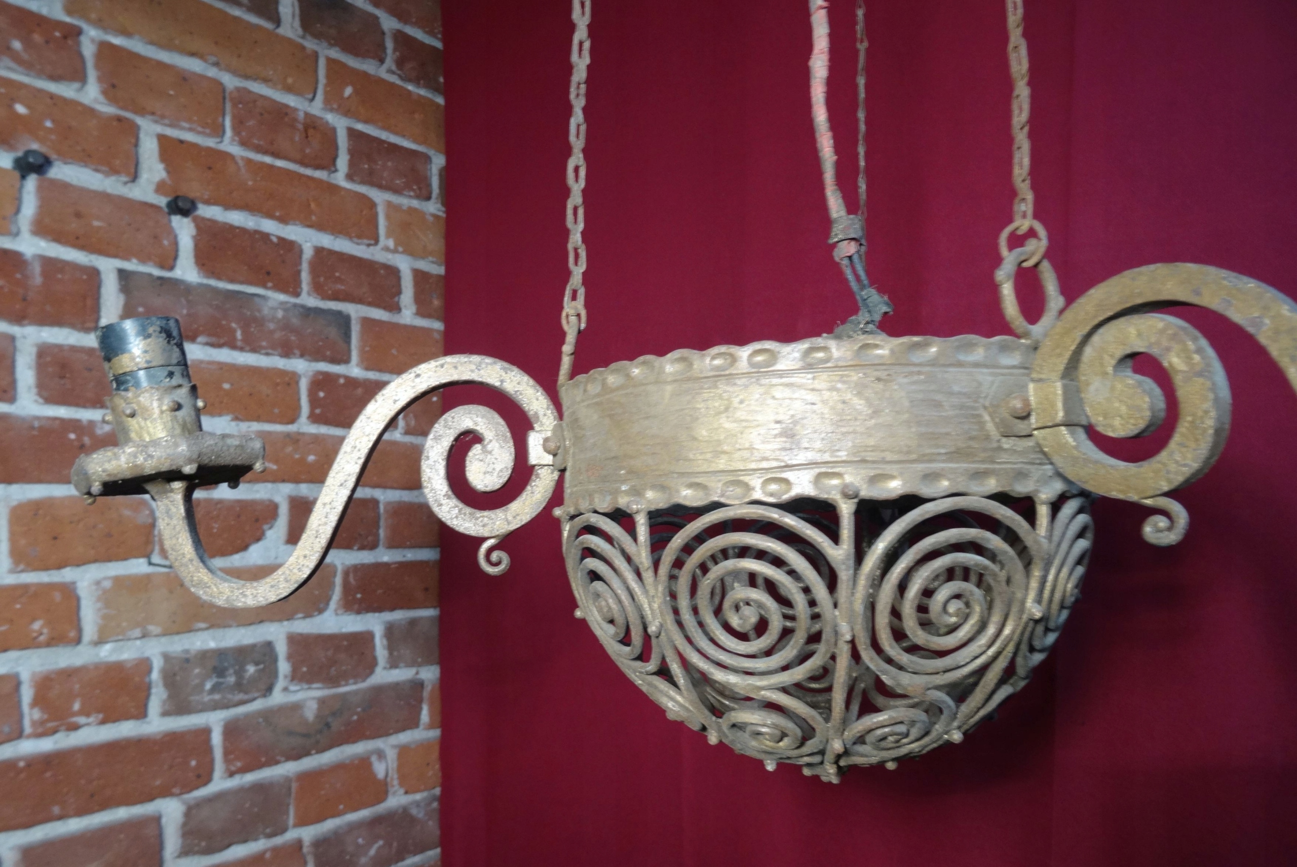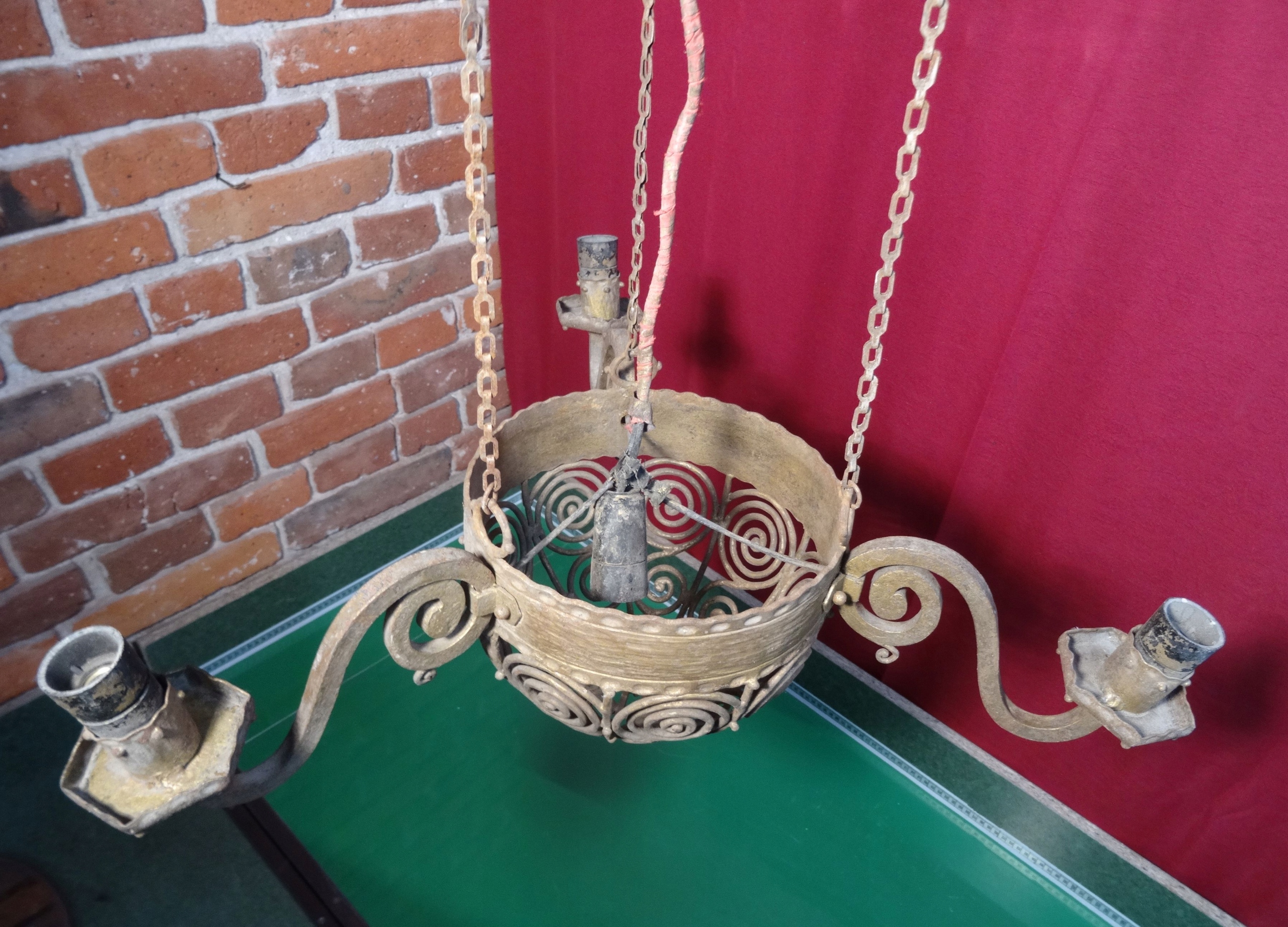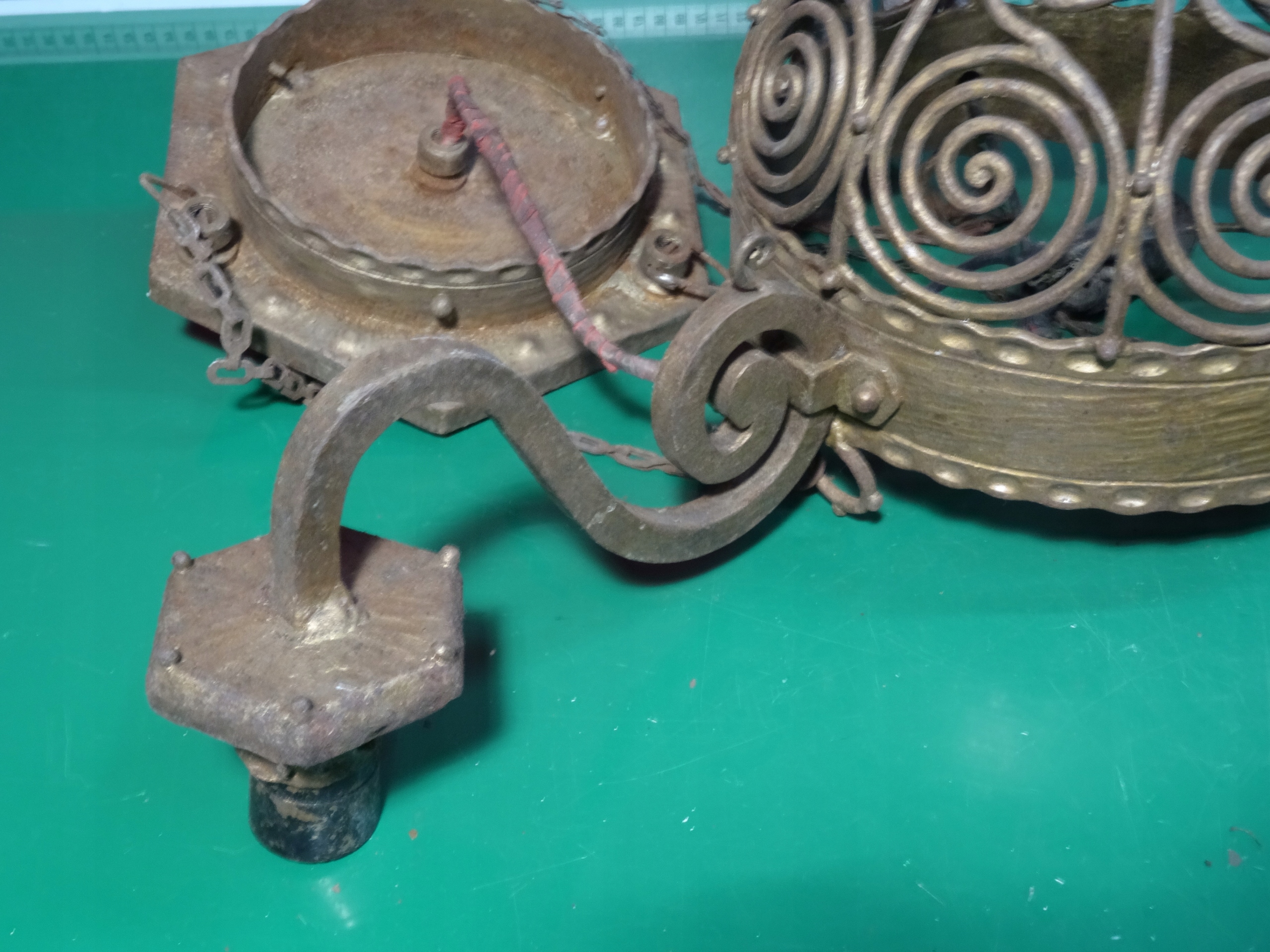 Старая железная лампа, металлопластика. Три -точка лампа, кованая, заклепки, сварные элементы.