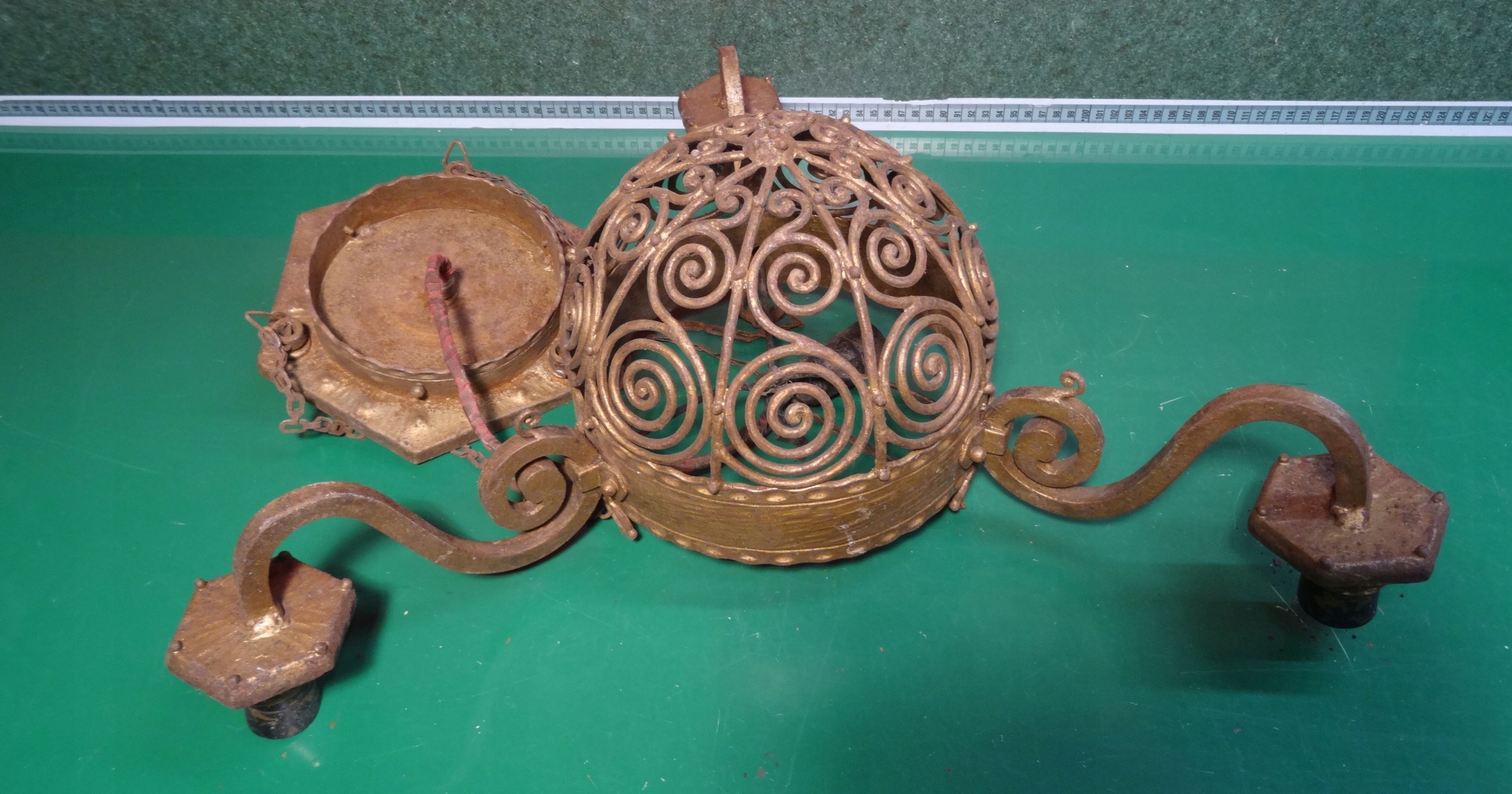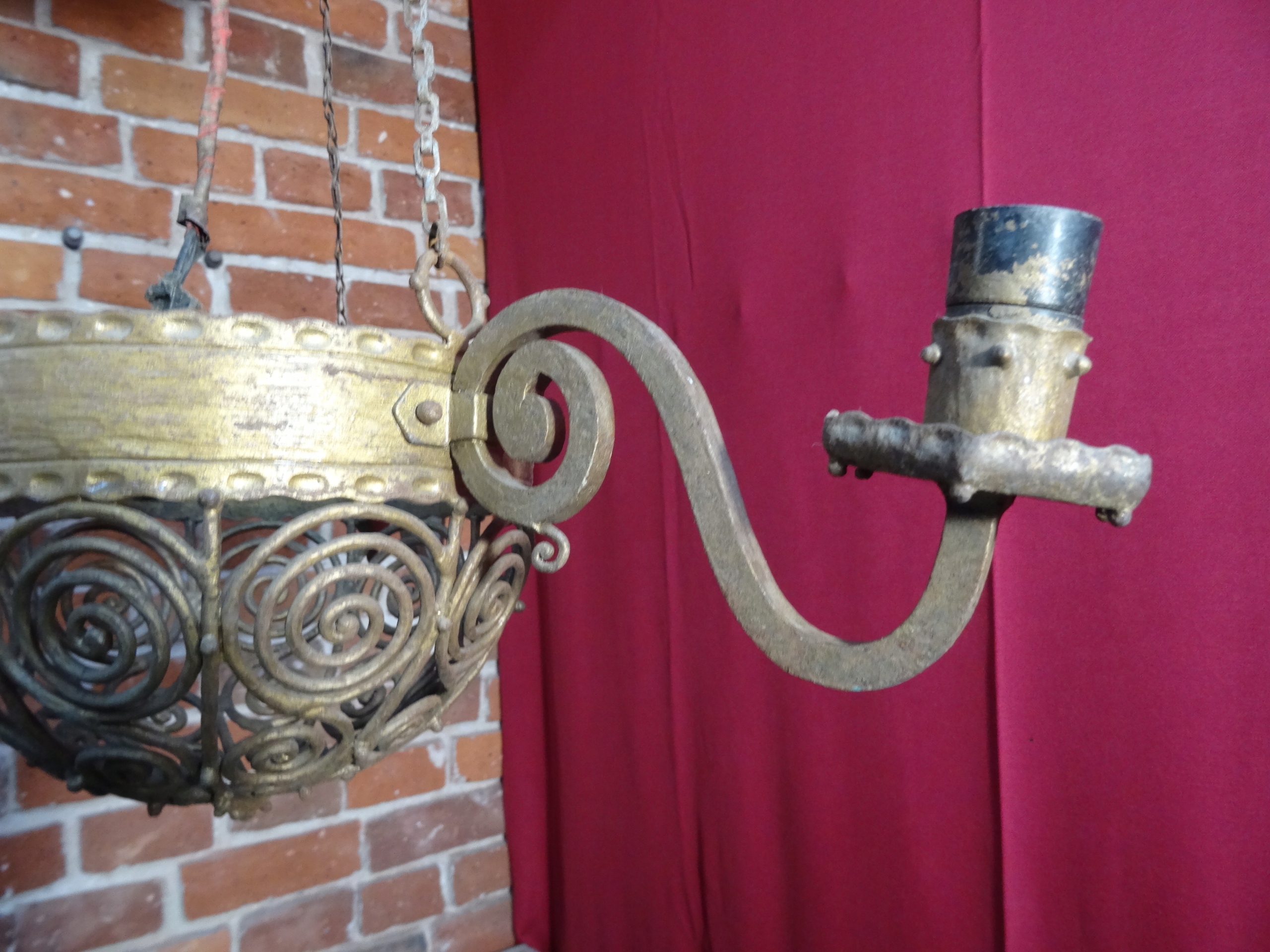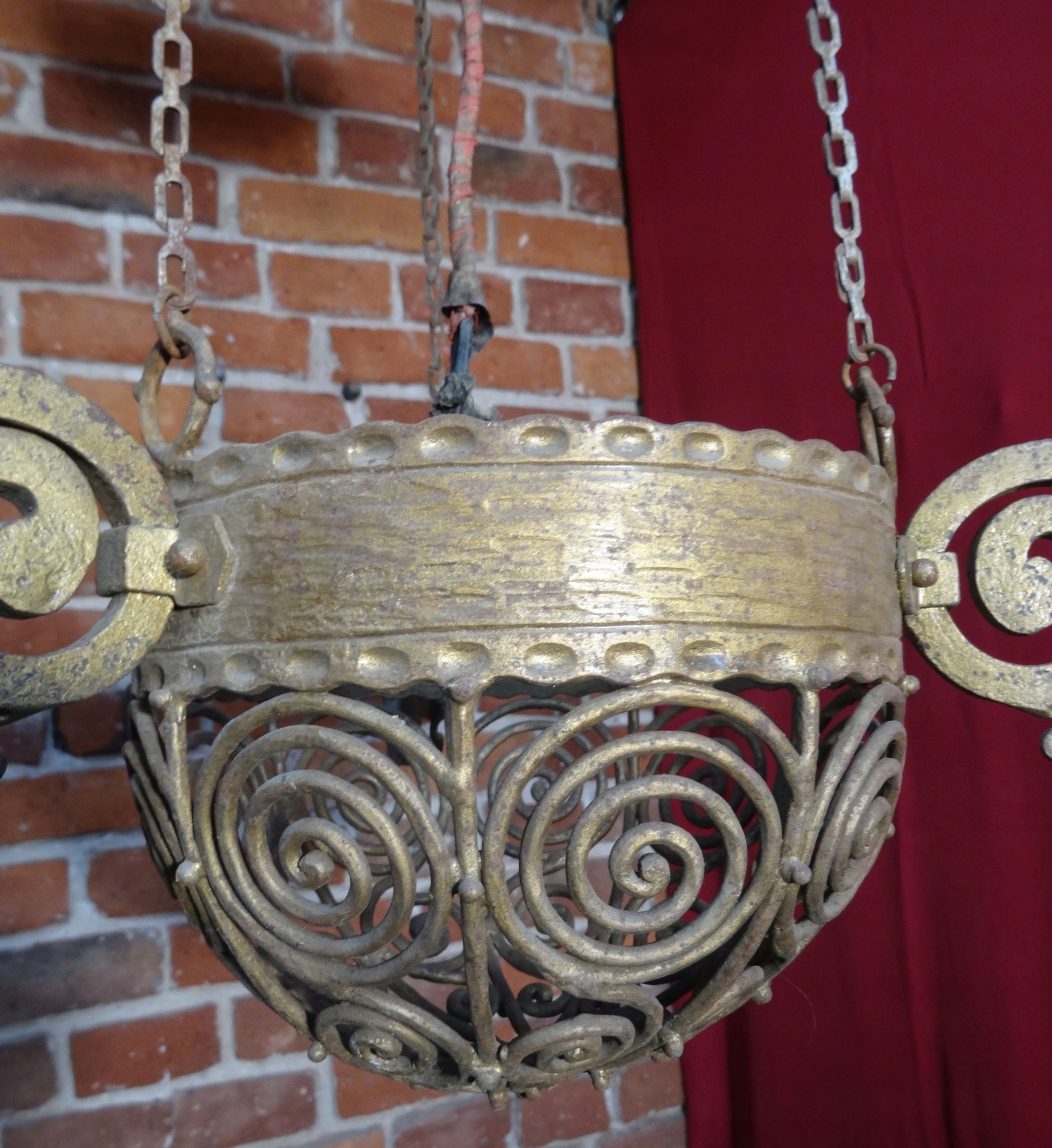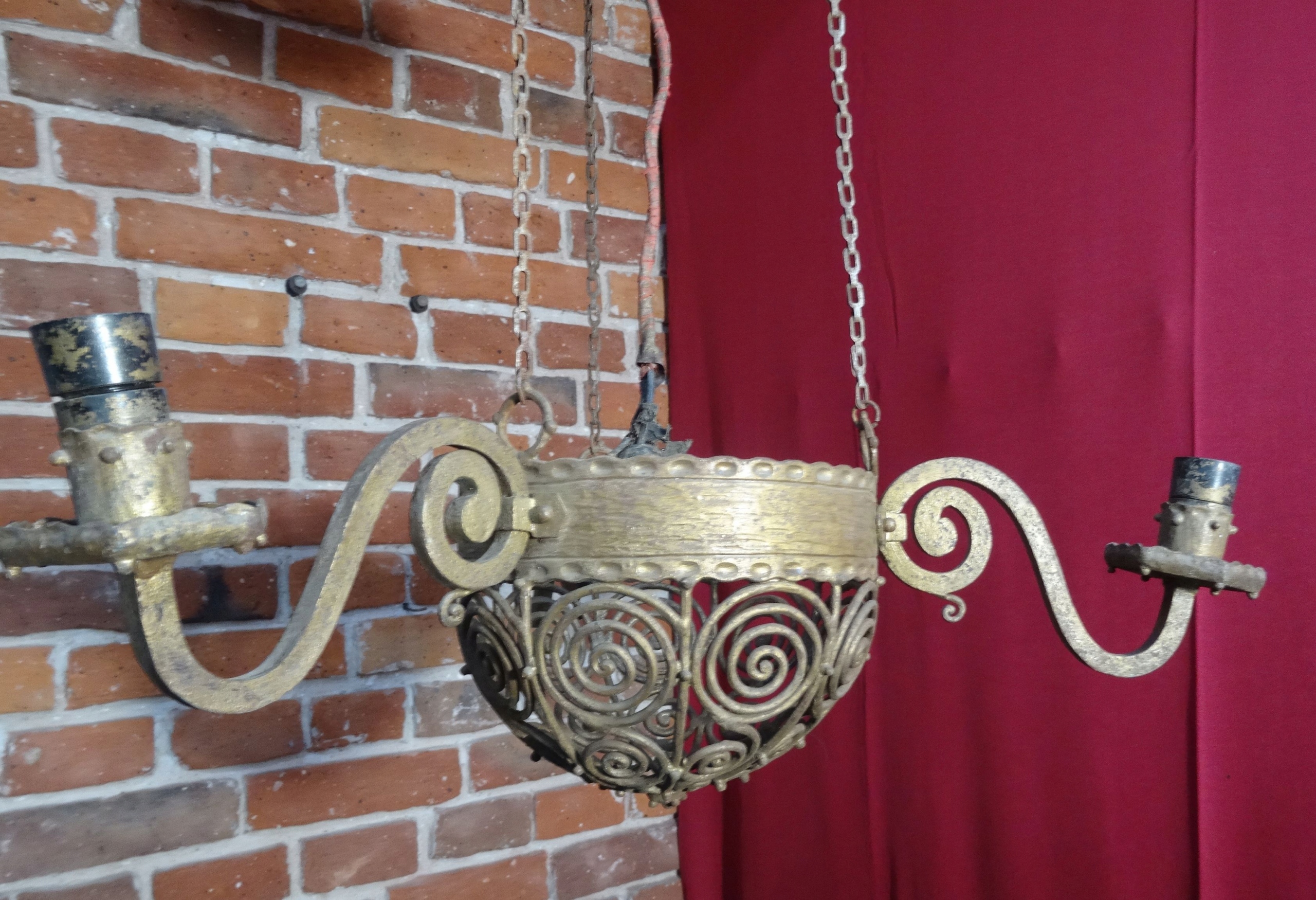 Старая железная лампа, металлопластика. Три -точка лампа, кованая, заклепки, сварные элементы.