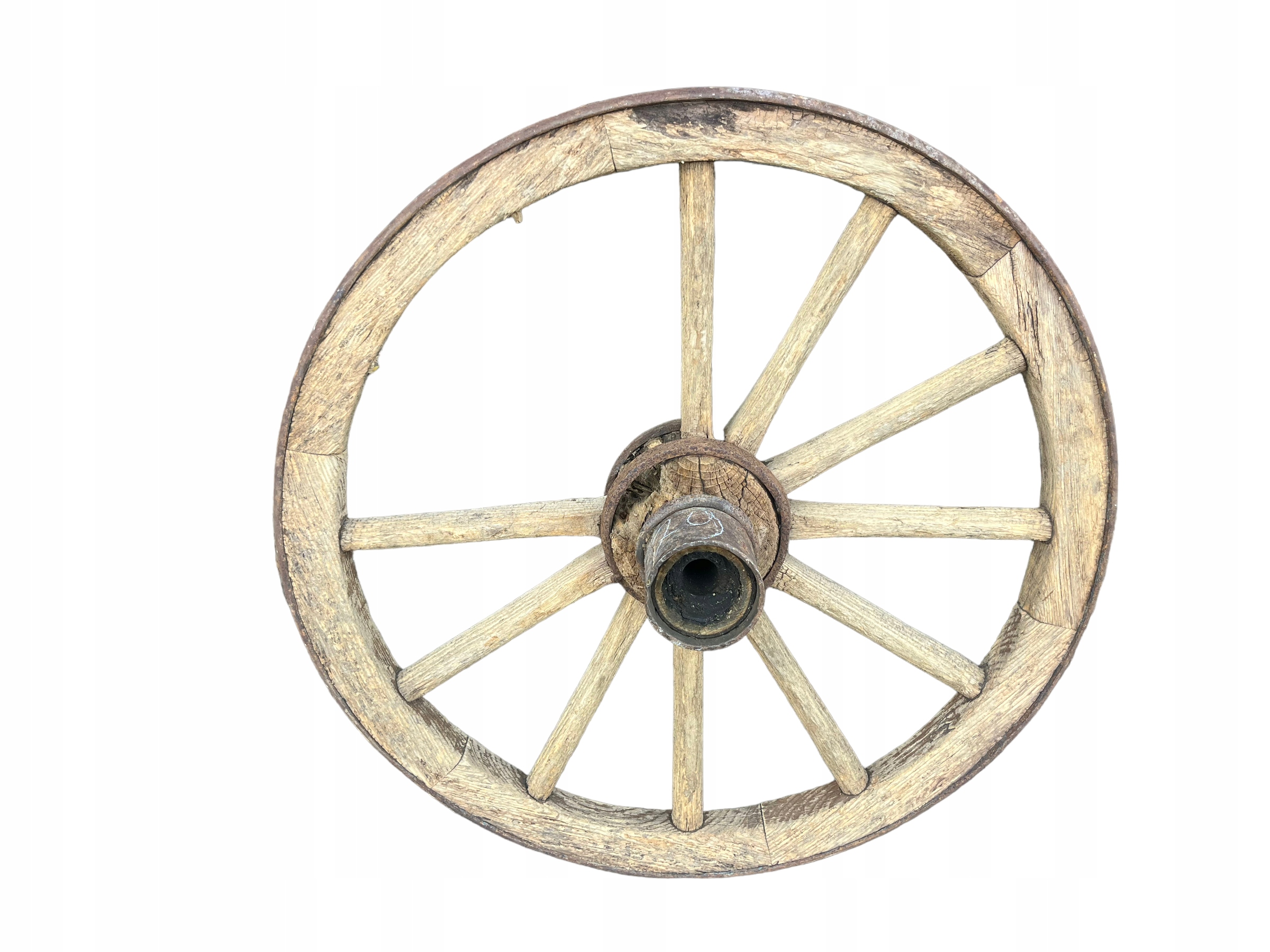 Старое деревянное колесо от телеги, состояние как на фото. Диаметр 79 см. Посмотрите, пожалуйста, другие мои аукционы, там есть и другие колеса.