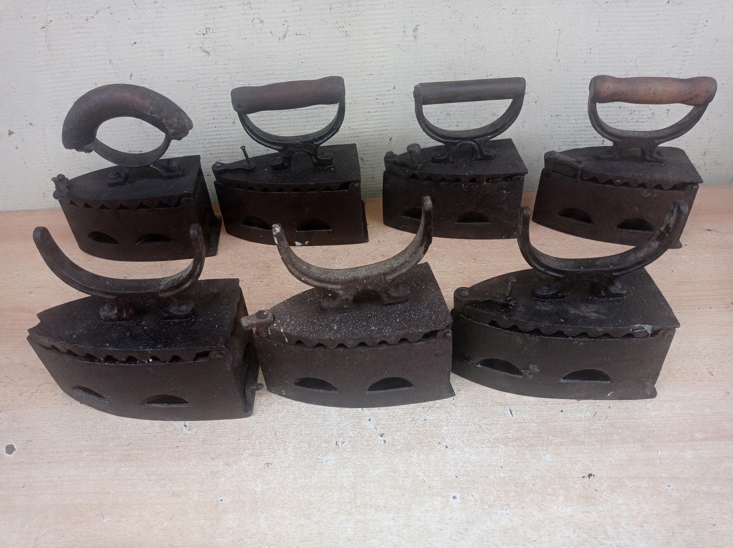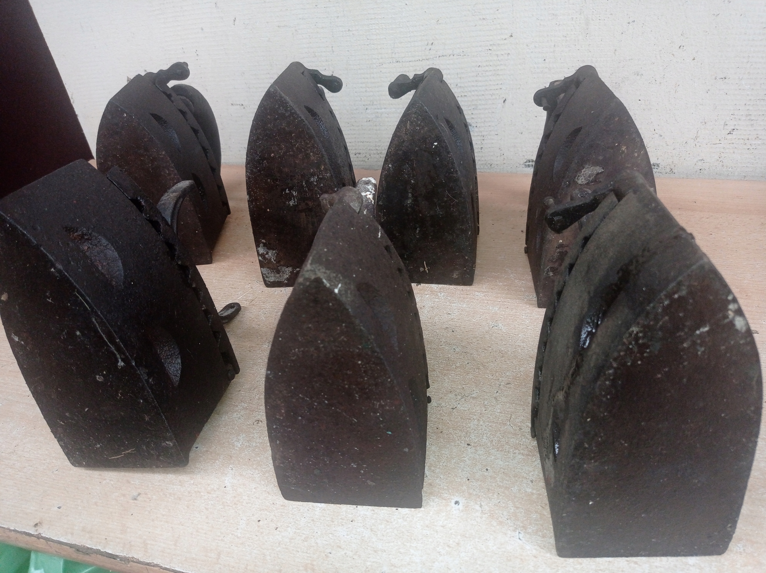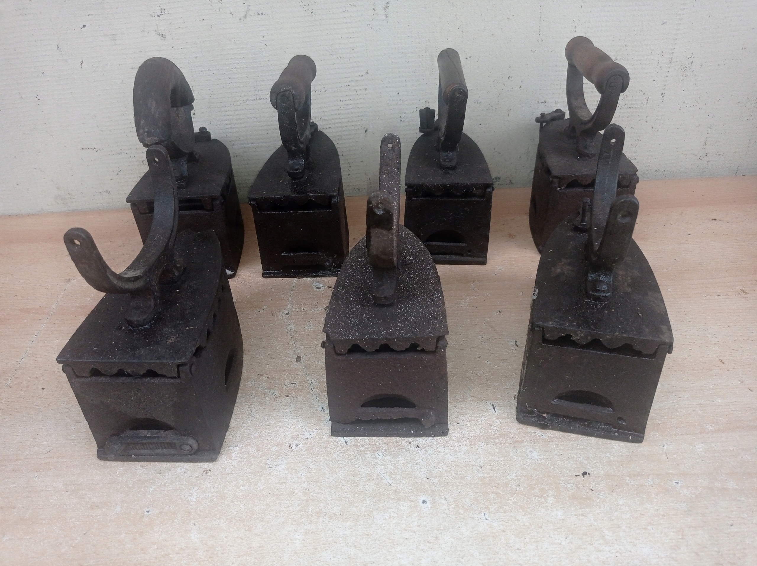 STARE ŻELAZKA ŻELIWNE NA WĘGIEL - 7 SZTUK.