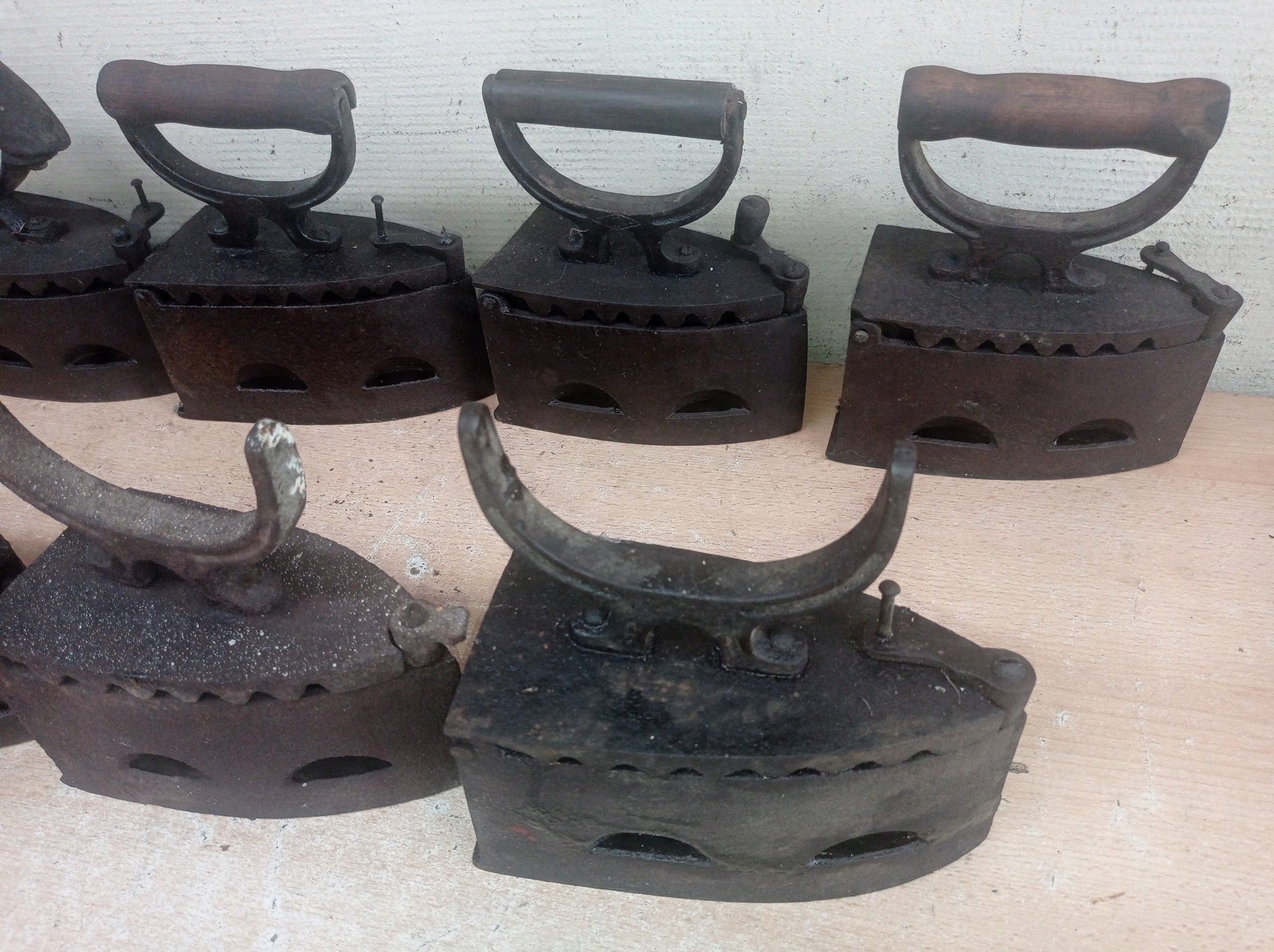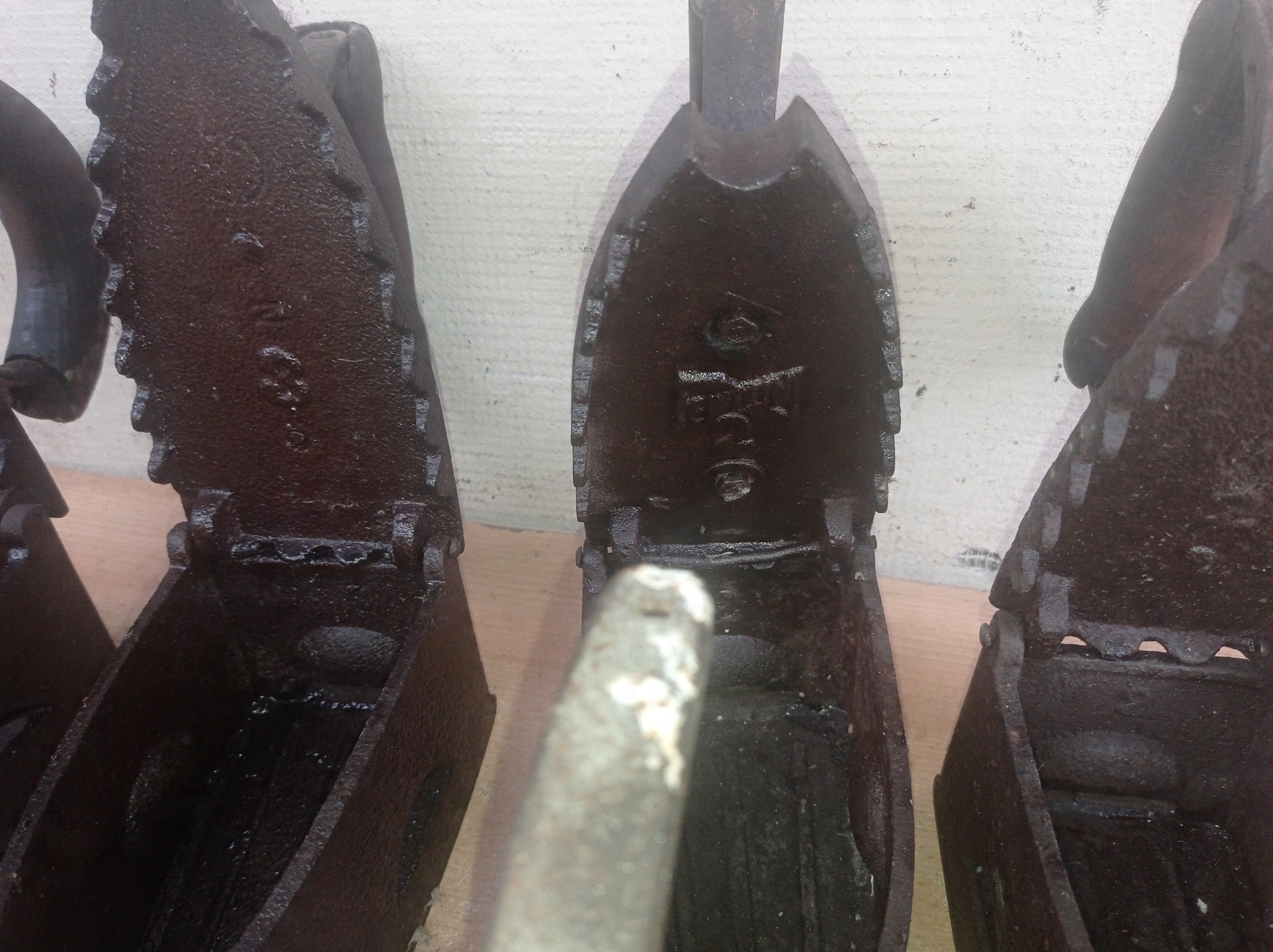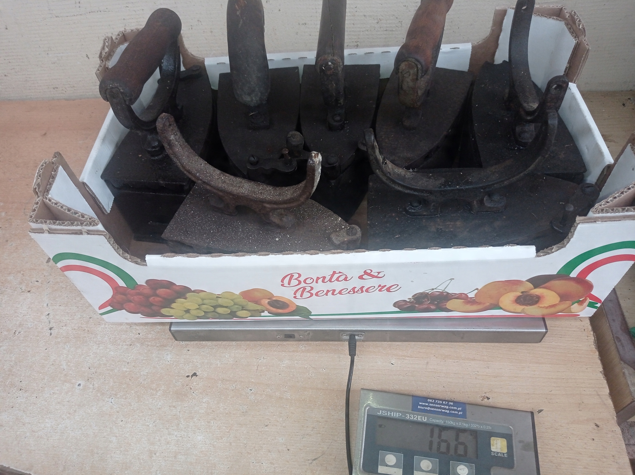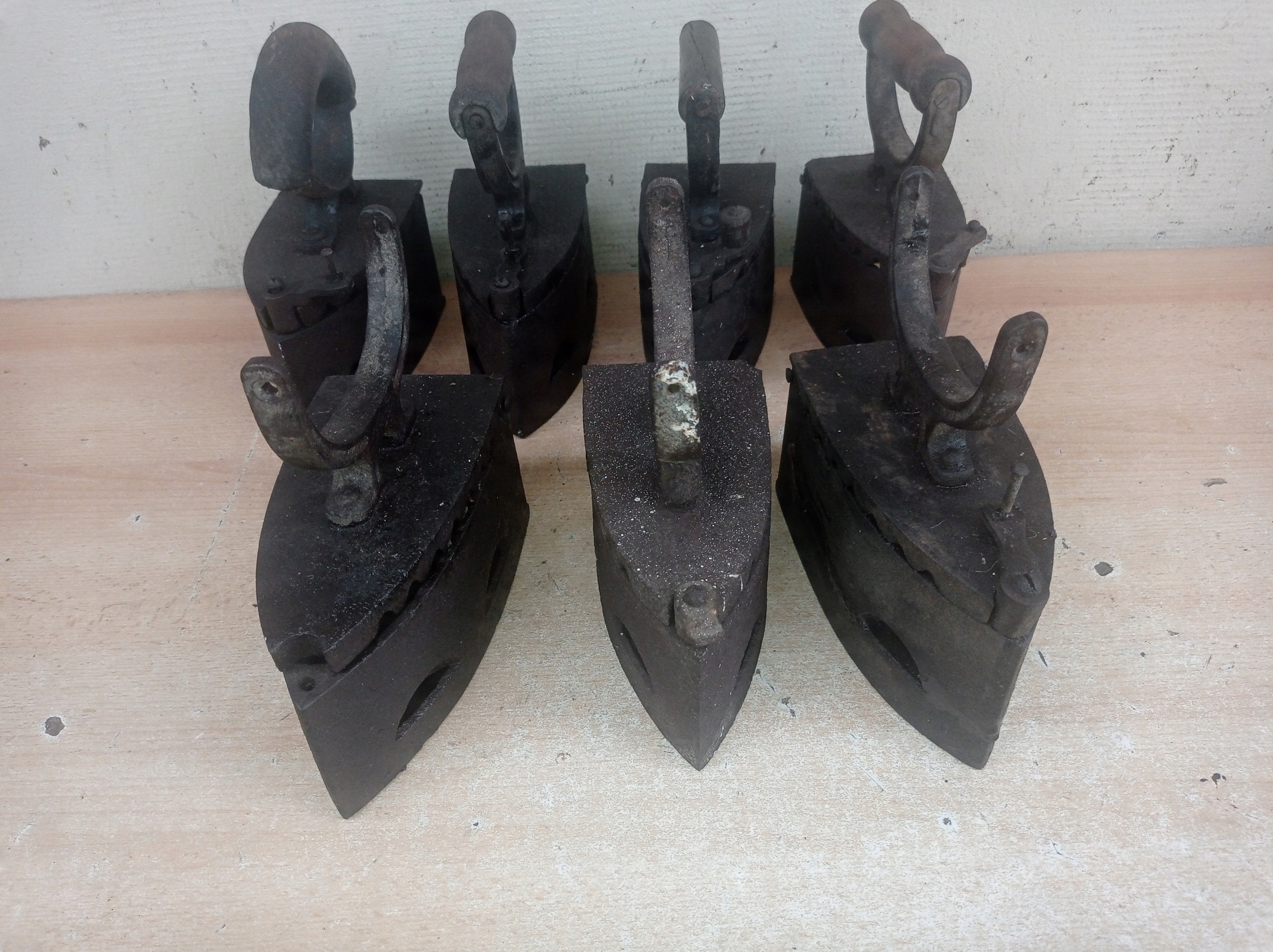 STARE ŻELAZKA ŻELIWNE NA WĘGIEL - 7 SZTUK.