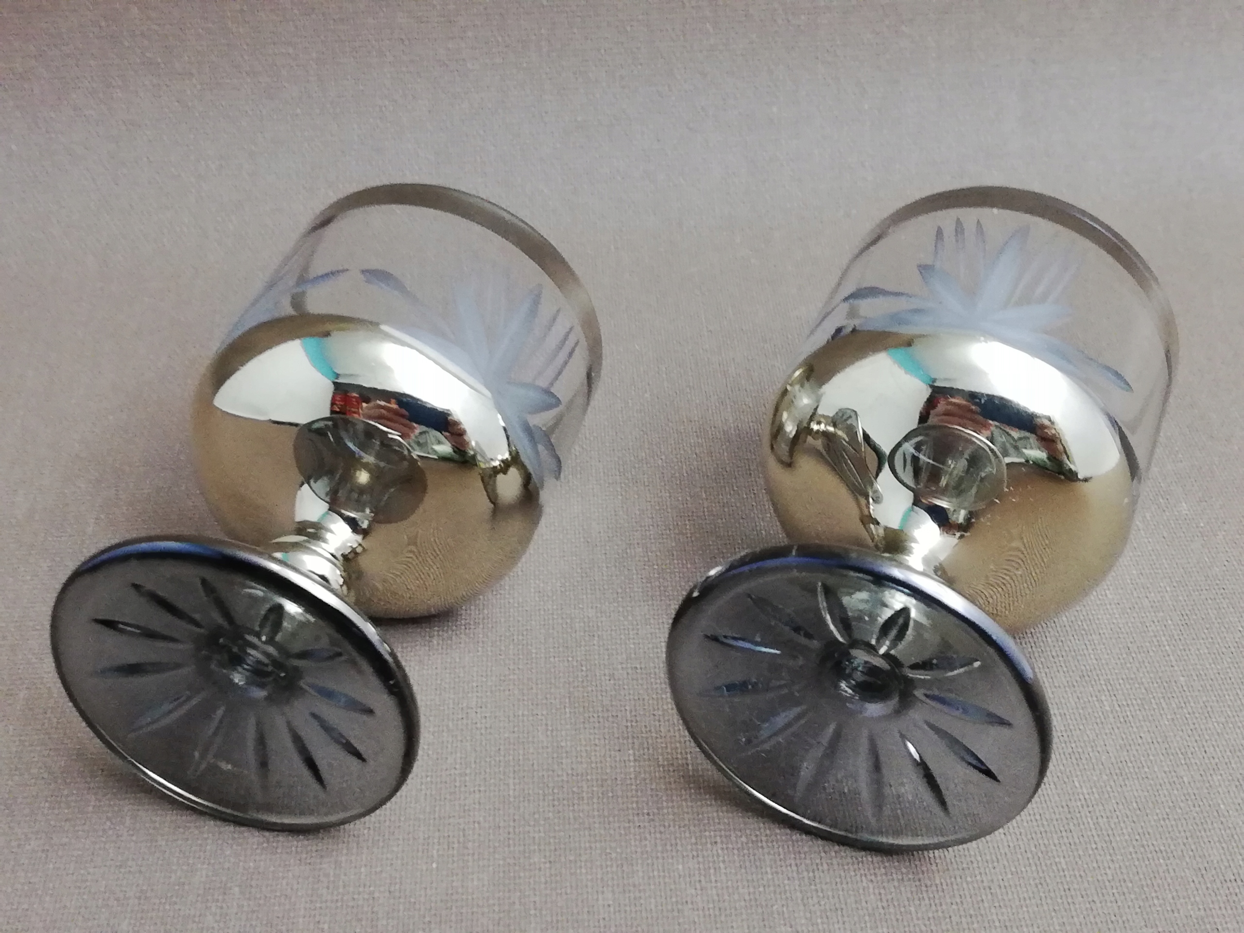 Stare kieliszki 2szt kieliszek para lata 30-te XX wieku szlif srebrzone