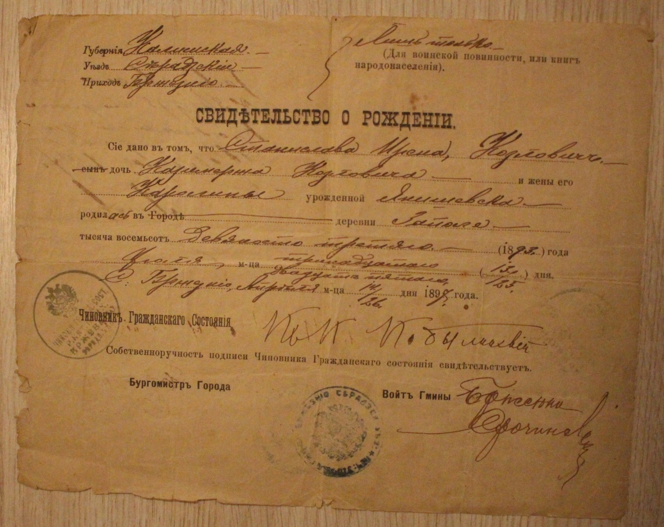 Свидетельство о старом рождении Россия, СССР - 3 старых оригинальных марок