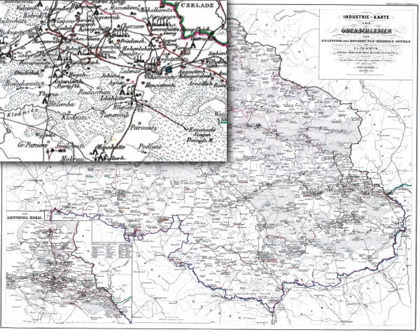 Таблица. 40 - 1861 - Промышленность - Karte von Oberschlesien zur Statistik des Regierungs Bezirks Oppeln. [1:500 000]