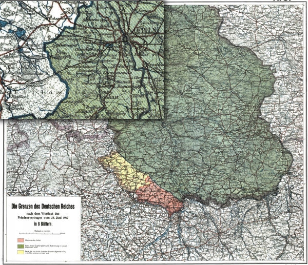 Таблица. 47 — 1919 — Die Grenzen des Deutschen Reiches nach dem Wortlaut des Fridensvertrages vom 25 июня 1919 года в 8 Blattern. [1:300 000]