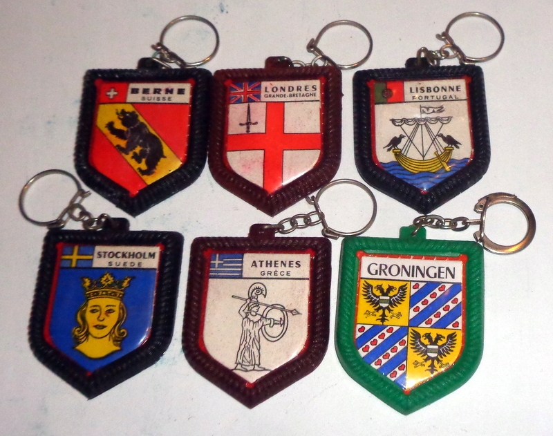Старые ключевые кольца с пальцами рук иностранных городов.