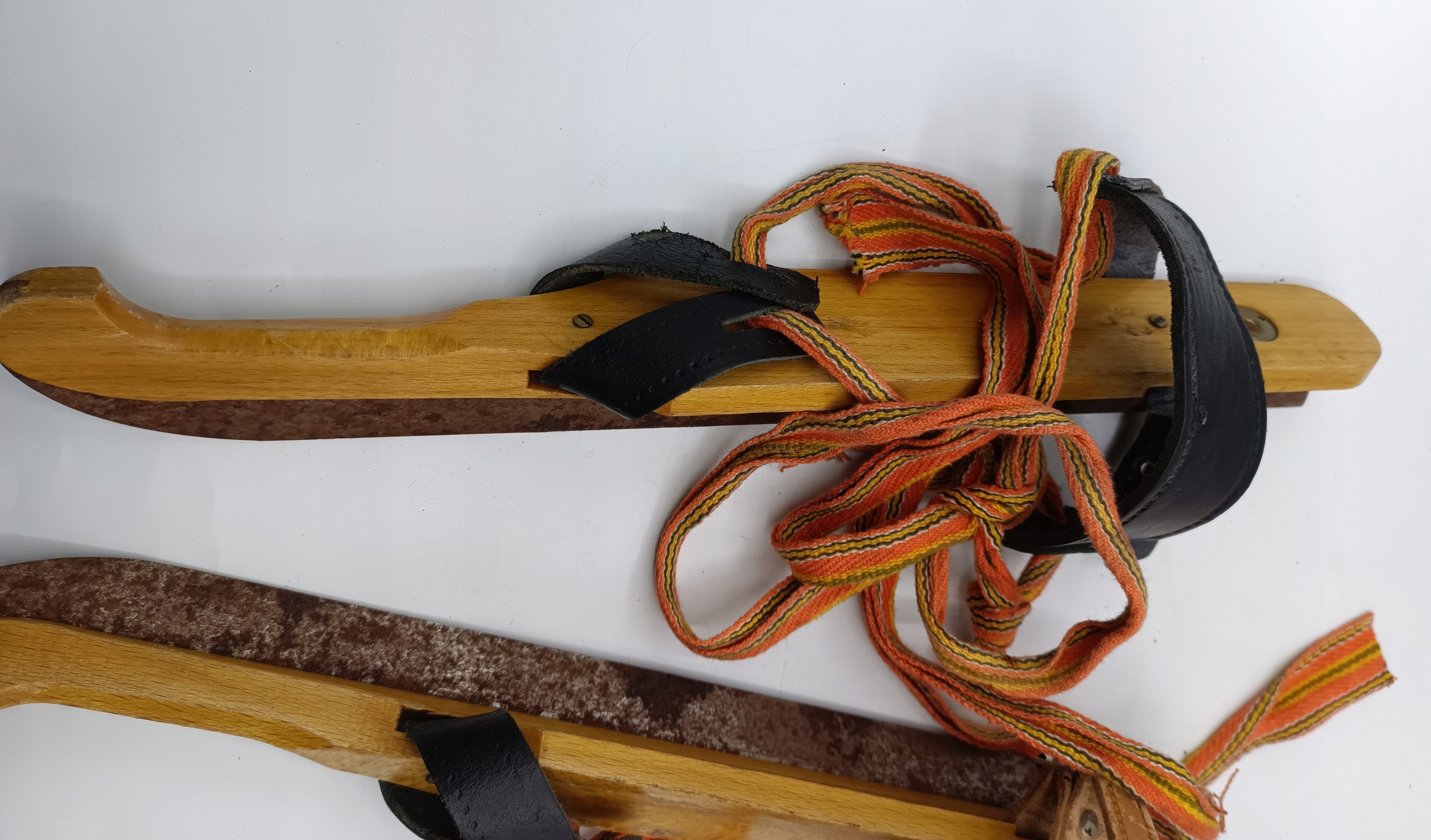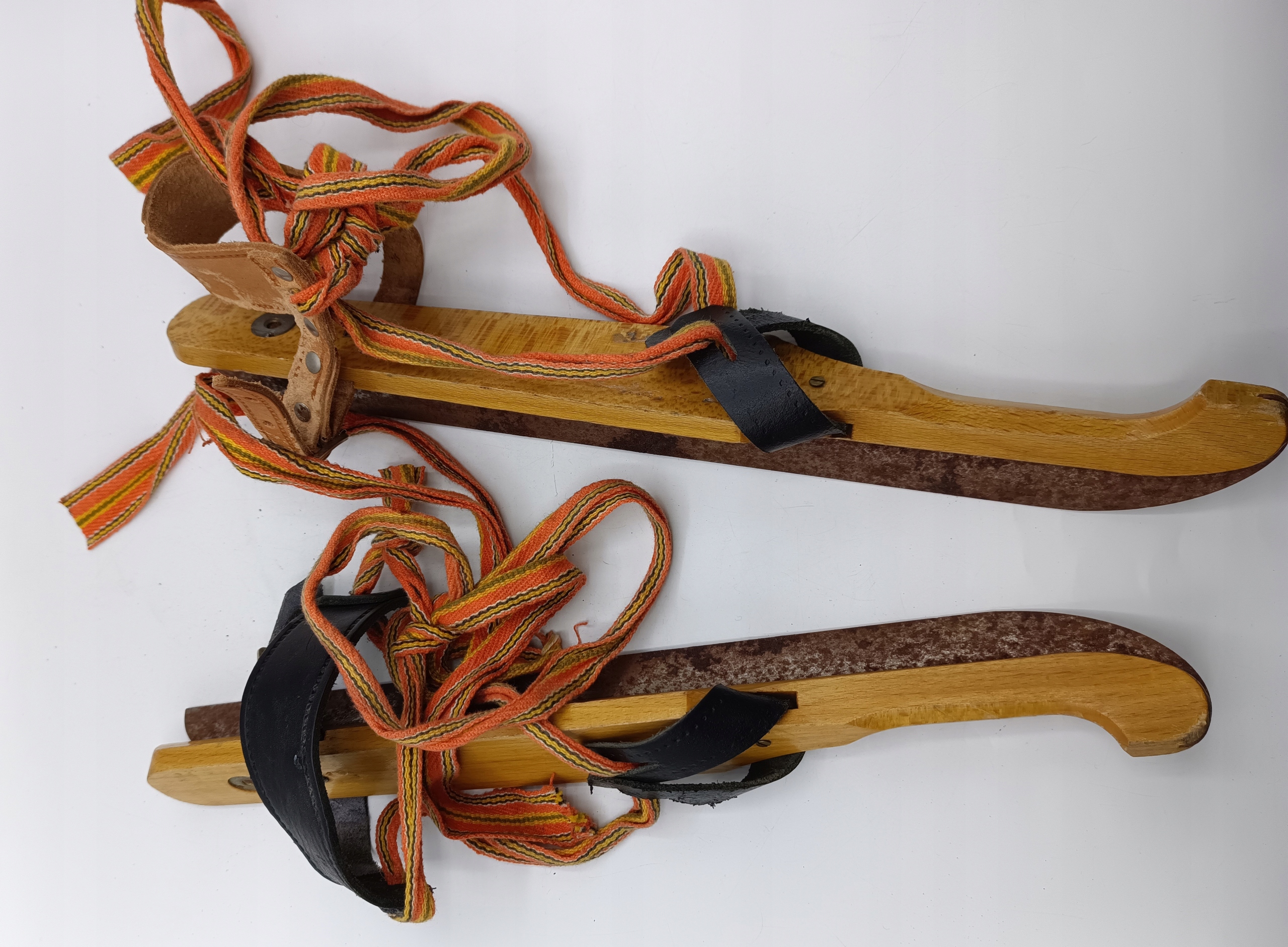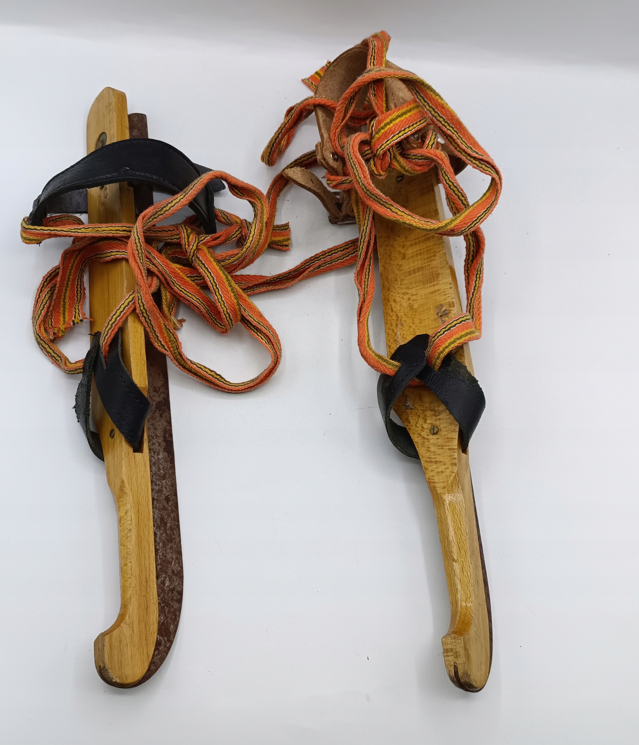 Деревянные коньки старого коллекционера, кожаные ремни и красочные шнурки - Древние - размер 26! (B)