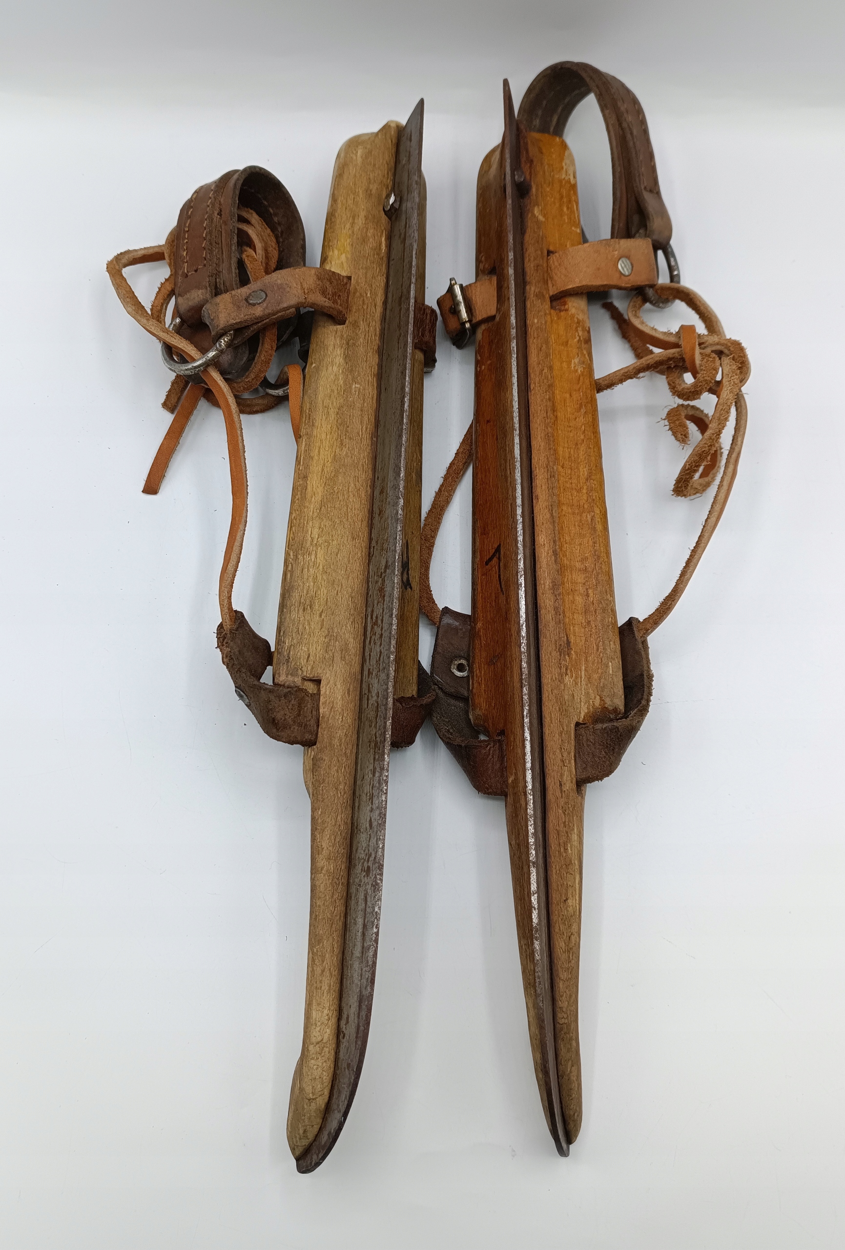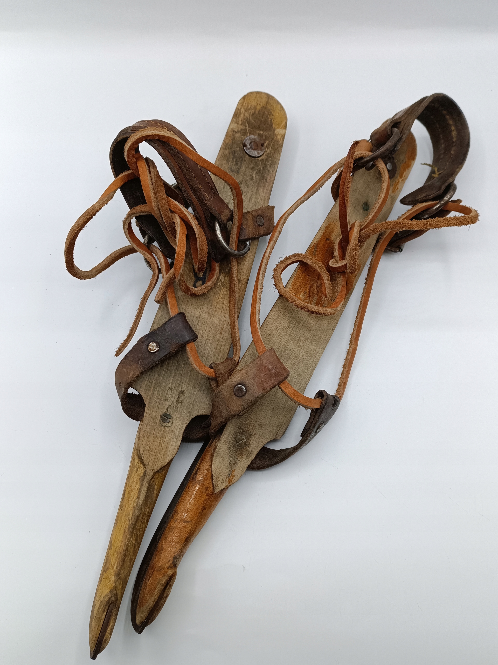 Старые коллекционные деревянные коньки, кожаные полосы и стринги - Древние - размер 30 - Подписано!
