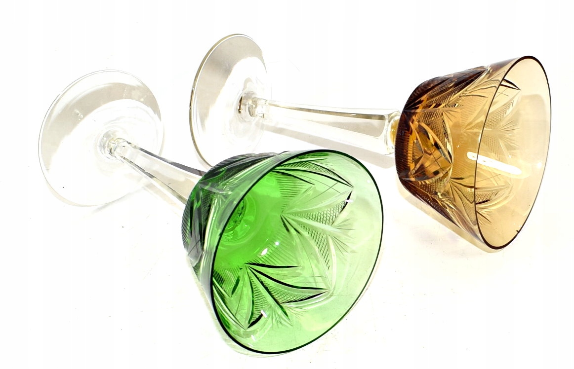 Старый и красивый очки для nalewka-liki-wino, изготовленного из красочного, слоистого кристаллического стекла-килограмма 2 шт. Оцените хорошее, в области края и в том же раноме микроскопиан (один больше на желтом), отсюда и низкая цена.