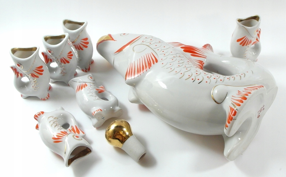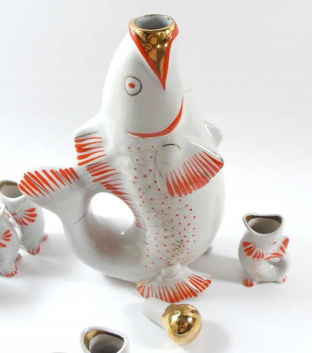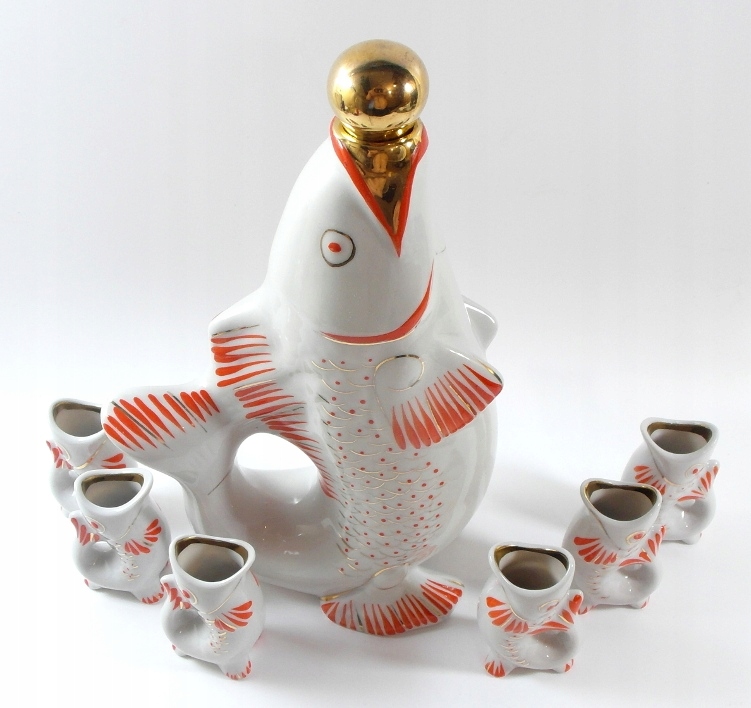 СТАРІ ПОРЦЕЛЯНОВІ СТАКАНИ З ГРАФИНОМ - НАБІР РИБИ 6 + 1