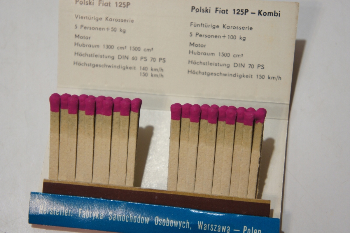 СТАРЫЕ СПИЧКИ В КАРТОНЕ ПОЛЬСКИЙ FIAT 125p 73 GDAŃSKIE ZPZ CULT PRL FSO