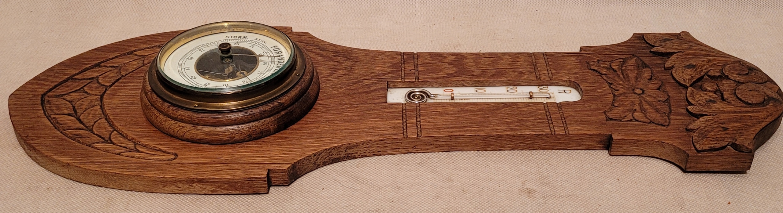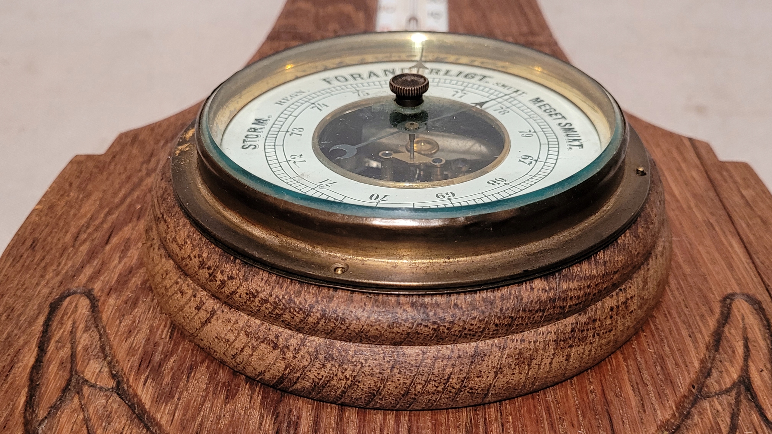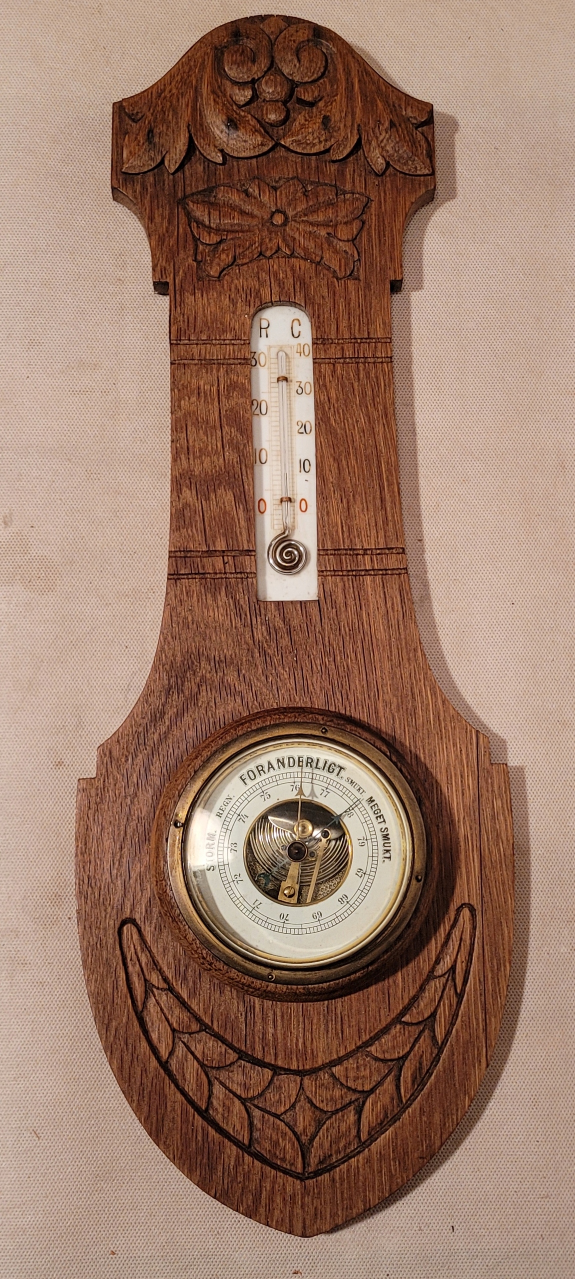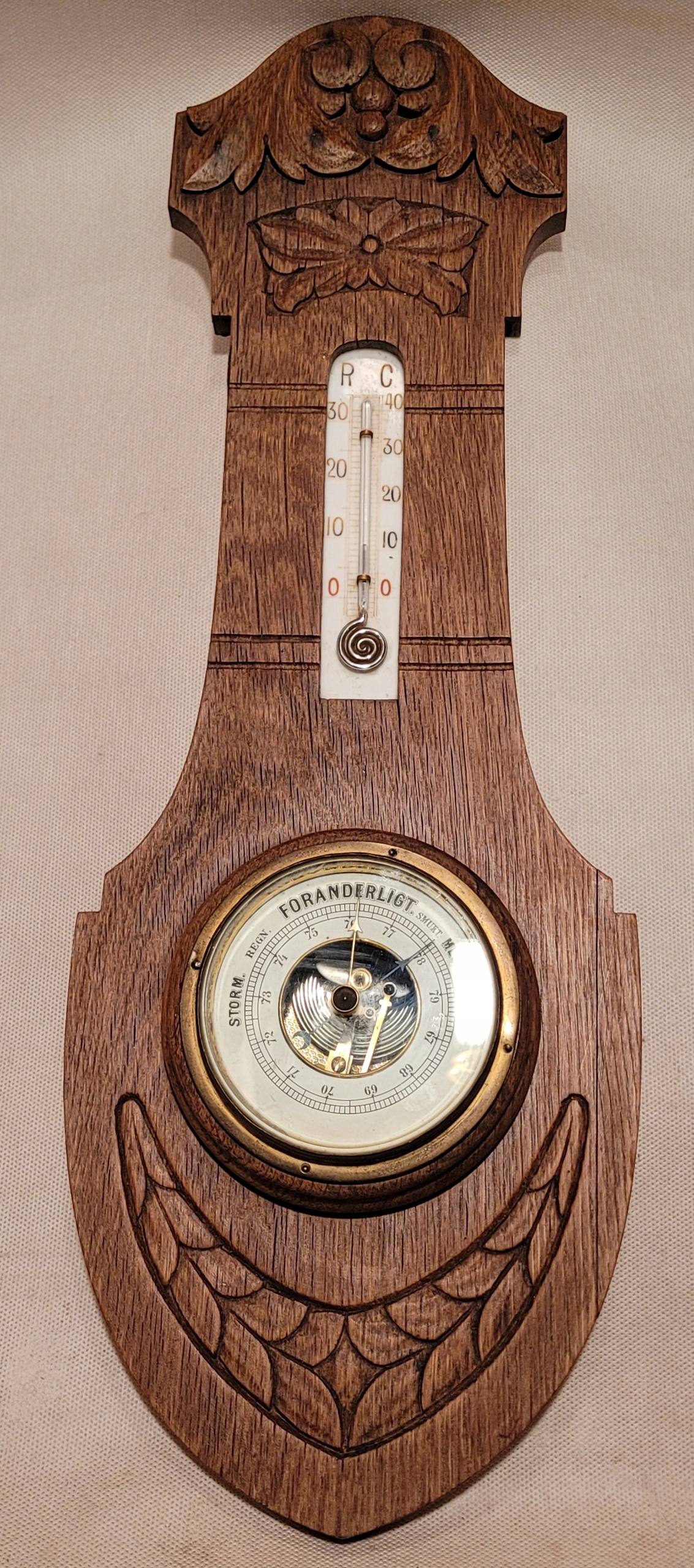 Старый барометр с деревянным рамным термометром.