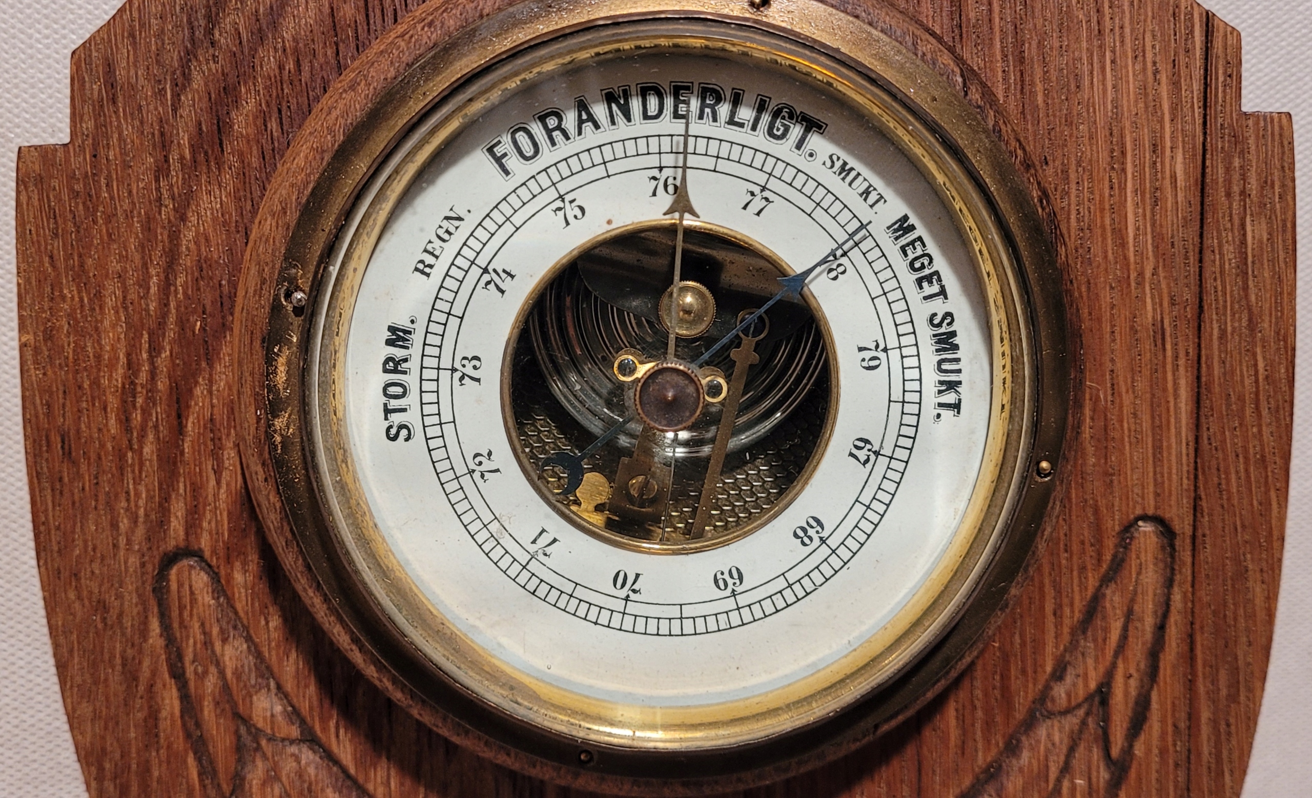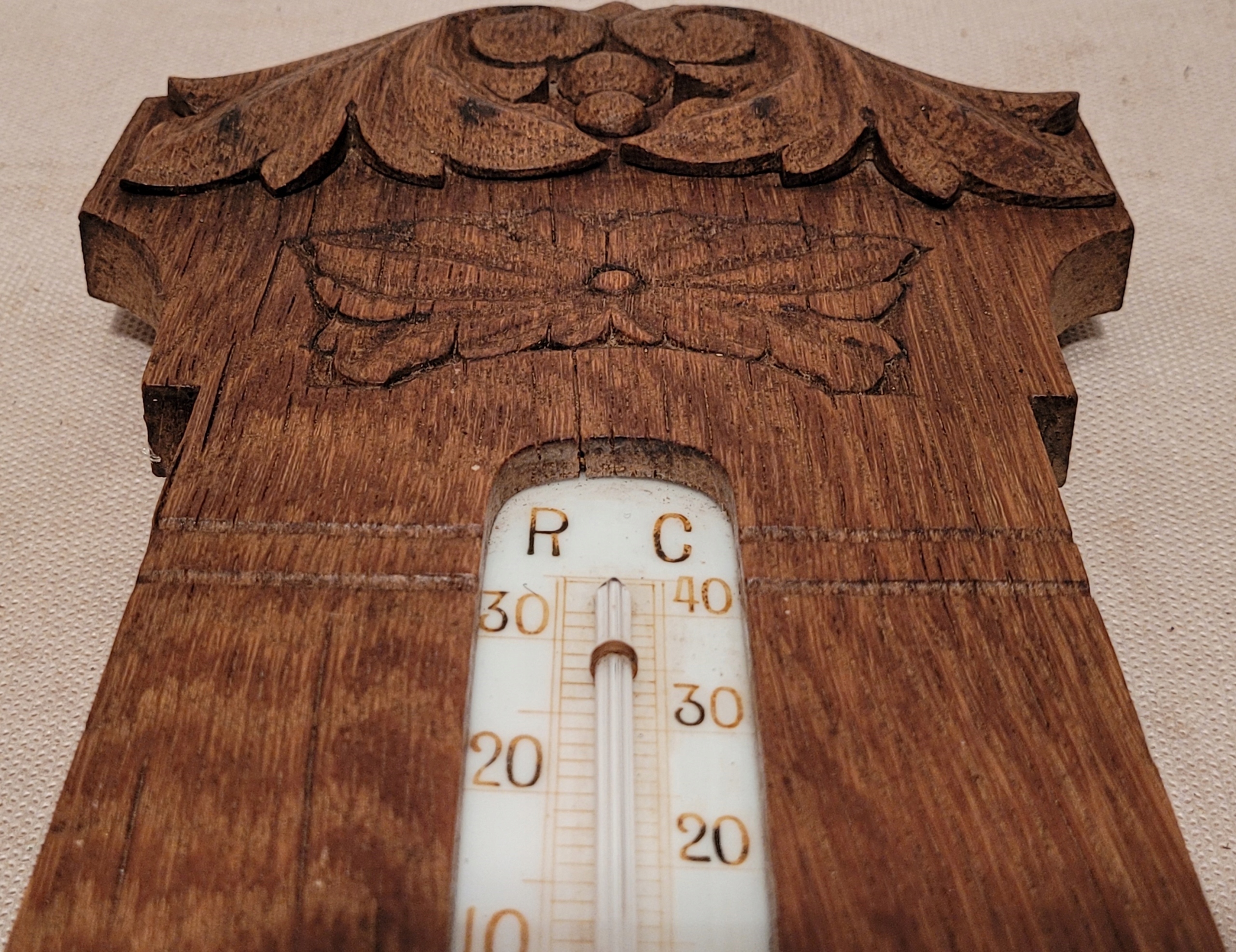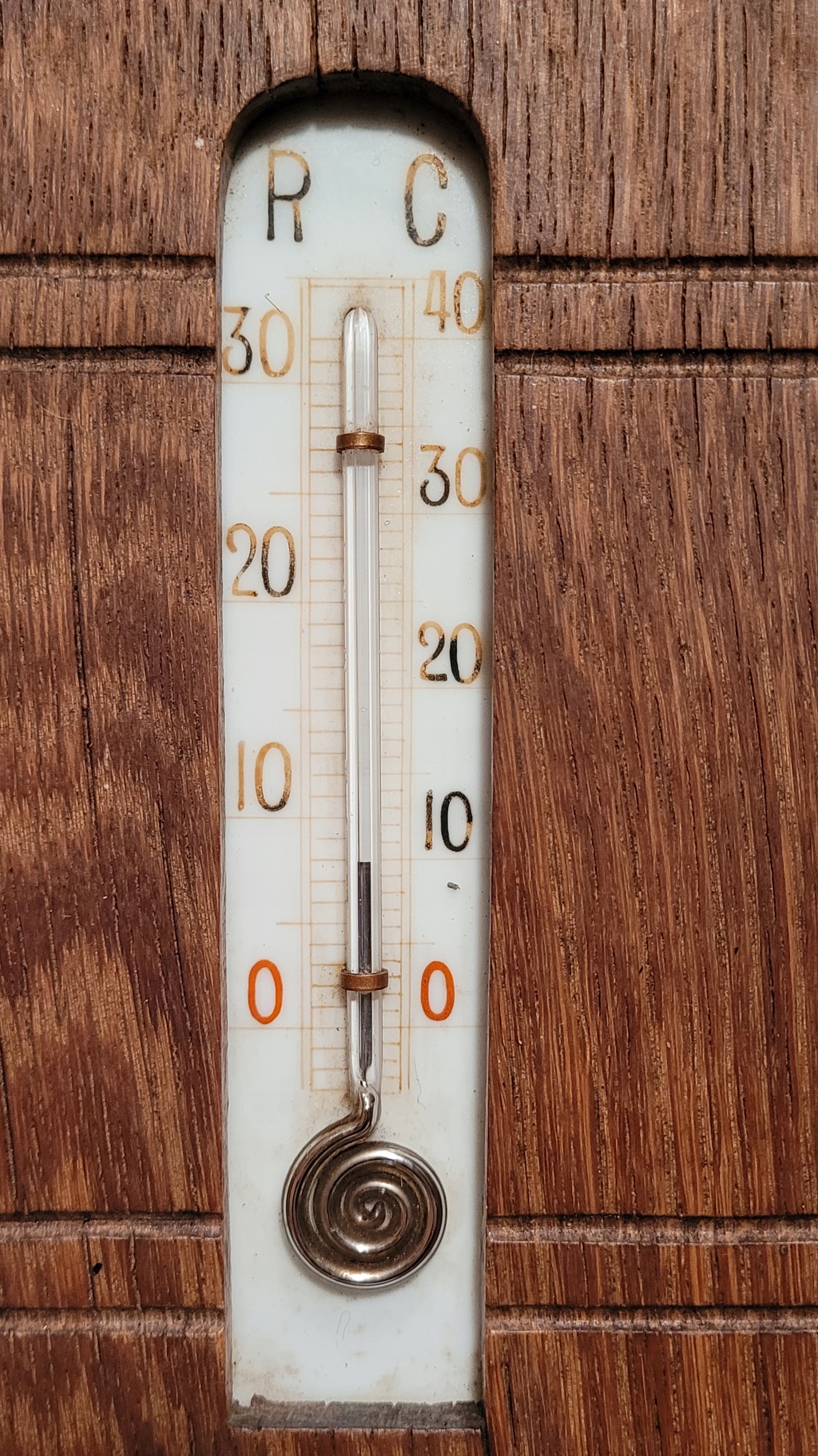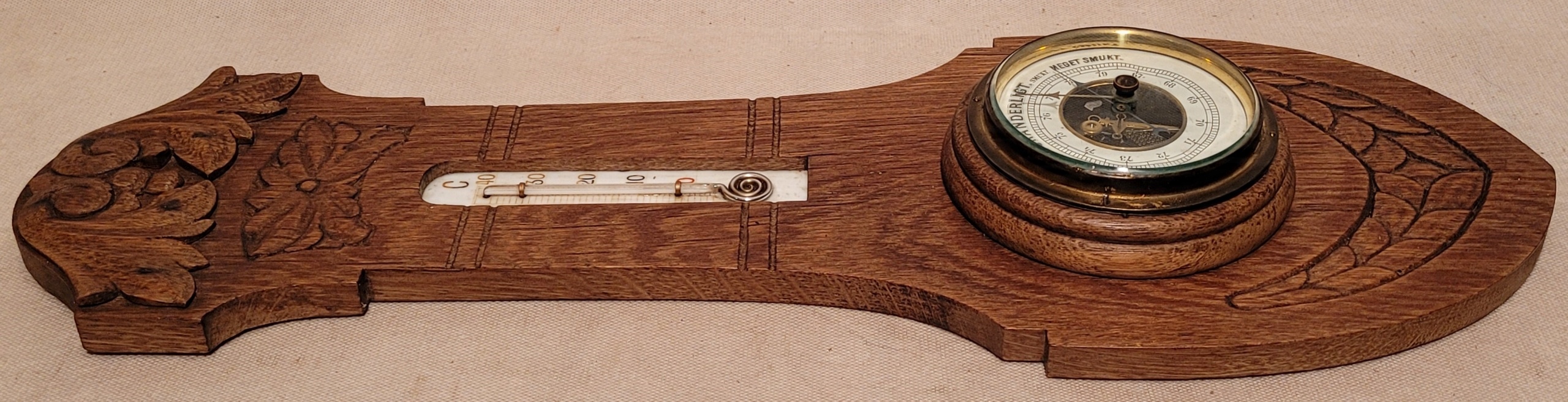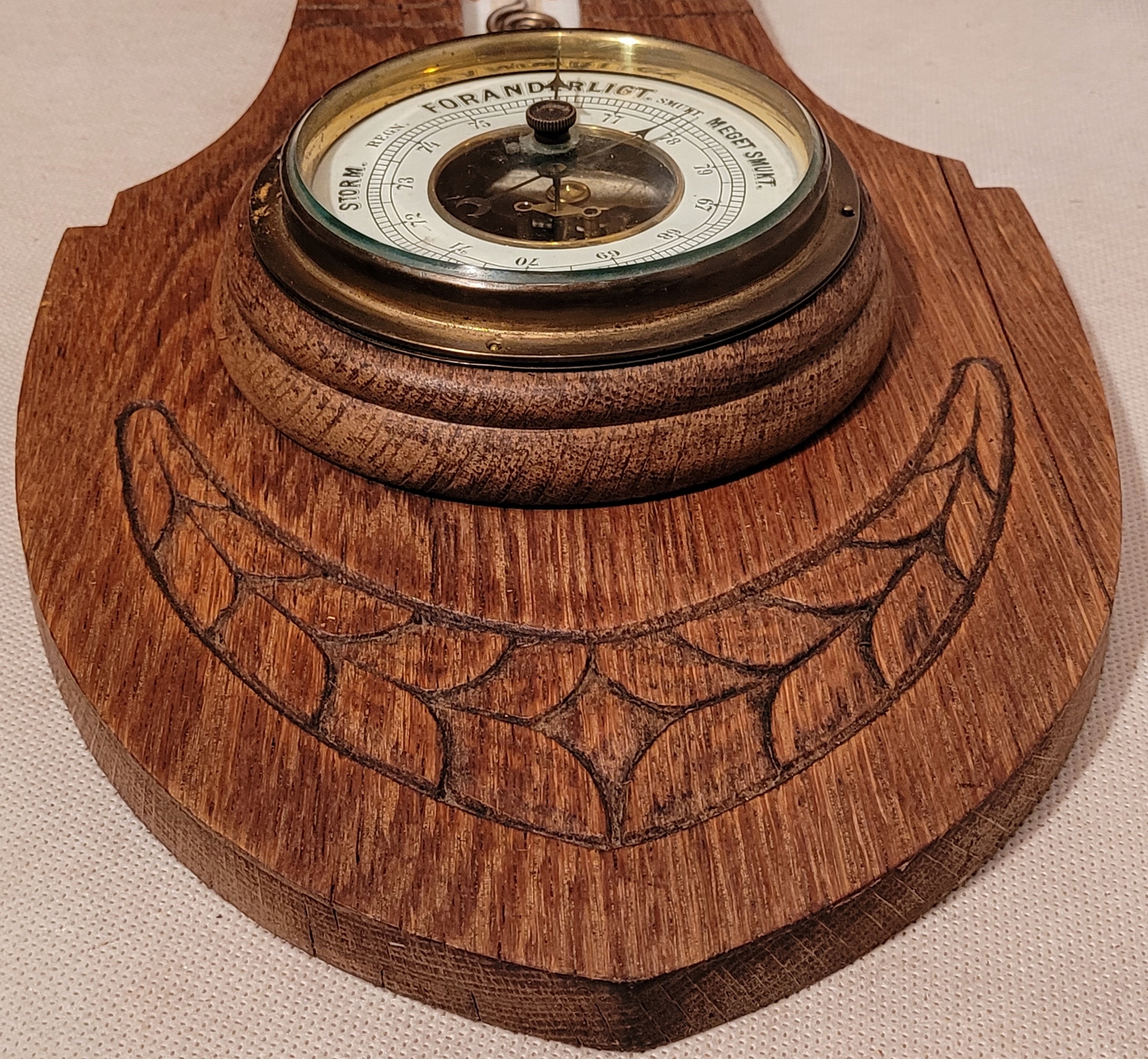 Старый барометр с деревянным рамным термометром.