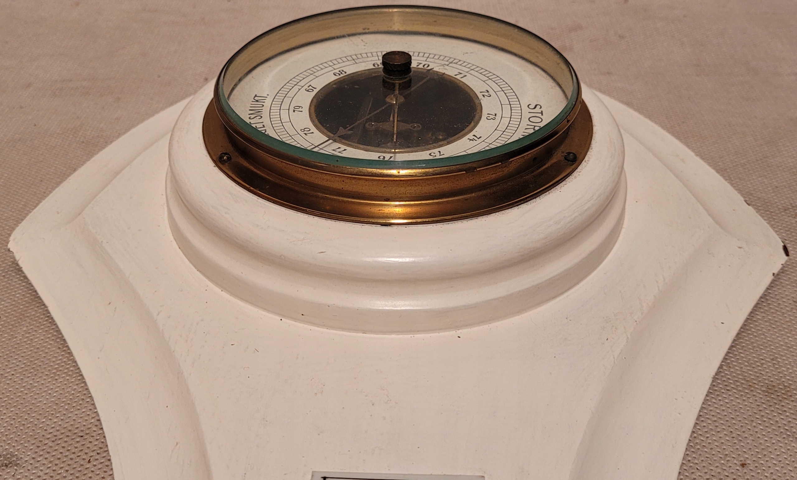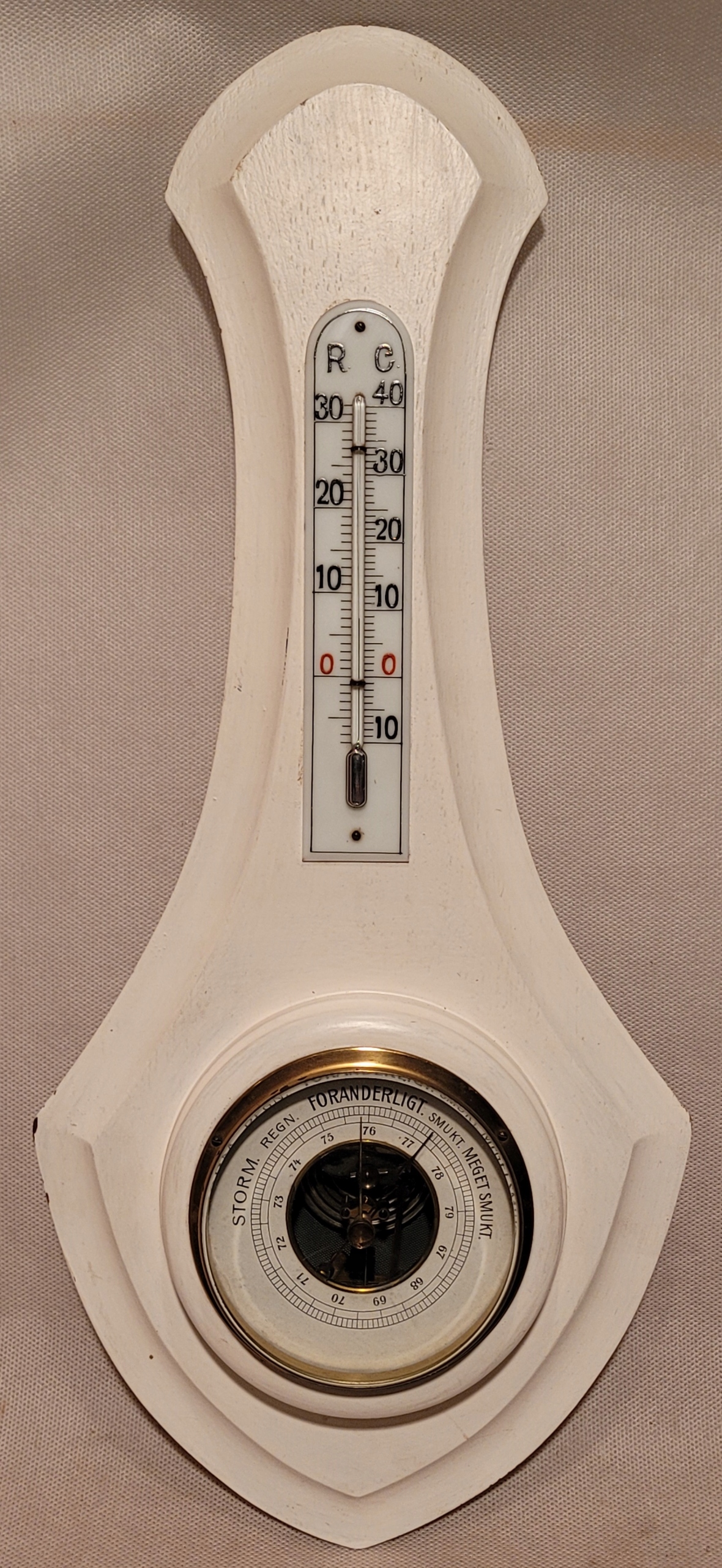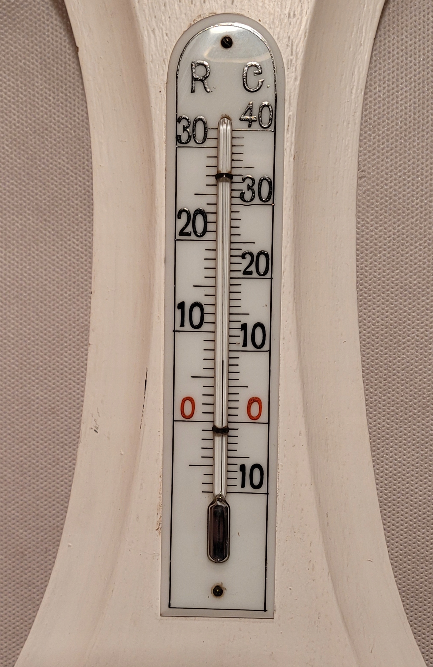 Объект продажи - старый барометр с термометром в деревянной обстановке.