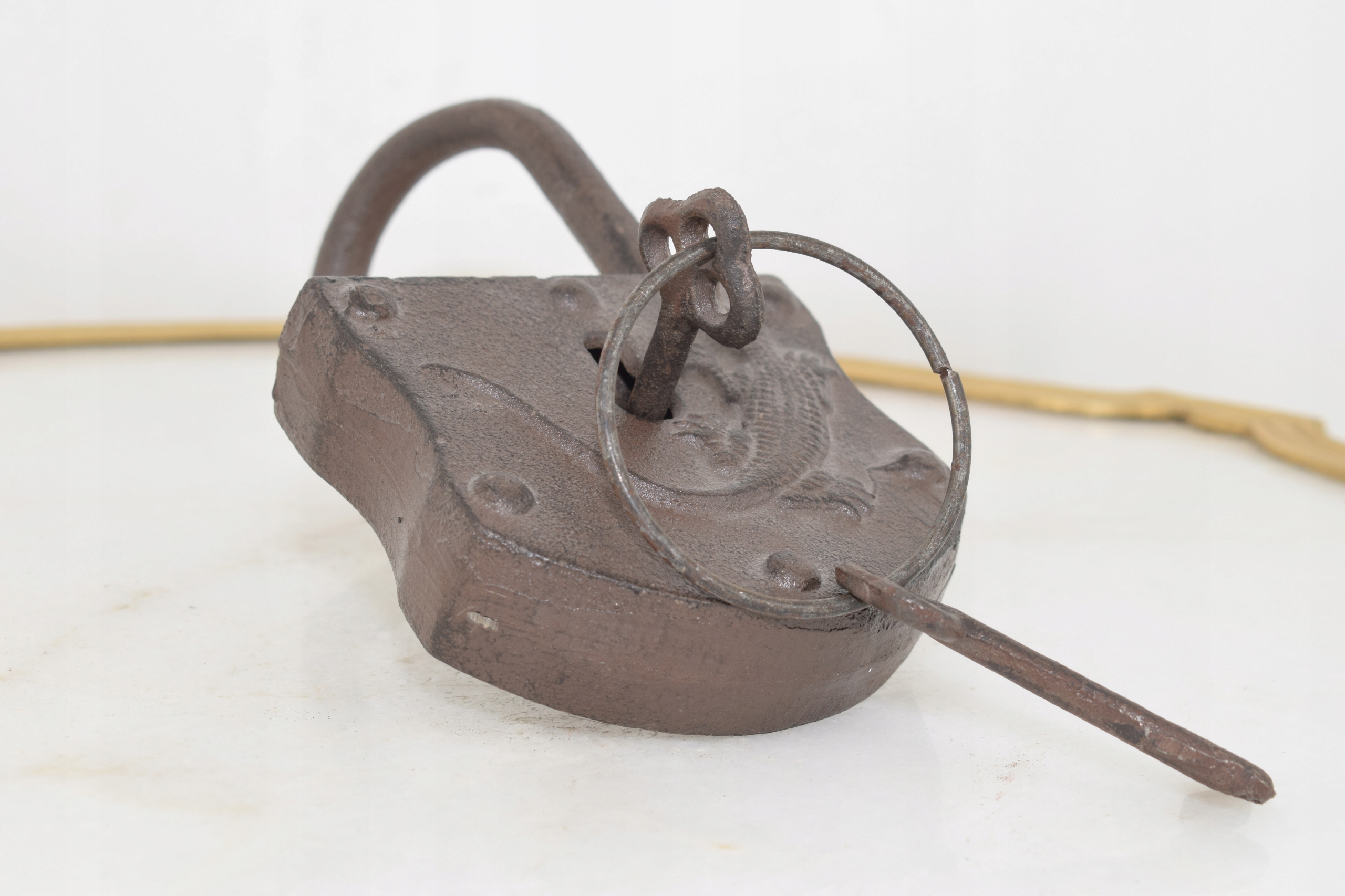Старый чугунный исторический замок - Ящерица - с ключами - винтажный чугун