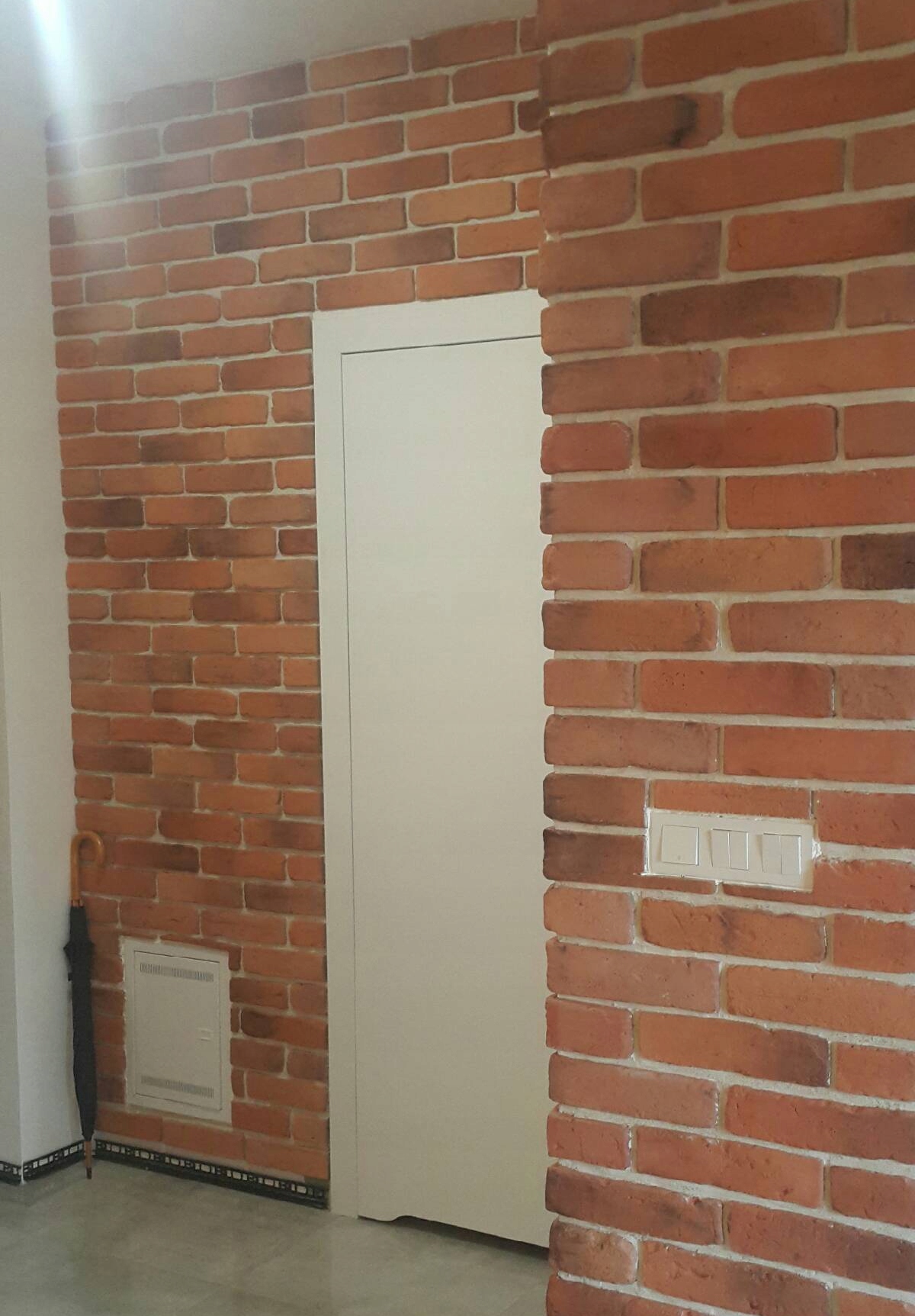 Лицо кирпича, выполненное вручную в виде плитки, сохраняет все визуальные качества старого кирпича. На нем имеются характерные трещины и бороздки. Эффект обжига позволяет добиться наилучшего результата ручной работы, максимально приближенного к старому кирпичу. Он придает уникальный характер каждой поверхности, на которой он расположен. Используется, в том числе, для отделки внутренних стен и наружных фасадов. Производится на основе смеси цемента, песка и пигментов, подходящей для каждой цветовой гаммы. В связи с ручной работой цвета могут незначительно отличаться от фотографий.