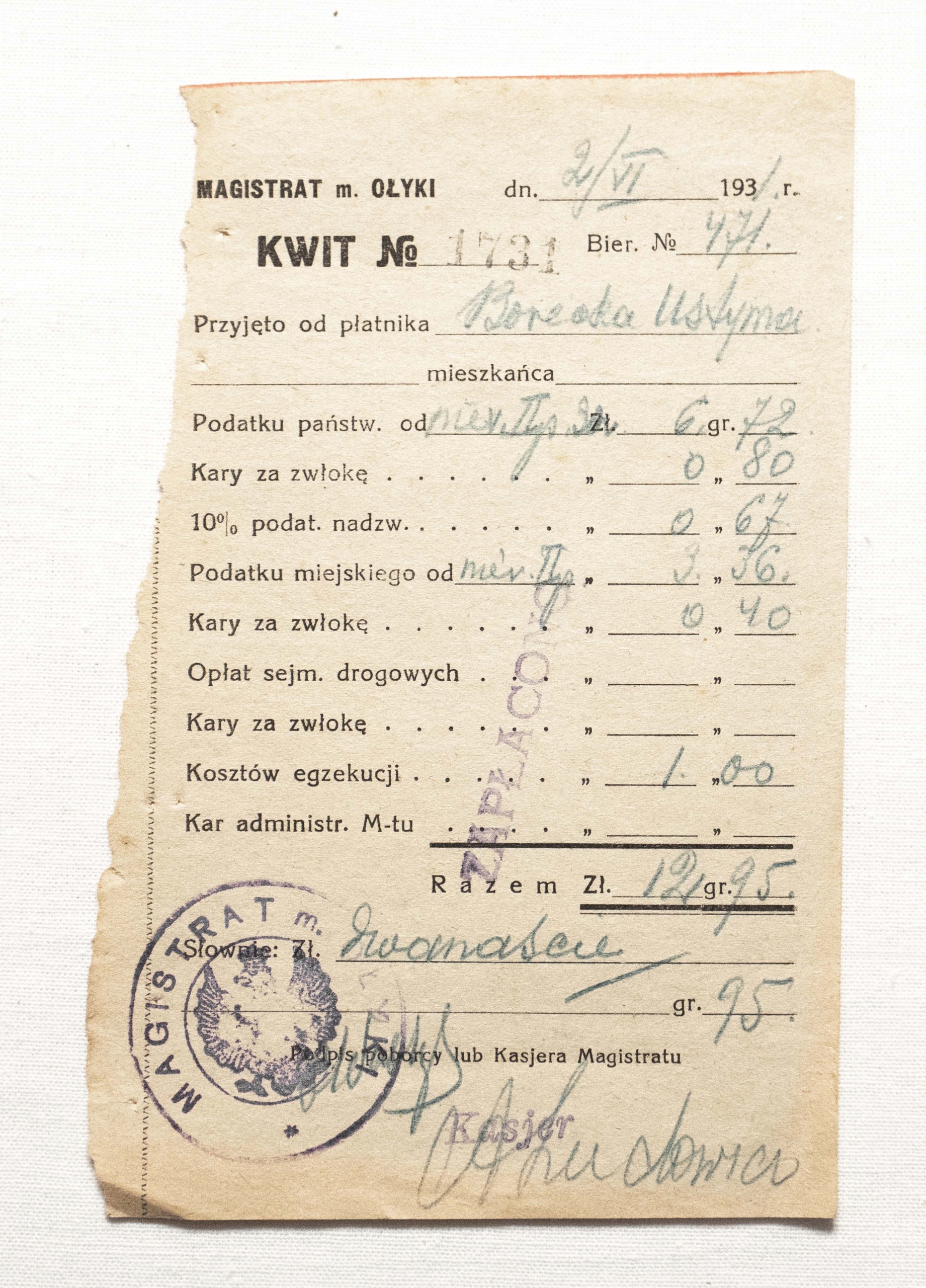 СТАРИЙ ДОКУМЕНТ, КВИТАНЦІЯ З ПОДАТКУ - ОЛІЯ 1930