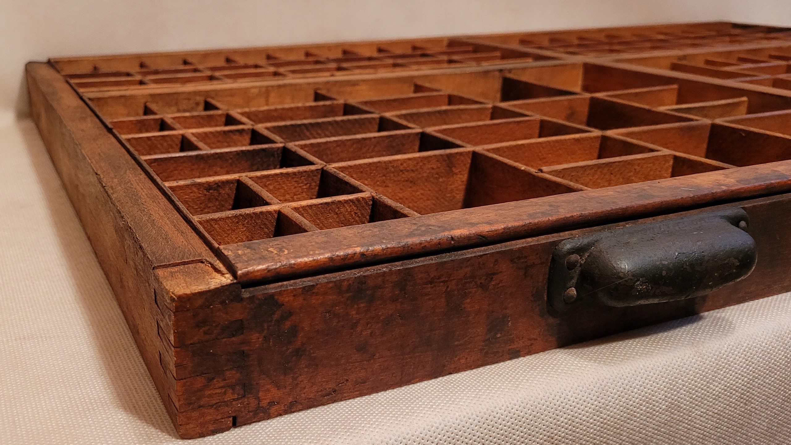 Тема продажи - старая печатная сундук (ящик для печати, ноль).