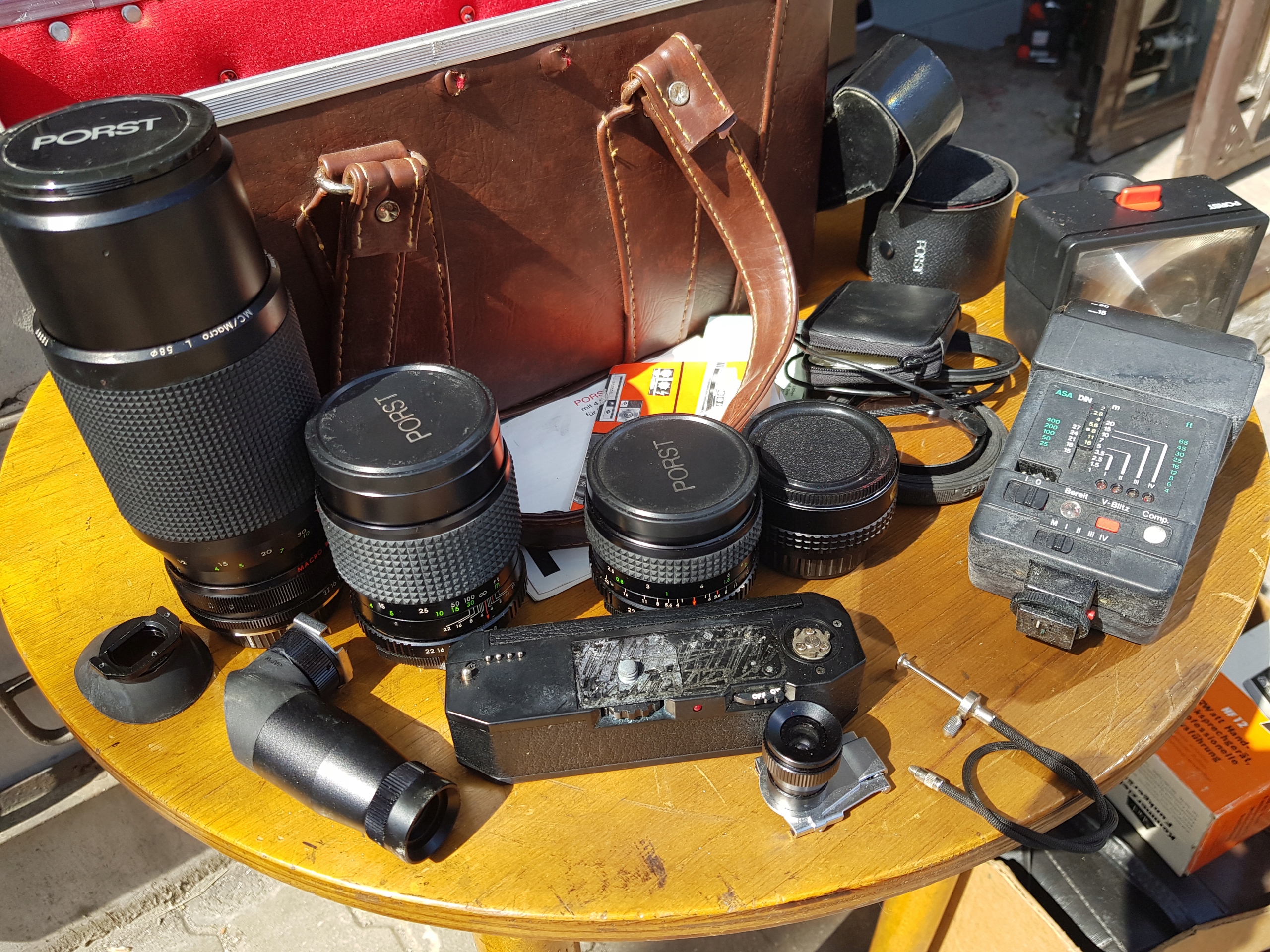 Старый фотоаппарат BIG SET Porst компактные рефлекторные линзы AM для чемодана, лампы