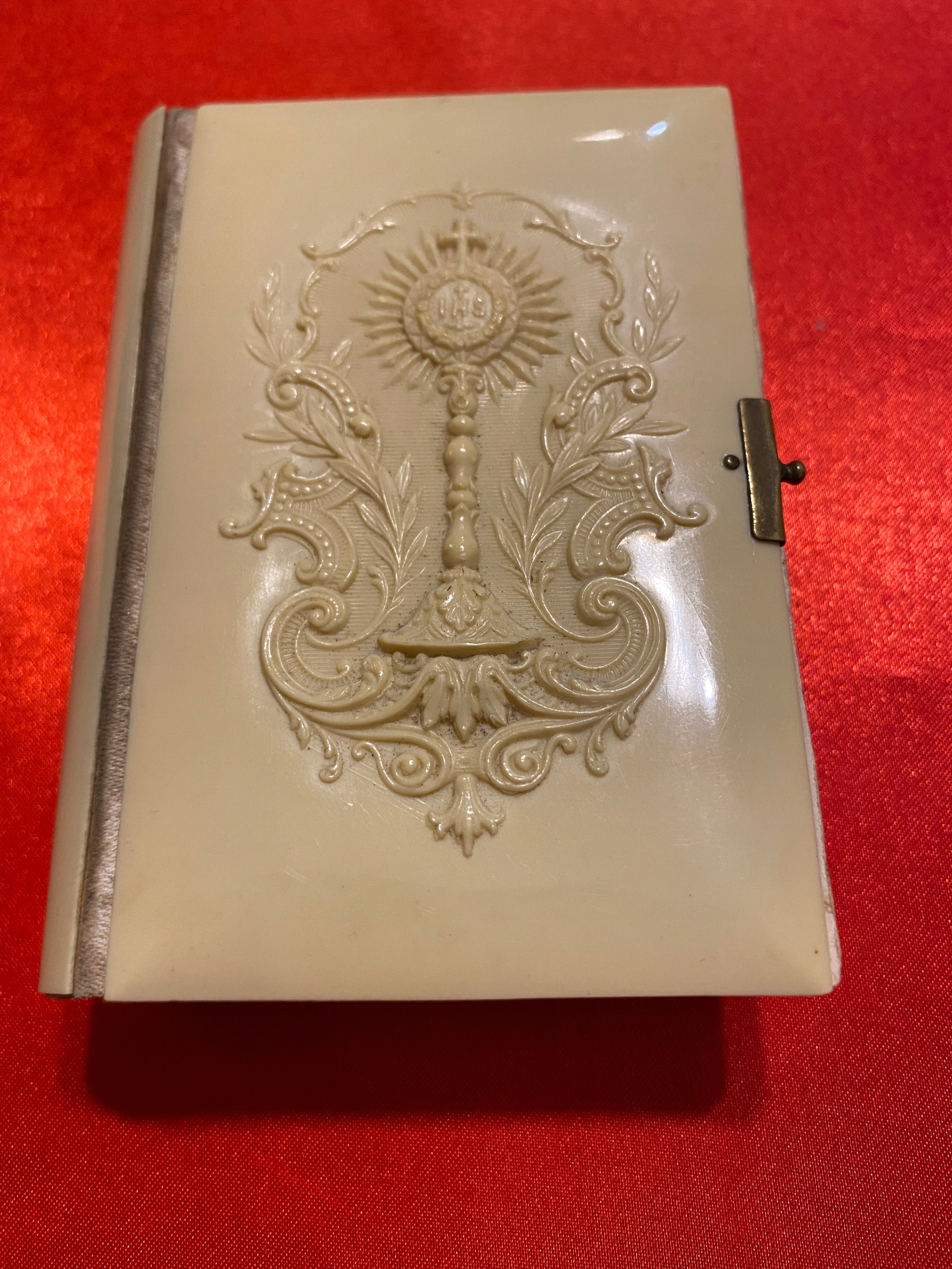 Предметом аукциона является красивый старинный молитвенник на французском языке (Paroissien Romain), изготовленный в Лиможе в 1988 году, в книге сохранились позолоченные страницы в первоначальном состоянии, на лицевой стороне книги изображена чаша воинств в резной, изысканный переплет