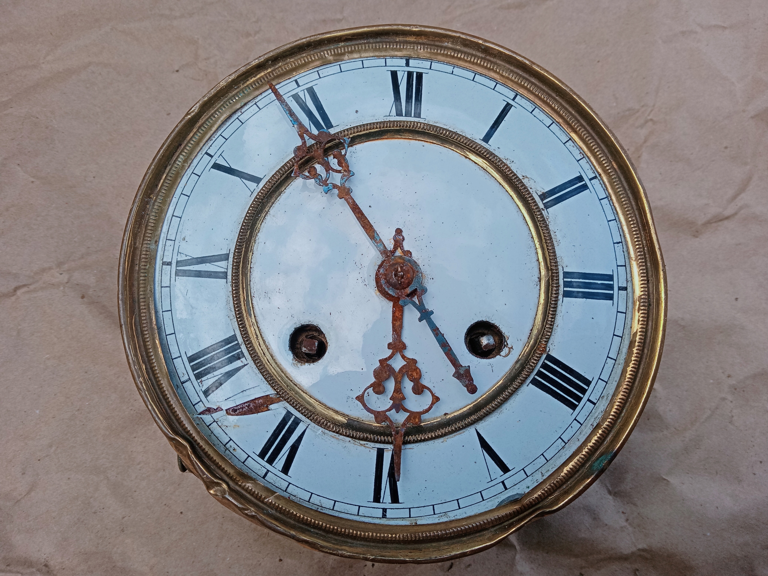 Диаметр диска 20,5 см, диск поврежден, салазки погнуты, пружины накручены на макс. но часы не тикают и не звенят, продаю битыми, состояние как на фото - требует ремонта