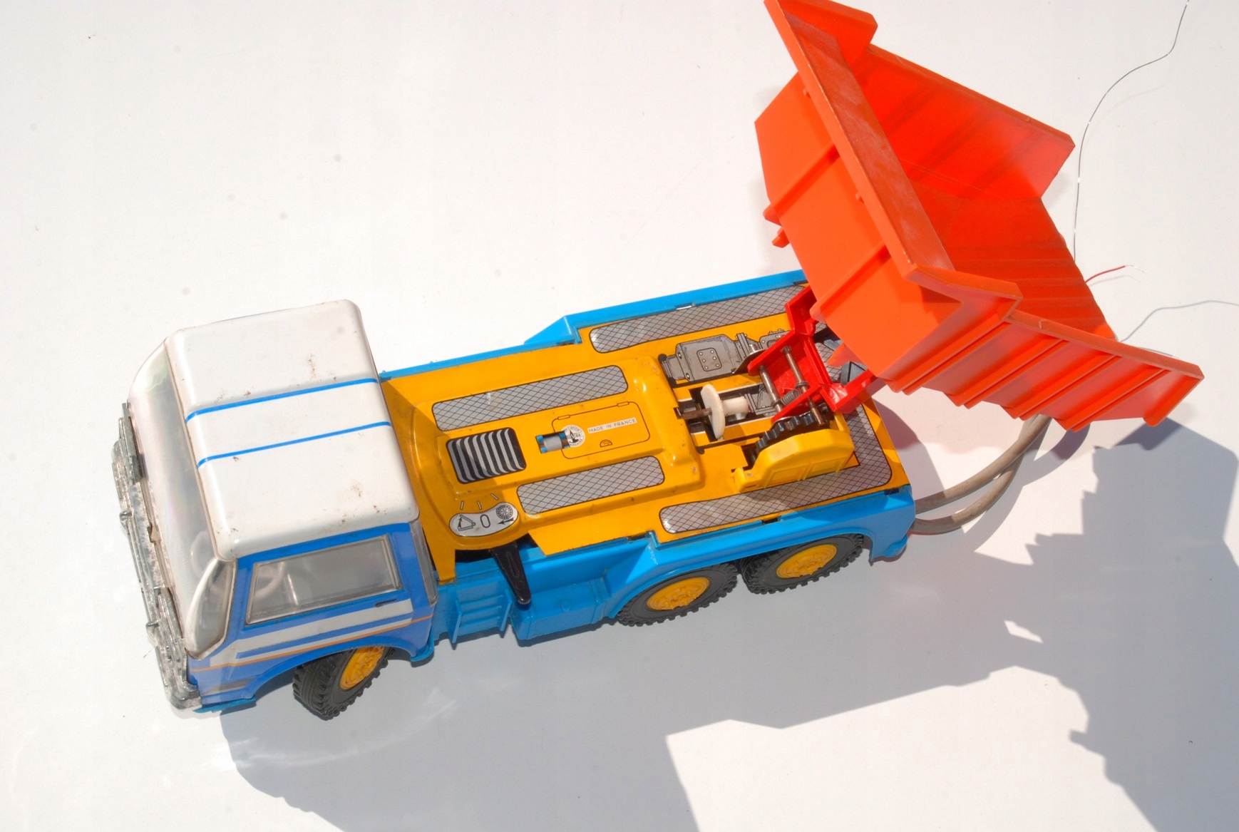 Старая игрушечная машинка, строительный грузовик, самосвал Renault Joustra, производство Франция, уникальная со времен Польской Народной Республики, управляемая с помощью тросового пульта дистанционного управления, антиквариат, предмет коллекционирования