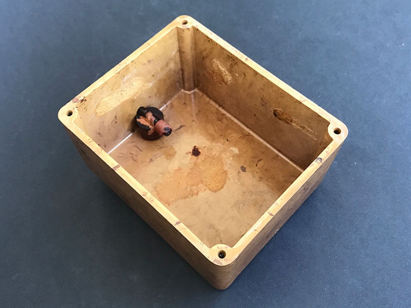 пустая банка от аквариумного аэратора< /h2>толстый бакелит с отверстиями для шнура питания и трубки аэратора