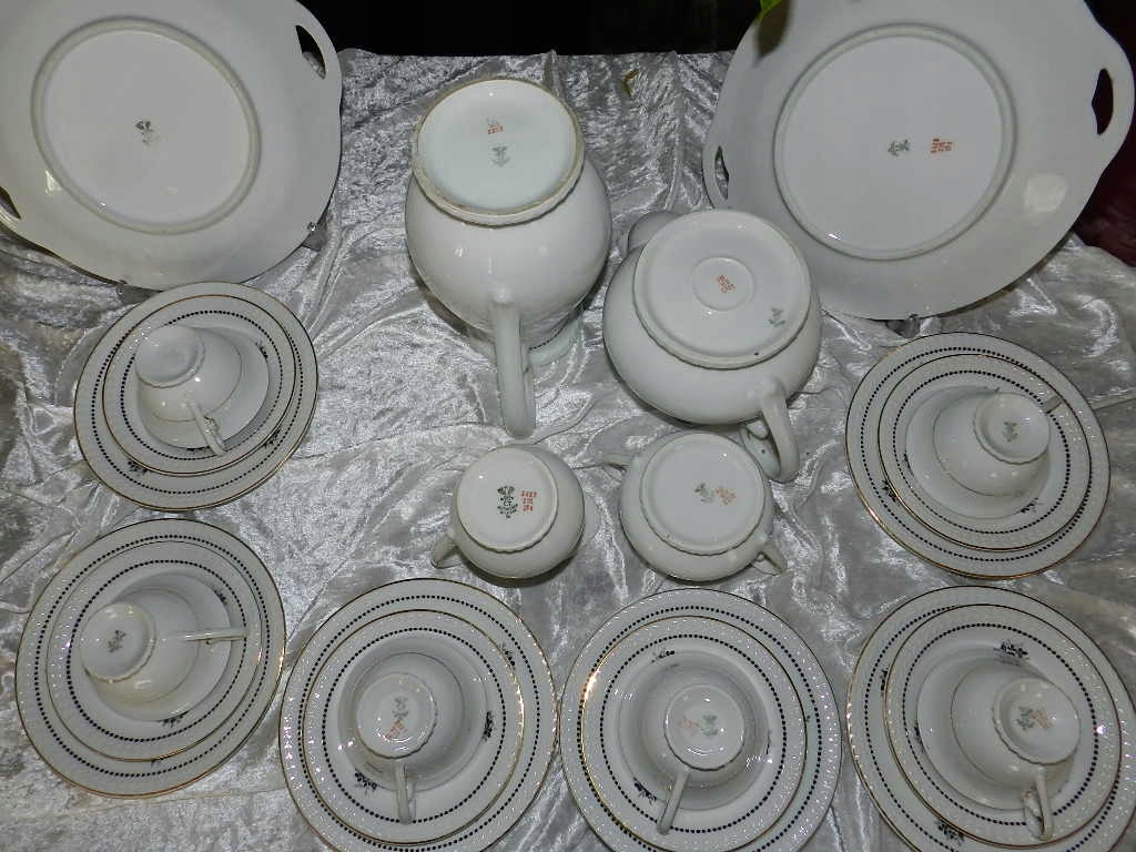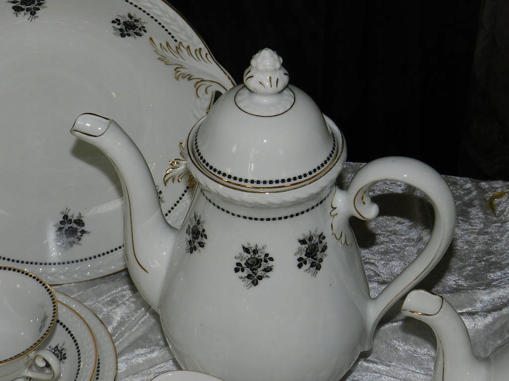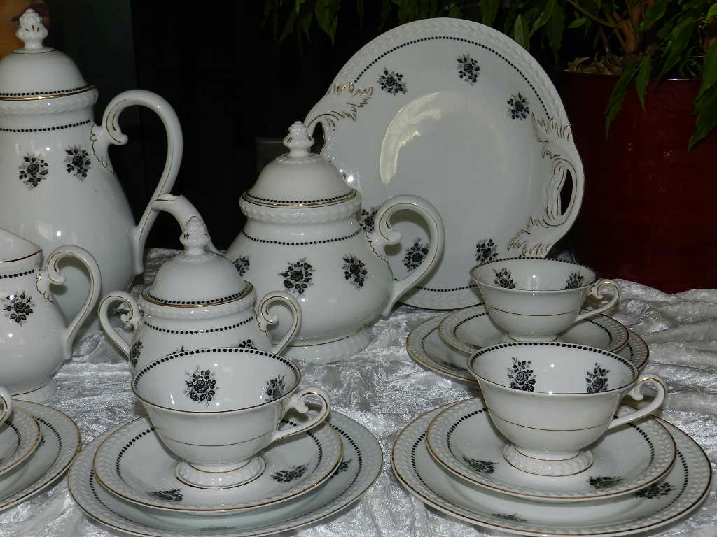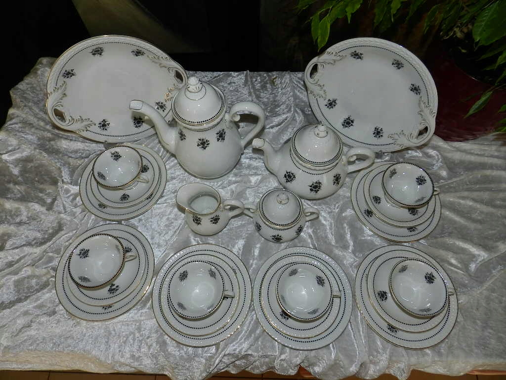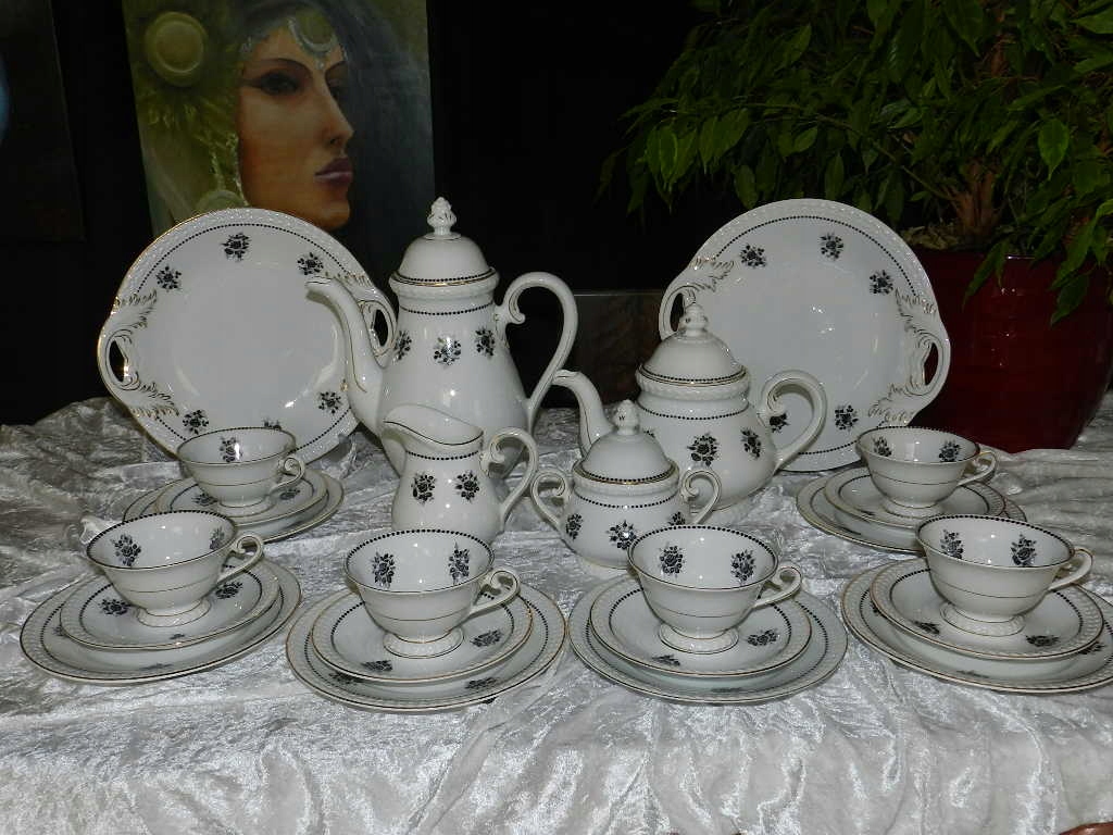 Мы рады представить Вам красивый старинный кофейно-чайный сервиз на 6 персон и две подставки для тортов от Carl Tielsch Altwasser Wałbrzych Stary Zdrój. фабрика