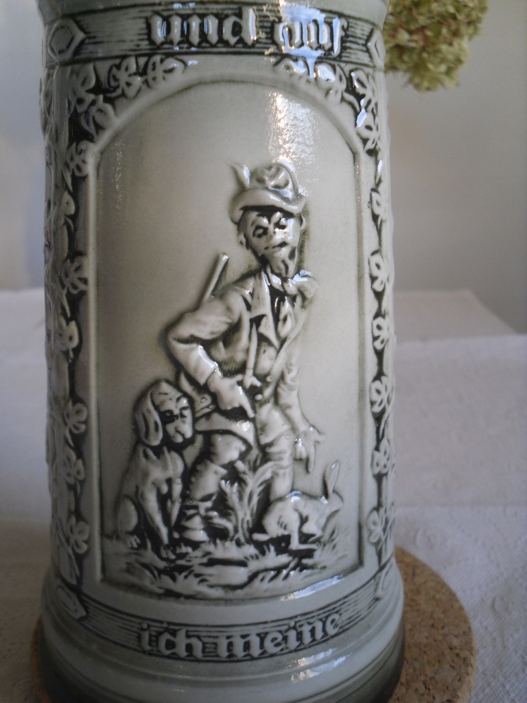 Старая керамическая кружка с изображением охоты и сценой из комиксов ПОДПИСЬ 5