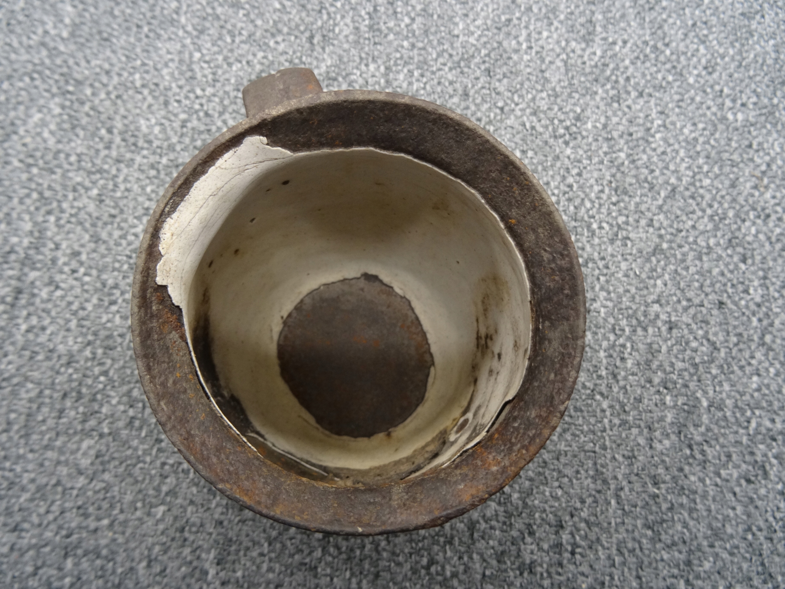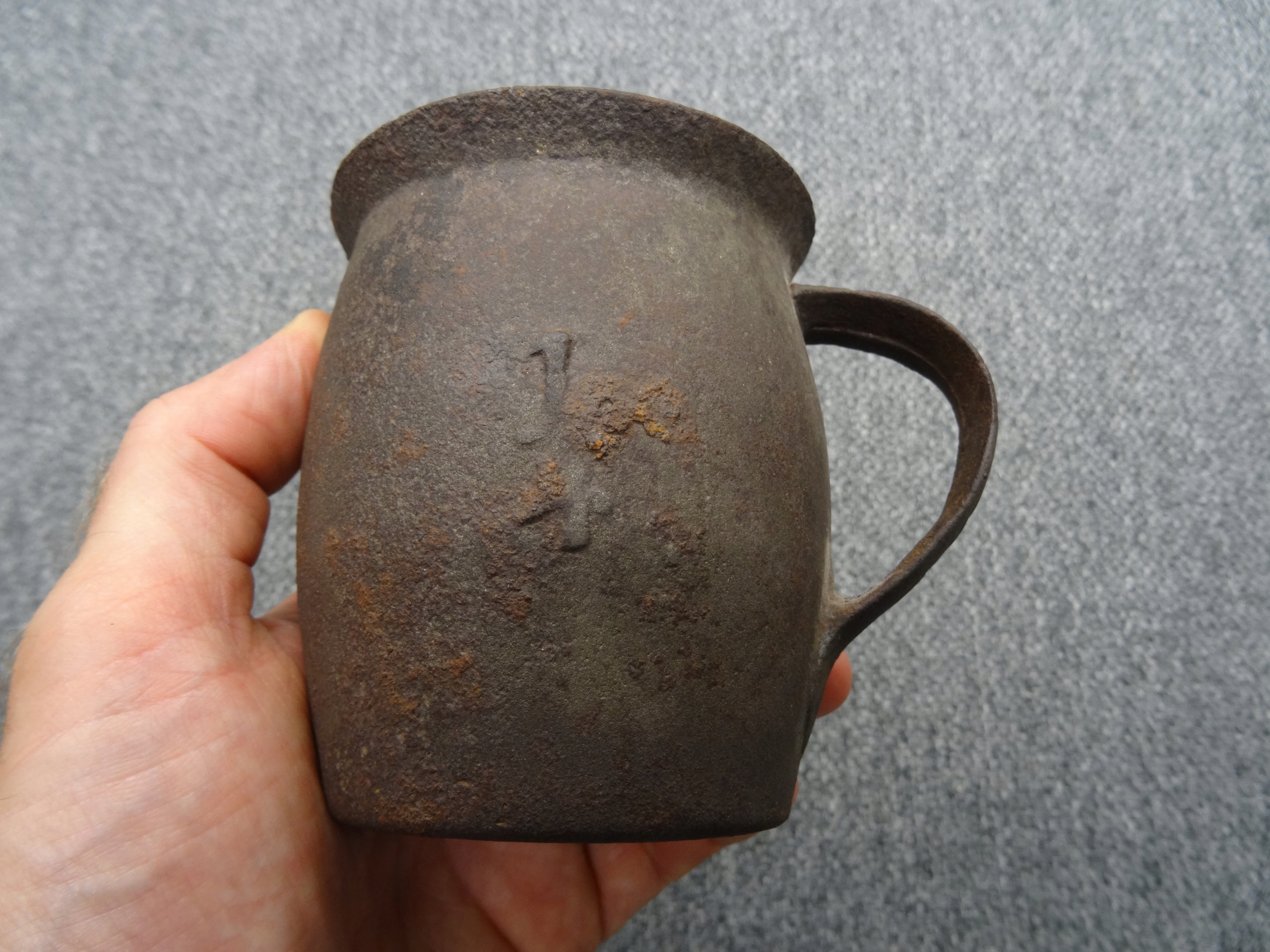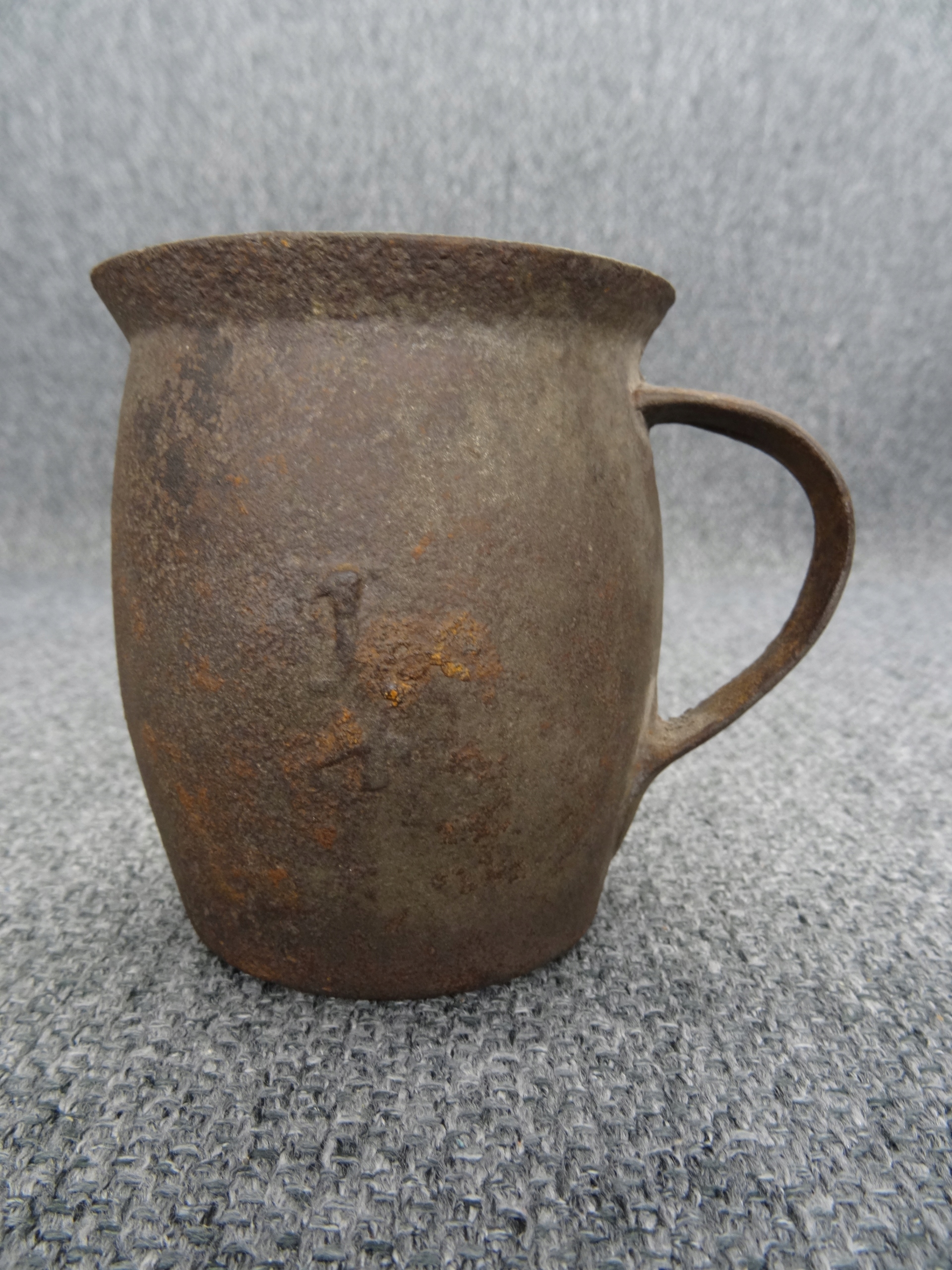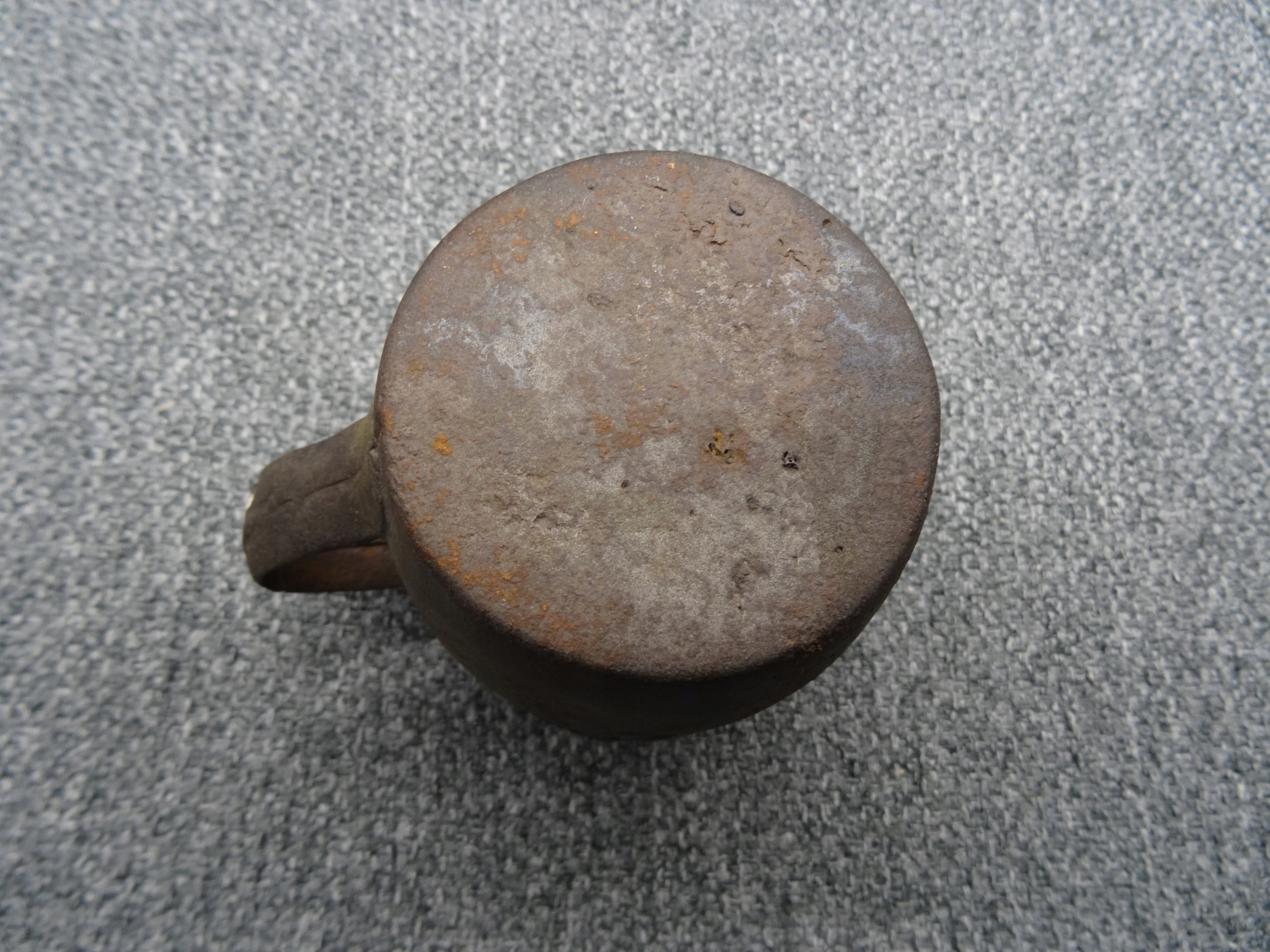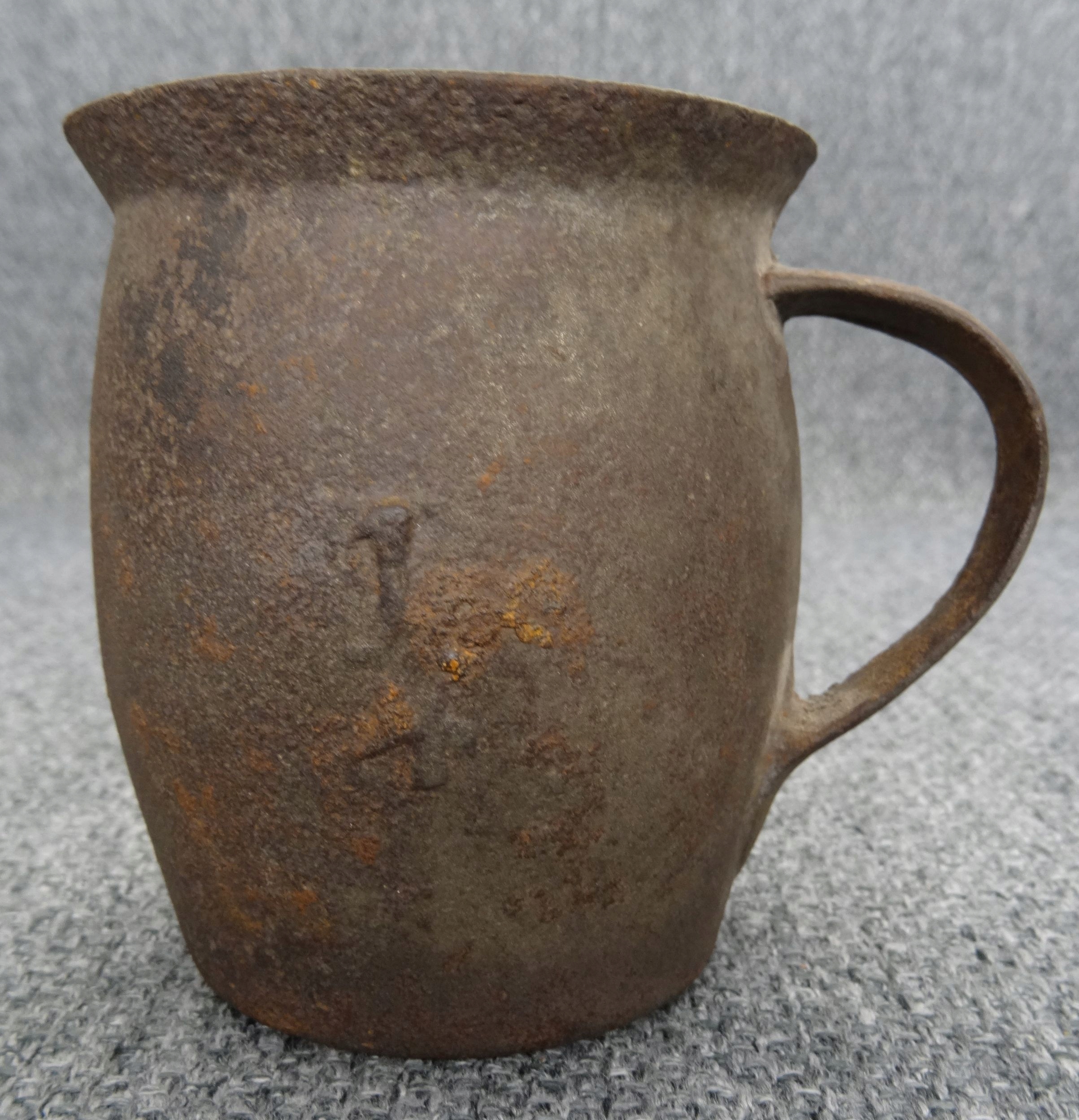 Небольшой уникальный чугунный горшок. На животе единица измерения 1/4.